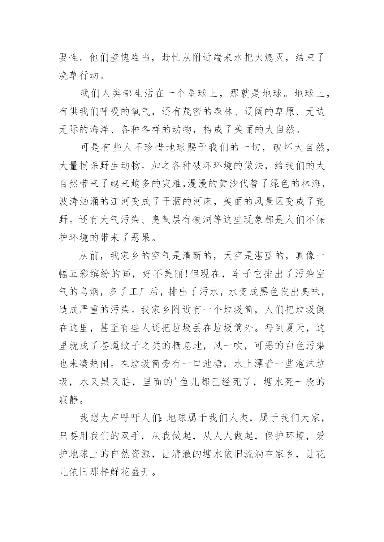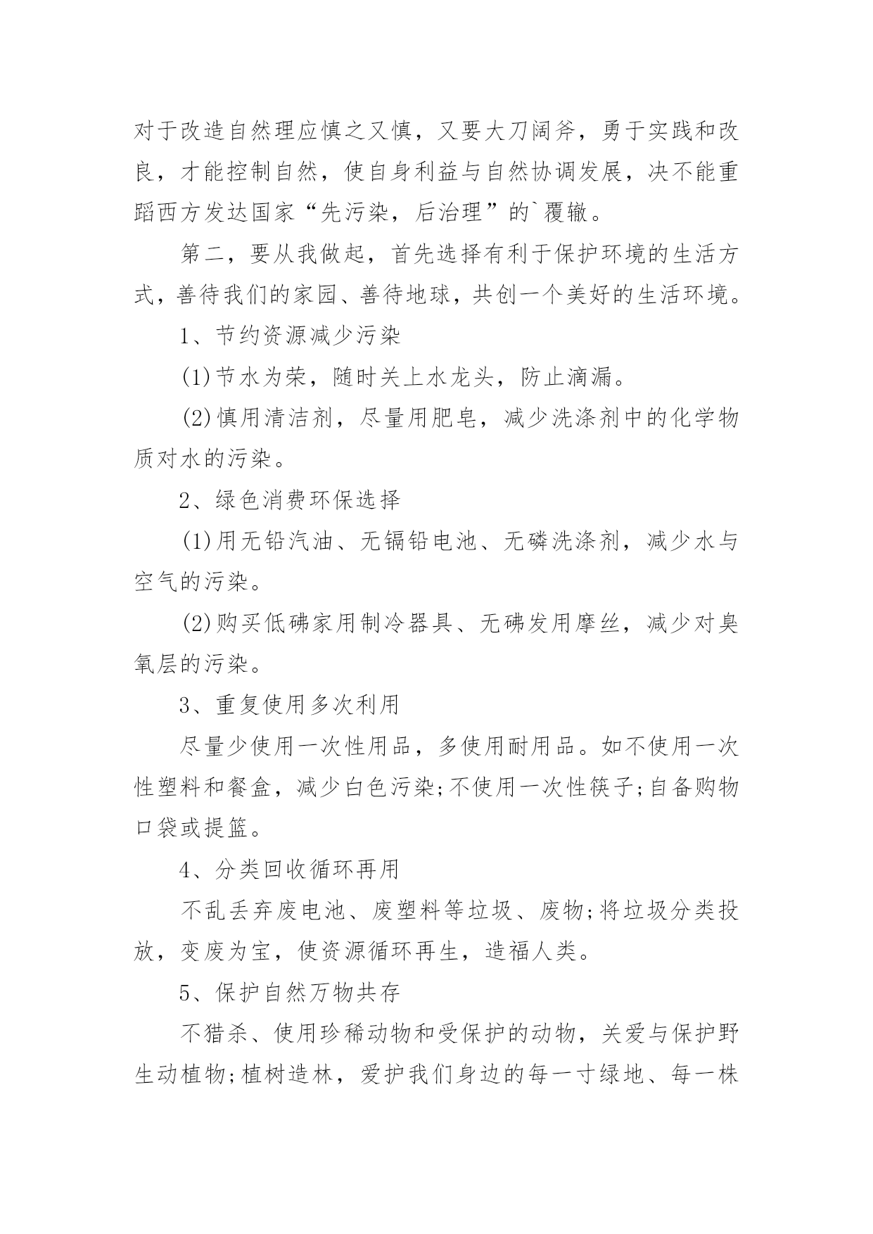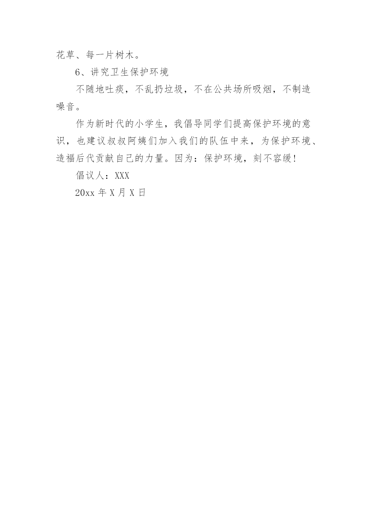 环保倡议书关于环保倡议书通用现如今,倡议书应用范围愈来愈广泛,倡议书本身不具有很强的约束力,有关人员可以表示响应,也可以不表示响应。那么一般倡议书是怎么写的呢?下面是小编帮大家整理的关于环保倡议书通用,供大家参考借鉴,希望可以帮助到有需要的朋友。关于环保倡议书通用1亲爱的同学们:环境保护,这个话题,可以说是家喻户晓,人人皆知。但在现实生活中,一些人还是不太重视,认为微不足道,在我看来,环保要从件件小事做起。我就经历过这样两件小事:有一天,我去超市买东西,快到超市门口时,看见有几个散发宣传单的,见人就给,见车就放,可是有些人却不要,随手就扔地上,我过去将纸扔进垃圾箱里。又看见两个人用胶水将宣传单贴在墙上,远远望去,活像一块块“牛皮癣”趁他们不注意,我又拿出我的绝活“撕纸功”,哈哈,“牛皮癣”被我除掉了一大片。还有一次,我在楼底玩,发现远处草地上冒出了缕缕白烟,走近一看,原来,是我们班一群小孩在那里点火烧草,草黑了一大片,我以大哥哥的身份连忙制止,并讲了火灾的危险性和环保的重要性。他们羞愧难当,赶忙从附近端来水把火熄灭,结束了烧草行动。我们人类都生活在一个星球上,那就是地球。地球上,有供我们呼吸的氧气,还有茂密的森林、辽阔的草原、无边无际的海洋、各种各样的动物,构成了美丽的大自然。可是有些人不珍惜地球赐予我们的一切,破坏大自然,大量捕杀野生动物。加之各种破坏环境的做法,给我们的大自然带来了越来越多的灾难,漫漫的黄沙代替了绿色的林海,波涛汹涌的江河变成了干涸的河床,美丽的风景区变成了荒野。还有大气污染、臭氧层有破洞等这些现象都是人们不保护环境的带来了恶果。从前,我家乡的空气是清新的,天空是湛蓝的,真像一幅五彩缤纷的画,好不美丽!但现在,车子它排出了污染空气的乌烟,多了工厂后,排出了污水,水变成黑色发出臭味,造成严重的污染。我家乡附近有一个垃圾筒,人们把垃圾倒在这里,甚至有些人还把垃圾丢在垃圾筒外。每到夏天,这里就成了苍蝇蚊子之类的栖息地,风一吹,可恶的白色污染也来凑热闹。在垃圾筒旁有一口池塘,水上漂着一些泡沫垃圾,水又黑又脏,里面的'鱼儿都已经死了,塘水死一般的寂静。我想大声呼吁人们:地球属于我们人类,属于我们大家,只要用我们的双手,从我做起,从人人做起,保护环境,爱护地球上的自然资源,让清澈的塘水依旧流淌在家乡,让花儿依旧那样鲜花盛开。人类啊,是应该觉醒的时候了,睁开眼,看看我们的周围,这是我们的家园啊,让我们从此金盆洗手,用自己的双手,用自己的智慧,用自己的良心,为我们的子子孙孙留下一个和谐、美丽的家园吧,让我们为我们世世代代的绵延生存做出一份努力吧!倡议人:XXX20xx年X月X日关于环保倡议书通用2亲爱的同学们:如今十分发达的地球,虽然环境情况看起来十分乐观,但是却有十分重大的隐患,这都是人为制造出来的,大肆砍伐树木、建立化工厂、胡乱排放有害液体。“对人类威胁较大的气体,世界每年的排放量达6亿多吨……;估计到下个世纪中叶,地球表面有三分之一的土地面临沙漠化的危险,每年有6平方公里的土地沙漠化,威胁着60多个国家……”看见这一组组令人触目惊心的数字,人类,你们有何感想?从2300万年到1800万年前森林古猿的出现到现在人类高度发达的文明时代,对于每个人从未停止过的索取,大自然都是“有求必应”的,这更滋长了人类的贪欲。举一个例子:我国的XXX,在50年代初本是一个清澈见底的河流,但现在它已是鱼虾绝迹的污河,又为我们的地球母亲添多一道疤痕。这,不是给人类重重地敲响了警钟吗?由此,我郑重地向仍未觉悟的人们建议:第一,人类要想征服可怕的大自然,就必须尊重自然。对于改造自然理应慎之又慎,又要大刀阔斧,勇于实践和改良,才能控制自然,使自身利益与自然协调发展,决不能重蹈西方发达国家“先污染,后治理”的`覆辙。第二,要从我做起,首先选择有利于保护环境的生活方式,善待我们的家园、善待地球,共创一个美好的生活环境。1、节约资源减少污染(1)节水为荣,随时关上水龙头,防止滴漏。(2)慎用清洁剂,尽量用肥皂,减少洗涤剂中的化学物质对水的污染。2、绿色消费环保选择(1)用无铅汽油、无镉铅电池、无磷洗涤剂,减少水与空气的污染。(2)购买低砩家用制冷器具、无砩发用摩丝,减少对臭氧层的污染。3、重复使用多次利用尽量少使用一次性用品,多使用耐用品。如不使用一次性塑料和餐盒,减少白色污染;不使用一次性筷子;自备购物口袋或提篮。4、分类回收循环再用不乱丢弃废电池、废塑料等垃圾、废物;将垃圾分类投放,变废为宝,使资源循环再生,造福人类。5、保护自然万物共存不猎杀、使用珍稀动物和受保护的动物,关爱与保护野生动植物;植树造林,爱护我们身边的每一寸绿地、每一株花草、每一片树木。6、讲究卫生保护环境不随地吐痰,不乱扔垃圾,不在公共场所吸烟,不制造噪音。作为新时代的小学生