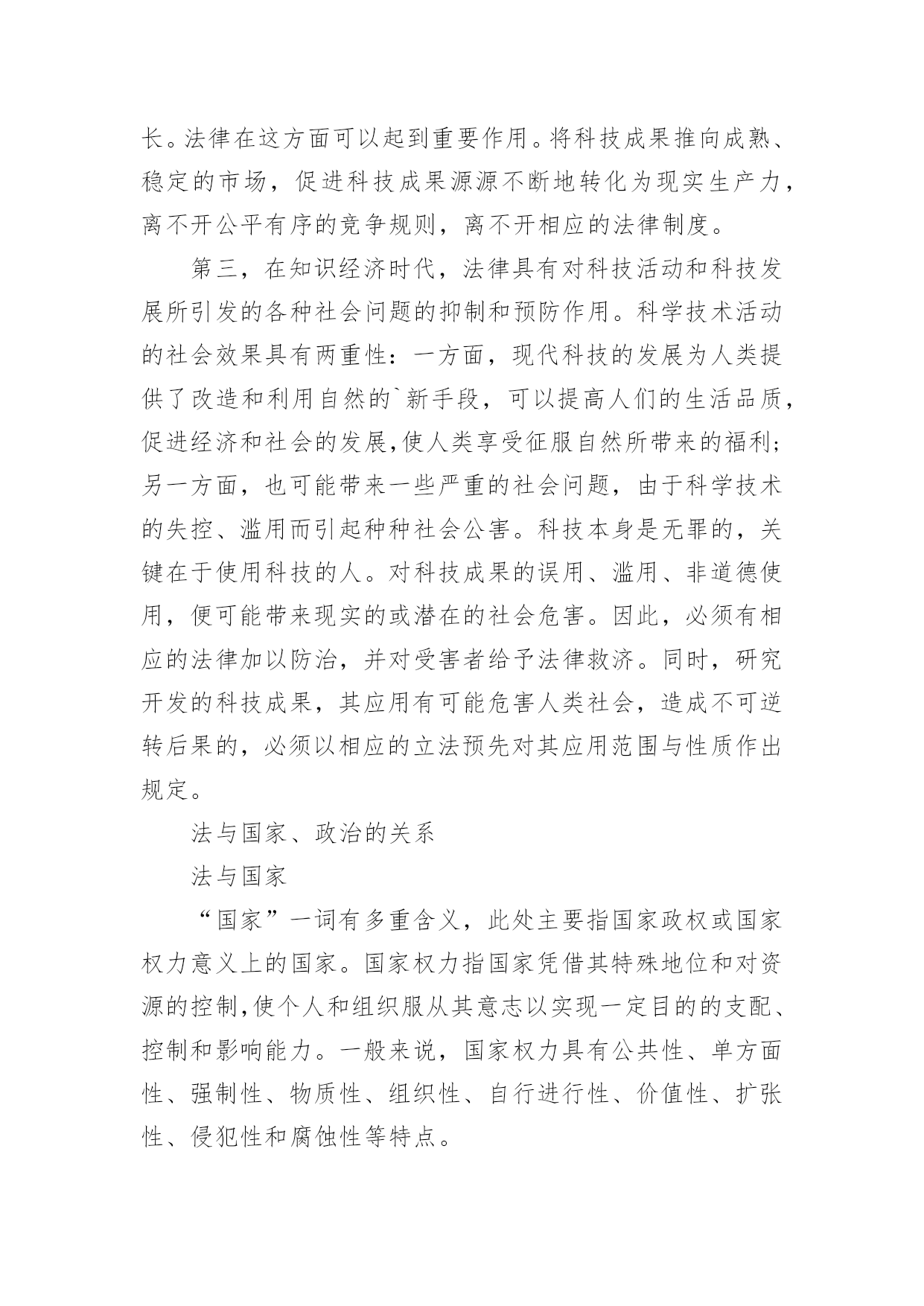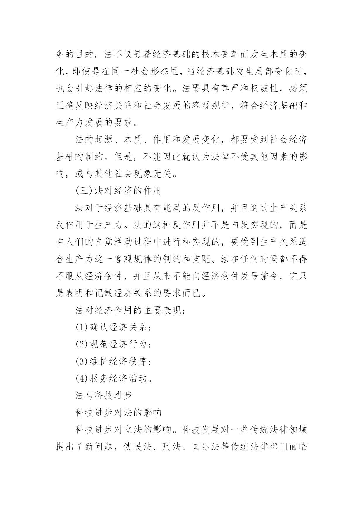 司法考试法理学复习笔记2017年司法考试法理学复习笔记法理学被界定为法律的智慧,或者对“法律事业”的性质和语境的理解,而法理可以补充法律的不足,所以有些国家把法理作为最后适用的法源。下面是小编为大家搜索整理的2017年司法考试法理学复习笔记,希望对大家考试有所帮助。法的价值的含义“价值”是现代人文社会科学普遍使用的一个概念。它体现着主客体之间的一种关系,也表征着作为价值主体而言的人的主体性意识,同时也代表着主体与客体之间关系的契合程度。那么,什么是法的价值呢?简单地说,法的价值是指法这种规范体系(客体)有哪些为人(主体)所重视、珍视的性状、属性和作用。①具体而言,法的价值这一范畴包含如下意义:(1)同价值的概念一样,法的价值也体现了一种主客体之间的关系。也就是说,它是人对作为客体的法律的认识,从这个意义上而言,法的价值不是以人受制于法律,而是以人作为法律的本体这一关系得以存在的。法律无论其内容抑或目的,都必须符合人的需要,这是法的价值概念存在的基础。(2)法的价值表明了法律对于人们而言所拥有的正面意义,它体现了其属性中为人们所重视、珍惜的部分。也就是说,法的价值意味着它能够满足人们的需要,代表着人们对美好事物的追求。例如,在法律中常说到的自由、正义、秩序等,都是人们为了生存、合作所必须确定的一种理想状态。(3)法的价值既包括对实然法的认识,更包括对应然法的追求。也就是说,法的价值的研究不能以现行的实在法为限,它还必须采用价值分析、价值判断的方法,来追寻什么样的法律才是最符合人的需要的这一问题。还必须注意的是,法的价值的概念并不等于法律作用或法律效用等概念,法律本身所有的各种属性,如法律的各种作用,法律的阶级意志性和强制性等,它们只是法的价值得以形成的基础和条件。法的价值反映了主体与法律之间司的特定关系,是使法律更好地服从和服务于人所确定的法学范畴。法与经济的一般关系(一)什么是经济按照传统的理解,所谓经济或称经济状况,指的是整个社会的物质资料的生产和再生产;经济活动即社会物质的生产、分配、交换和消费活动的统称;经济基础即一定社会的生产关系的各个方面的总和。(二)法是由经济基础决定的法作为上层建筑的一部分,是由经济基础决定的。有什么样的经济基础,就有什么样的法律。法必须适应经济基础的要求而作相应的变化,否则就不能达到为自己经济基础服务的目的。法不仅随着经济基础的根本变革而发生本质的变化,即使是在同一社会形态里,当经济基础发生局部变化时,也会引起法律的相应的变化。法要具有尊严和权威性,必须正确反映经济关系和社会发展的客观规律,符合经济基础和生产力发展的要求。法的起源、本质、作用和发展变化,都要受到社会经济基础的制约。但是,不能因此就认为法律不受其他因素的影响,或与其他社会现象无关。(三)法对经济的作用法对于经济基础具有能动的反作用,并且通过生产关系反作用于生产力。法的这种反作用并不是自发实现的,而是在人们的自觉活动过程中进行和实现的,要受到生产关系适合生产力这一客观规律的制约和支配。法在任何时候都不得不服从经济条件,并且从来不能向经济条件发号施令,它只是表明和记载经济关系的要求而已。法对经济作用的主要表现:(1)确认经济关系;(2)规范经济行为;(3)维护经济秩序;(4)服务经济活动。法与科技进步科技进步对法的影响科技进步对立法的影响。科技发展对一些传统法律领域提出了新问题,使民法、刑法、国际法等传统法律部门面临着种种挑战,要求各个法律部门的发展要不断深化。同时,随着科技的发展,出现了大量新的立法领域,科技法日趋成为一个独立的法律部门;关于科技法的研究也随之广泛开展起来,科技法学作为一个新的独立的学科,也被广泛承认。科技进步对司法的影响。司法过程的三个主要环节——事实认定、法律适用和法律推理,越来越深刻地受到了现代科学技术的影响。科技进步对法律思想的影响。对立法起着指导作用的法律意识常常受到科技发展的影响和启迪。同时,科技进步促进了人们法律观念的更新,出现了一些新的法律思想、法学理论。科技进步对于历史上已经形成的各个法系以及对于法学流派的产生、分化和发展,也发生着重要的影响。法与科技进步法对科技进步的作用第一,运用法律管理科技活动,确立国家科技事业的地位以及国际间科技竞争与合作的准则。首先,法律可以确认科技发展在—个国家社会生活中的战略地位;1993年颁布的《科学技术进步法》就是指导我国科技事业发展的基本法律;其次,法律可以对国际竞争起到促进和保障作用,可以对科技活动起到组织、管理、协调作用。第二,法律对于科技经济一体化特别是科技成果商品化,具有积极的促进作用。科学技术是第一生产力,但并不等于有先进的科学技术,经济就会自然而然地发展。只有使科技和经济相结合,大力促进科技成果商品化,经济才能高速增长。法律在这方面可以起到重要作用