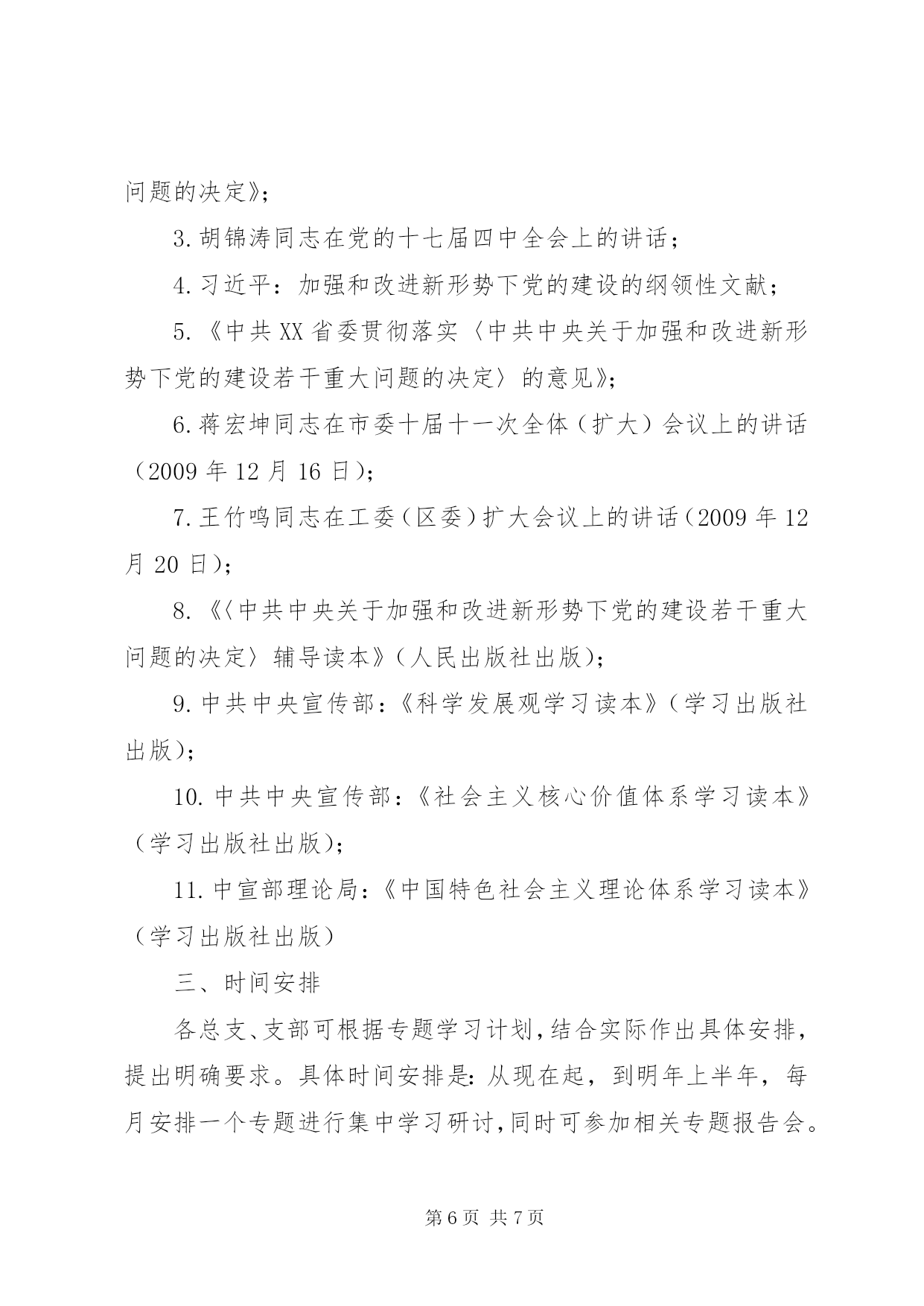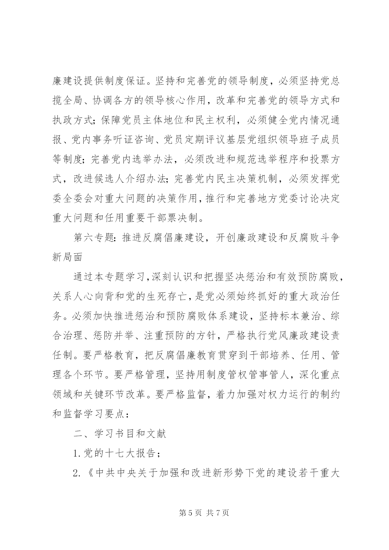 第PAGE\*Arabic\*MERGEFORMAT7页共NUMPAGES\*MERGEFORMAT7页上半年机关理论学习计划编者按:本文主要从专题设置;学习书目和文献;时间安排;学习要求进行讲述。其中,主要包括:认清形势,准确把握党的建设的基本经验、总体要求和目标任务、推进党的思想建设,着力建设马克思主义学习型党组织、推进党的组织建设,切实增强基层党组织的创造力凝聚力战斗力、推进党的作风建设,保持党同人民群众的血肉联系、推进党的制度建设,努力以科学制度保障党的建设、推进反腐倡廉建设,开创廉政建设和反腐败斗争新局面、党的十七大报告、各总支、支部可根据专题学习计划,结合实际作出具体安排,提出明确要求。具体时间安排是:从现在起,到明年上半年,每月安排一个专题进行集中学习研讨,同时可参加相关专题报告会、学习十七届四中全会精神,要坚持原原本本学,把四中全会和省委、市委全会精神作为主要内容,集中一段时间,认真研读相关学习书目和文献,全面准确把握基本精神,在真学真懂真信真用上下功夫等,具体材料请详见:今年上半年区级机关的理论学习,着重围绕党的十七届四中全会《决定》的内容,贯彻落实好省委《意见》和市委的计划安排。为方便组织党员干部认真研读,特制定十七届四中全会精神专题学习计划,供各总支、支部学习参考。一、专题设置第一专题:认清形势,准确把握党的建设的基本经验、总体要求和目标任务通过本专题学习,深刻理解和把握新形势下加强和改进党的建设的重要性和紧迫性。深刻认识和把握实现党的十七大描绘的宏伟蓝图,要求进一步从战略上研究加强和改进党的建设;应对国际形势的挑战和风险,特别是应对国际金融危机冲击、保持经济平稳较快发展,要求进一步加强和改进党的建设;巩固和扩大深入学习实践科学发展观活动成果,抓紧解决党内存在的突出问题,要求进一步加强和改进党的建设。高XX县区发展正处在关键阶段,为了加快推进经济转型升级、大力发展科技创新型经济、全力维护社会和谐稳定、不断开创科学发展新局面,必须进一步把思想和行动统一到四中全会精神上来,把智慧和力量凝聚到落实省委、市委、区委的决策部署上来,努力开创我区机关党建工作新局面。通过本专题学习,深刻认识和把握我们党加强自身建设的六条基本经验。它集中体现了党在全国执政后加强自身建设的丰富实践,体现和深化了对共产党执政规律、社会主义建设规律、人类社会发展规律的认识,必须作为加强和改进新形势下党的建设的重要指导原则长期坚持,并在实践中不断丰富发展。通过本专题学习,深刻认识和把握“四个着眼于”的党建工作着力点、“五位一体”的党建工作总体布局、提高党的建设科学化水平的新要求,以及党的建设的总目标;加强和改进新形势下党的建设,必须按照《决定》提出的总体要求和《意见》的工作部署,紧紧围绕“两个率先”大局,突出重点,突破难点,以科学理论指导党的建设、以科学制度保障党的建设、以科学方法推进党的建设,切实提高党的建设科学化水平。第二专题:推进党的思想建设,着力建设马克思主义学习型党组织通过本专题学习,深刻认识和把握建设马克思主义学习型政党的重要性紧迫性。建设学习型党组织和学习型领导班子,必须坚持学以致用,加强党的基本理论学习,不断推进马克思主义中国化、时代化、大众化,系统掌握中国特色社会主义理论体系,深入贯彻落实科学发展观,模范学习践行社会主义核心价值体系;必须建好用好基本阵地,大规模培训干部,大幅度提高干部素质;必须创新学习方式方法,坚持“干什么学什么、缺什么补什么”的原则,不断优化知识结构、提高综合素质、增强创新能力。第三专题:推进党的组织建设,切实增强基层党组织的创造力凝聚力战斗力通过本专题学习,深刻认识和把握坚持和健全民主集中制,积极发展党内民主,必须坚持和完善党的领导制度、保障党员主体地位和民主权利、完善党代表大会制度和党内选举制度、完善党内民主决策机制、维护党的集中统一。深化干部人事制度改革,建设高素质干部队伍,必须坚持德才兼备、以德为先的用人标准,着力形成充满活力的选人用人机制,培养造就大批优秀年轻干部,提高领导班子和领导干部推动科学发展、促进社会和谐能力。做好抓基层打基础工作、夯实党执政的组织基础,必须坚持围绕中心、服务大局、拓宽领域、强化功能,进一步巩固和加强党的基层组织,着力扩大覆盖面、增强生机活力,使党的基层组织充分发挥推动发展、服务群众、凝聚人心、促进和谐的作用,使广大党员牢记宗旨、心系群众。第四专题:推进党的作风建设,保持党同人民群众的血肉联系通过本专题学习,深刻认识和把握党的作风建设关系党和人民事业成败,必须弘扬党的优良作风,保持党同人民群众的血肉联系。推进党的作风建设,要大兴密切联系群众之风、求真务实之风、艰苦奋斗之风、批评和自我批评之风;要多管齐下,以思想教育、完善制度、集中整顿、严肃纪律为抓