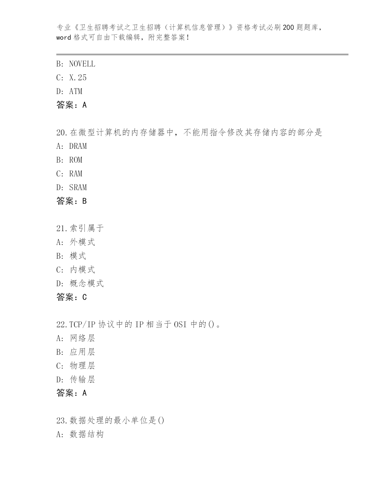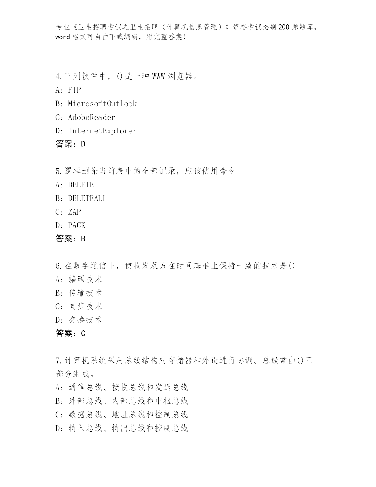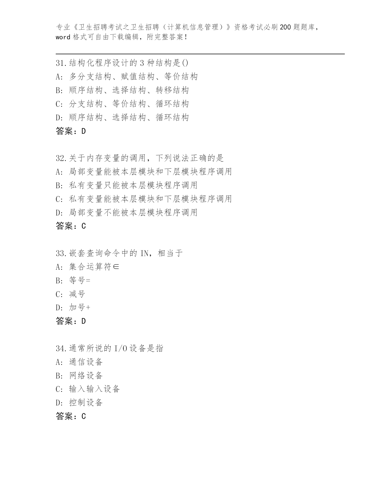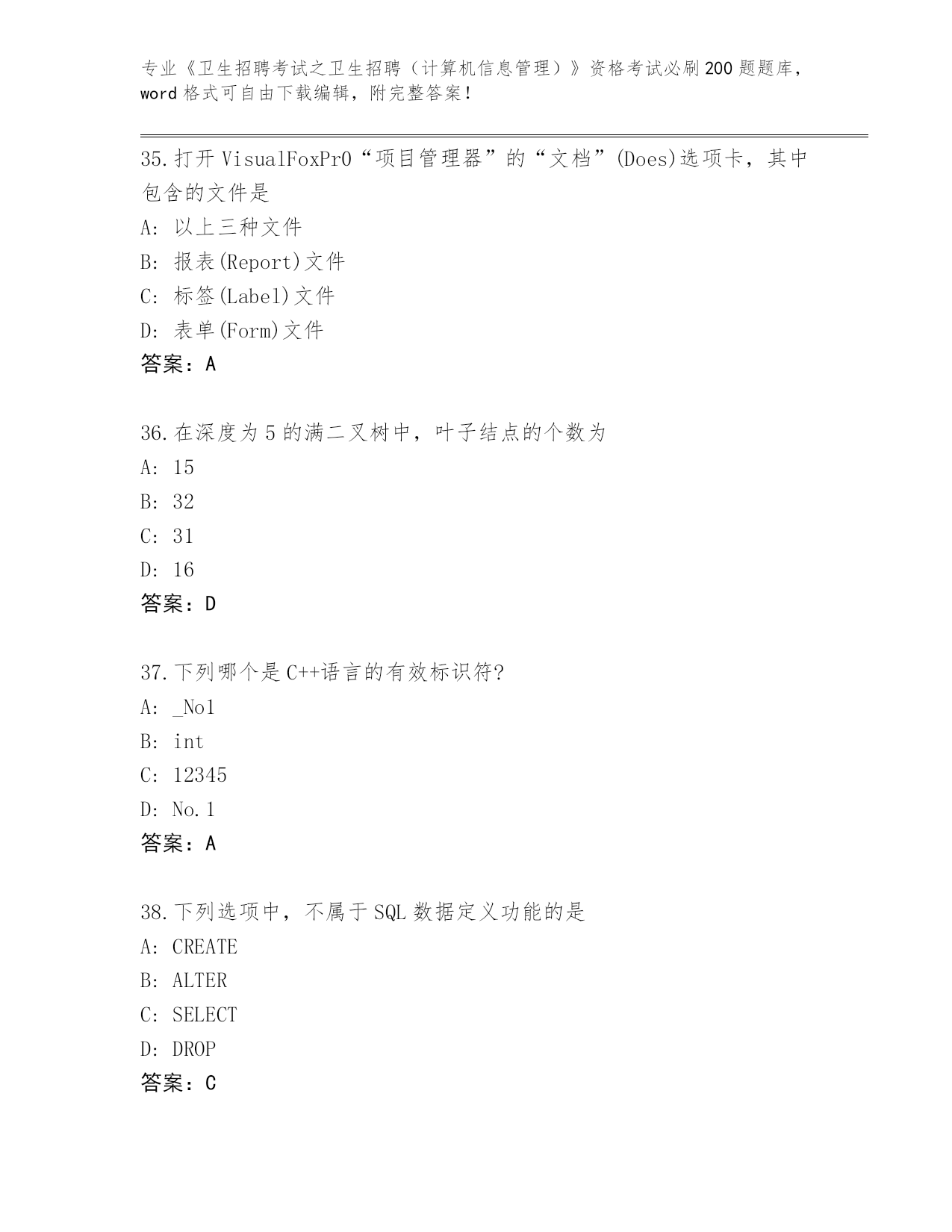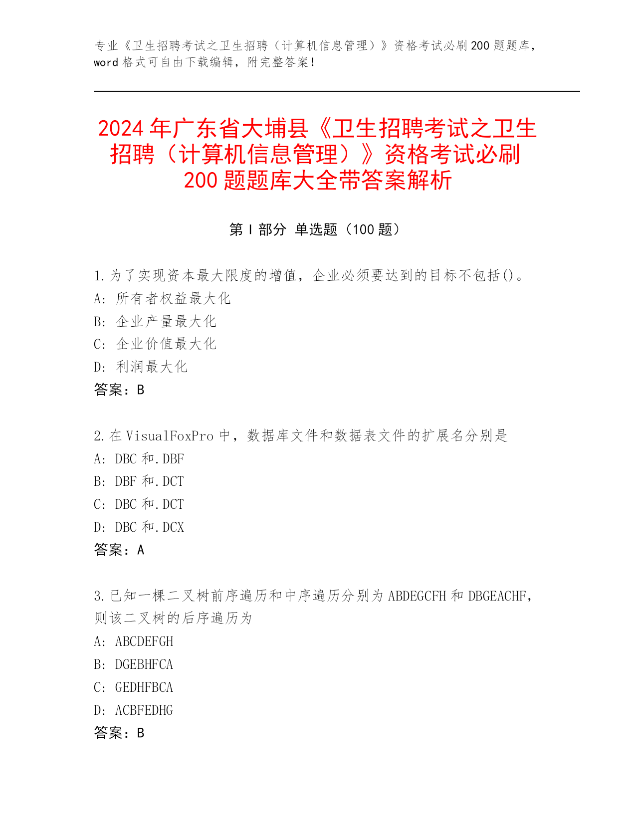 2024年广东省大埔县《卫生招聘考试之卫生招聘(计算机信息管理)》资格考试必刷200题题库大全带答案解析.docx