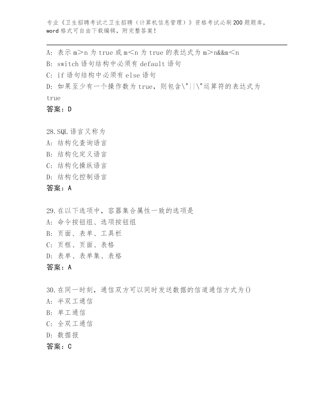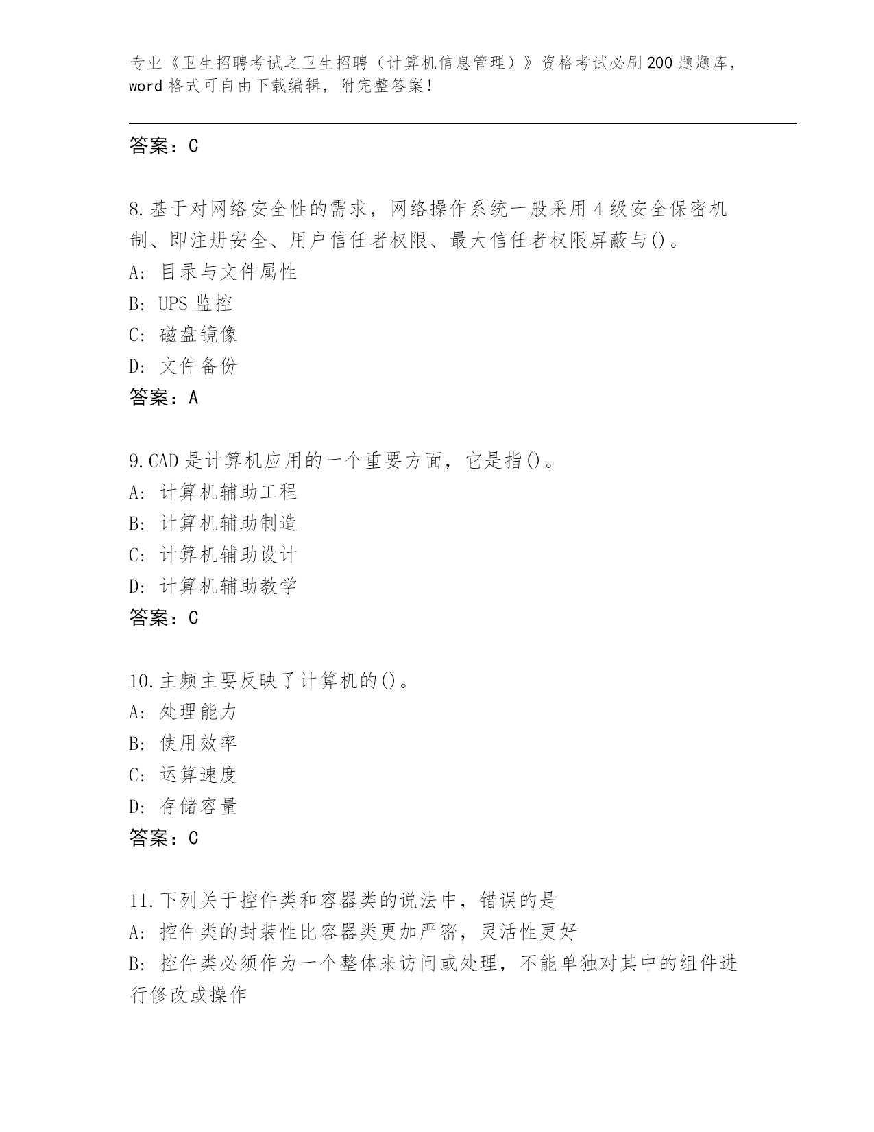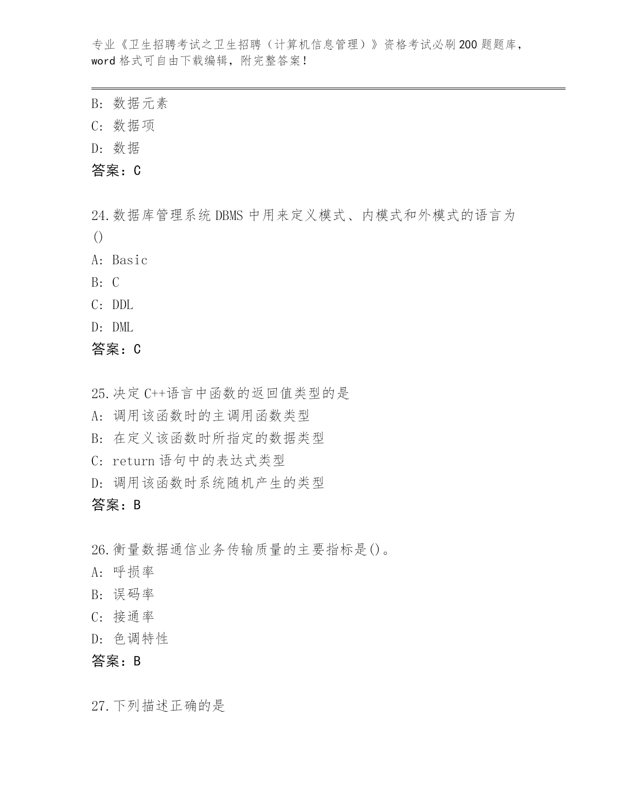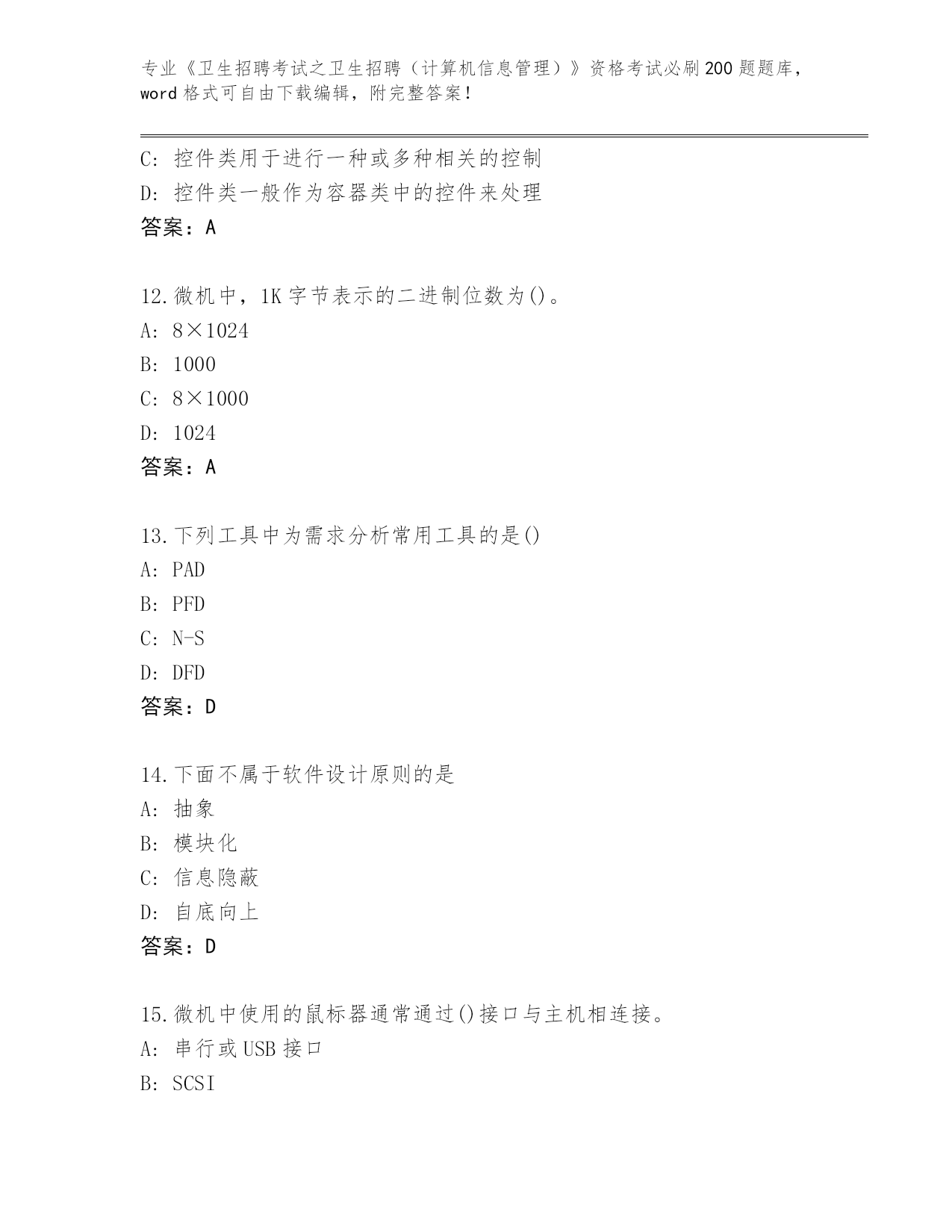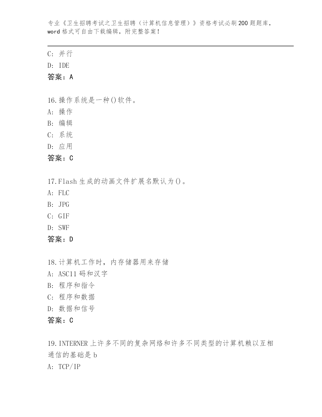 2024年广东省大埔县《卫生招聘考试之卫生招聘(计算机信息管理)》资格考试必刷200题题库大全带答案解析.docx