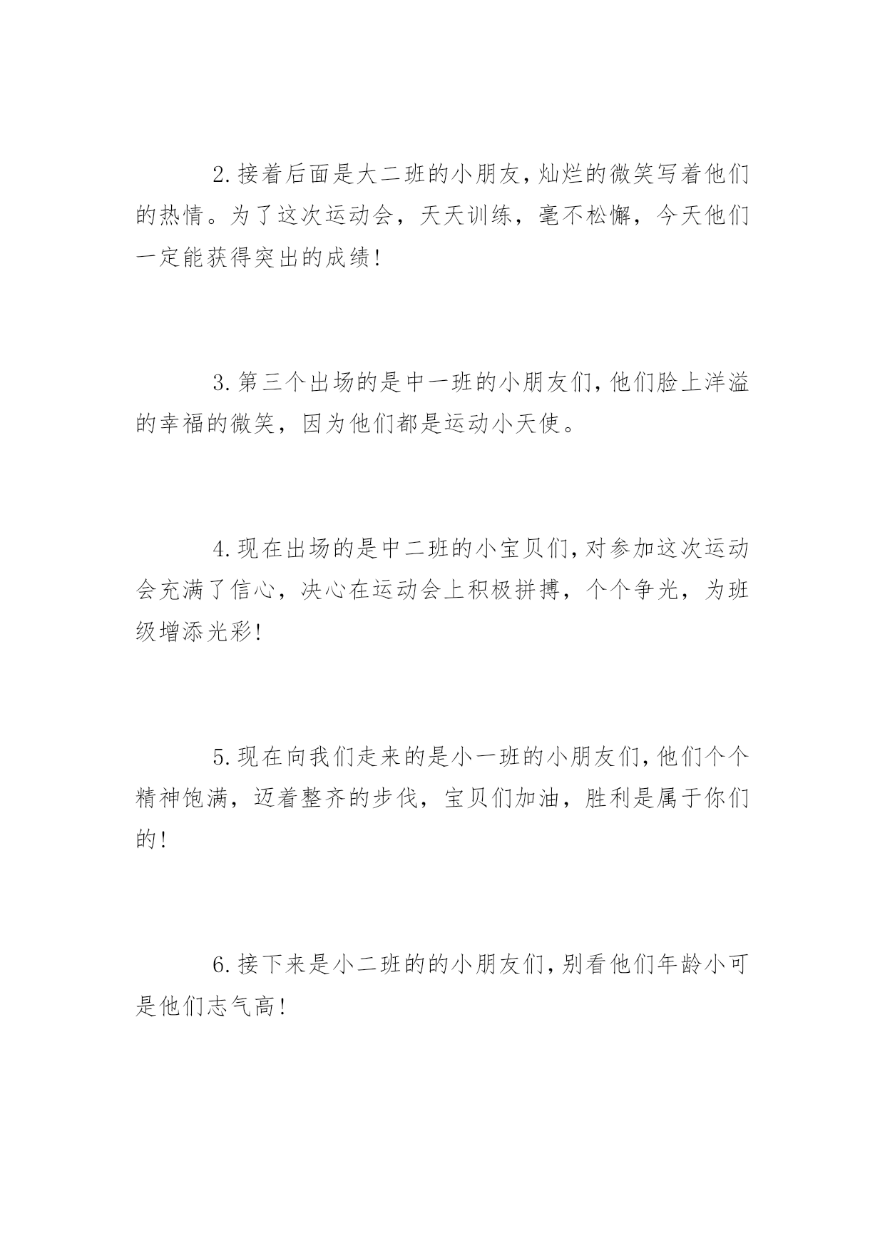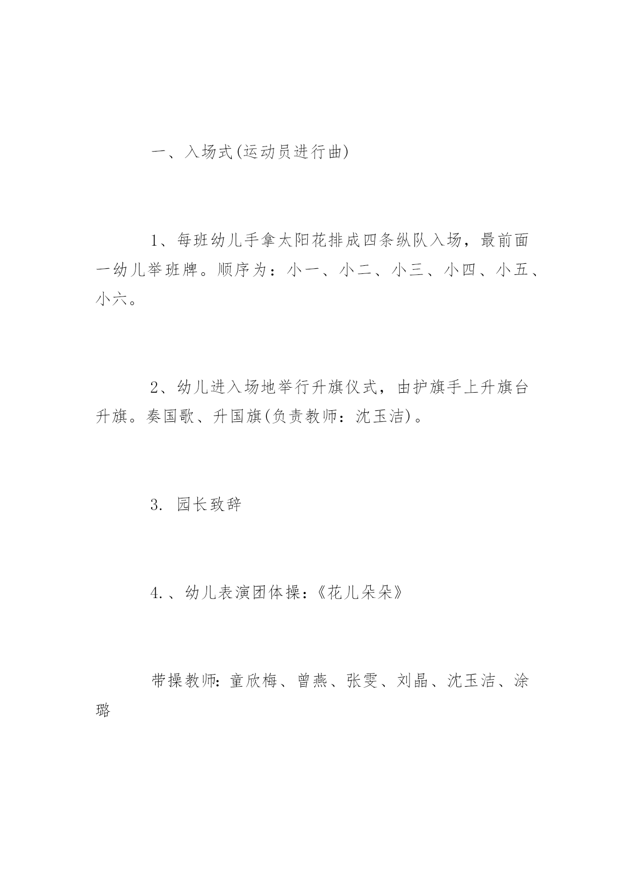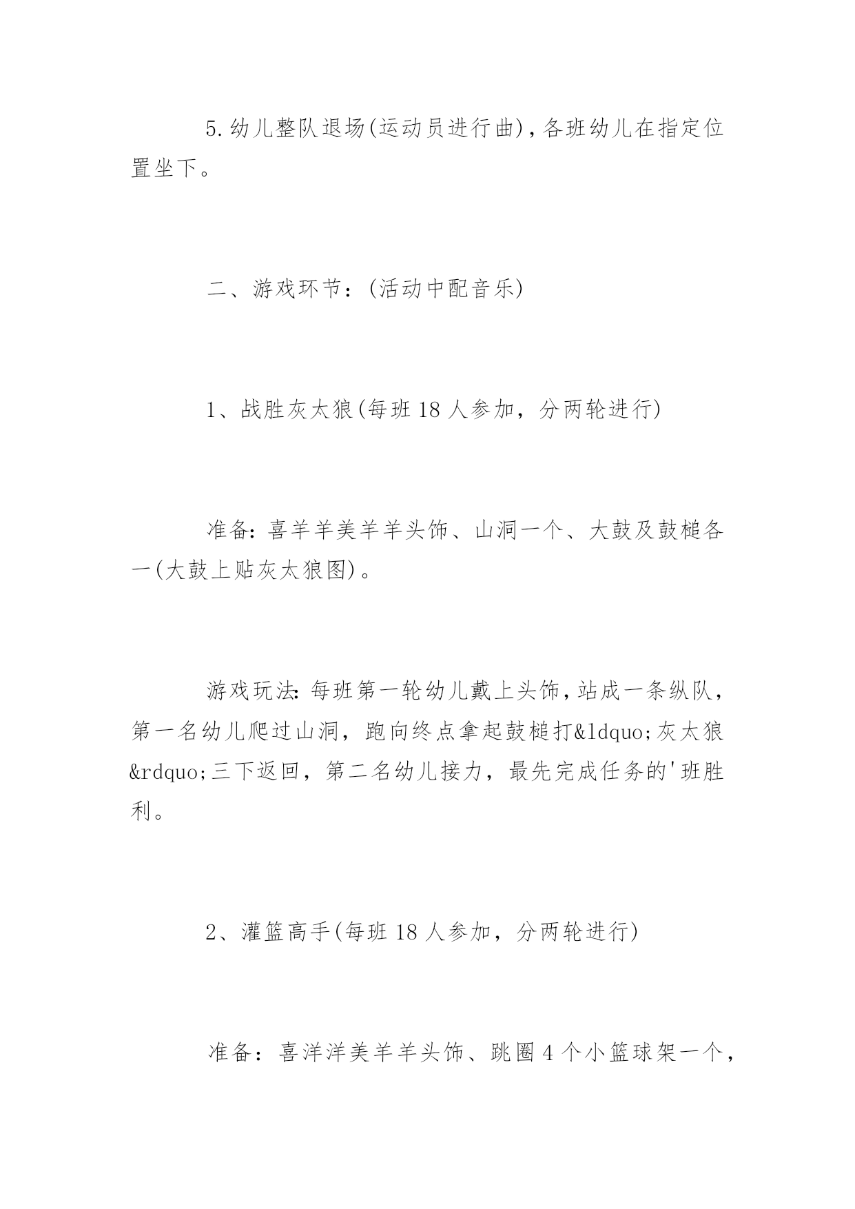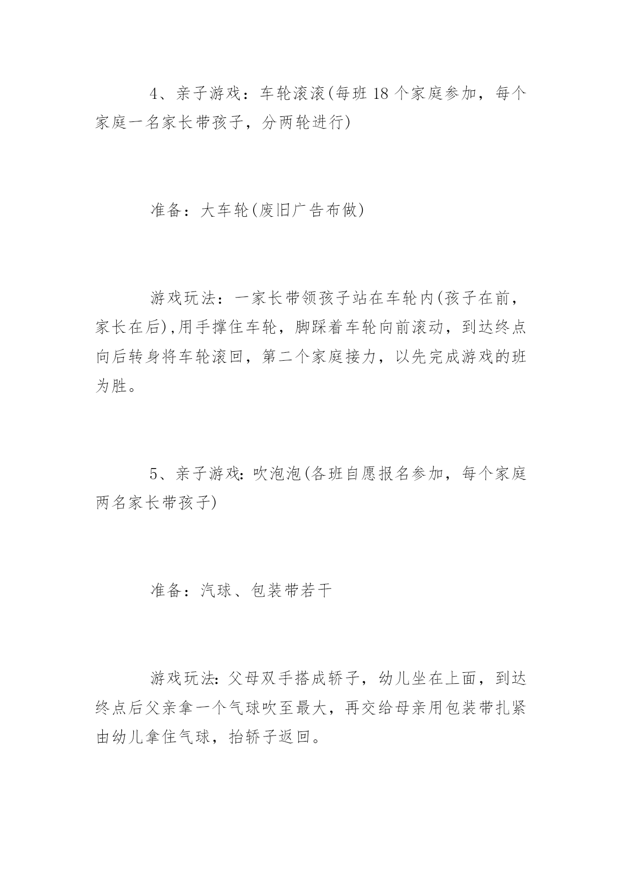 小班亲子运动会方案亲子运动会的召开能够增强孩子与家长之前的交流与合作!下面是应届毕业生小编为大家收集的关于小班亲子运动会方案,欢迎大家阅读!小班亲子运动会方案【1】活动意图:全面贯彻“纲要”精神,全面实施幼儿启蒙教育。加强家园教育,促进幼儿健康成长。同时让教师和幼儿的精神风貌进行充分展示。让孩子在爱的阳光下,其心智之门,雅童之趣,受到最好的教育,也让家长们体会到孩子在教师慈母般的关怀下、爱护、引导下,各方面能力有较大提高,行为习惯明显改观,性格变得更加活泼,举止变得端庄大方,更加坚信幼儿园是孩子成长的摇篮,是孩子放飞希望的绿草地。活动过程:一、入场式(运动员进行曲)1、每班幼儿手拿太阳花排成四条纵队入场,最前面一幼儿举班牌。顺序为:小一、小二、小三、小四、小五、小六。2、幼儿进入场地举行升旗仪式,由护旗手上升旗台升旗。奏国歌、升国旗(负责教师:沈玉洁)。3.园长致辞4.、幼儿表演团体操:《花儿朵朵》带操教师:童欣梅、曾燕、张雯、刘晶、沈玉洁、涂璐5.幼儿整队退场(运动员进行曲),各班幼儿在指定位置坐下。二、游戏环节:(活动中配音乐)1、战胜灰太狼(每班18人参加,分两轮进行)准备:喜羊羊美羊羊头饰、山洞一个、大鼓及鼓槌各一(大鼓上贴灰太狼图)。游戏玩法:每班第一轮幼儿戴上头饰,站成一条纵队,第一名幼儿爬过山洞,跑向终点拿起鼓槌打“灰太狼”三下返回,第二名幼儿接力,最先完成任务的'班胜利。2、灌篮高手(每班18人参加,分两轮进行)准备:喜洋洋美羊羊头饰、跳圈4个小篮球架一个,球9个游戏玩法:每班第一轮幼儿戴上头饰,站成一条纵队,第一名幼儿跳过四个圈,在篮子里拿起一个球,跑到终点把球投进篮球框内跑回,第二名幼儿接力,最先完成任务的班胜利。3、亲子游戏:小老鼠偷油(每班18个家庭参加,每个家庭一名家长带孩子,分三轮进行)准备:大可乐瓶四个、食用油瓶6个、老鼠头饰、尾巴(带钩子)各6个。游戏玩法:家长带领幼儿并列站成两条纵队,分别戴上老鼠头饰,家长系上尾巴。游戏开始,第一个家庭学老鼠走路穿越树林(可乐瓶)跑到终点偷油,孩子将油瓶挂到家长的尾巴钩子上快速返回。第二个家庭接力,最先完成任务的班胜利。4、亲子游戏:车轮滚滚(每班18个家庭参加,每个家庭一名家长带孩子,分两轮进行)准备:大车轮(废旧广告布做)游戏玩法:一家长带领孩子站在车轮内(孩子在前,家长在后),用手撑住车轮,脚踩着车轮向前滚动,到达终点向后转身将车轮滚回,第二个家庭接力,以先完成游戏的班为胜。5、亲子游戏:吹泡泡(各班自愿报名参加,每个家庭两名家长带孩子)准备:汽球、包装带若干游戏玩法:父母双手搭成轿子,幼儿坐在上面,到达终点后父亲拿一个气球吹至最大,再交给母亲用包装带扎紧由幼儿拿住气球,抬轿子返回。小班亲子运动会方案【2】一、亲爱的家长朋友们、小朋友们大家好!首先感谢各位家长在百忙之中抽空参加这次的亲子运动会活动,共同分享孩子们童年的欢乐,欢迎你们,运动使孩子们健康,运动使孩子们快乐,今天迎来了我们曙光第六幼儿园首届亲子运动会。为了展示孩子们的风采,我们老师们牺牲了许多的休息时间,精心设计了好多的活动,瞧,孩子们个个整装待发,跃跃欲试。二、请欣赏花环对为我们带来的.体操表演,同时欢迎小运动员入场。小运动员入场:1.走在最前面的是我们大一班的小朋友,他们迈着矫健的步伐向我们走来。2.接着后面是大二班的小朋友,灿烂的微笑写着他们的热情。为了这次运动会,天天训练,毫不松懈,今天他们一定能获得突出的成绩!3.第三个出场的是中一班的小朋友们,他们脸上洋溢的幸福的微笑,因为他们都是运动小天使。4.现在出场的是中二班的小宝贝们,对参加这次运动会充满了信心,决心在运动会上积极拼搏,个个争光,为班级增添光彩!5.现在向我们走来的是小一班的小朋友们,他们个个精神饱满,迈着整齐的步伐,宝贝们加油,胜利是属于你们的!6.接下来是小二班的的小朋友们,别看他们年龄小可是他们志气高!三、园长致开幕词,宣布亲子运动会开始四、小班运动会项目:1.滚球游戏规则:幼儿分组进行滚球比赛,教师记录时间,所用时间短的小朋友获胜。2.小脚踩大脚游戏方法:孩子的脚踩在家长的脚上,两人同时向前进,绕过障碍后返回起点,比谁快。3、老虎吃汤圆游戏方法:一名家长拿着桶子站在2米线后,孩子依次将10个小球投向桶内,家长可以移动接球,比比哪组接球数最多。五、颁奖仪式。