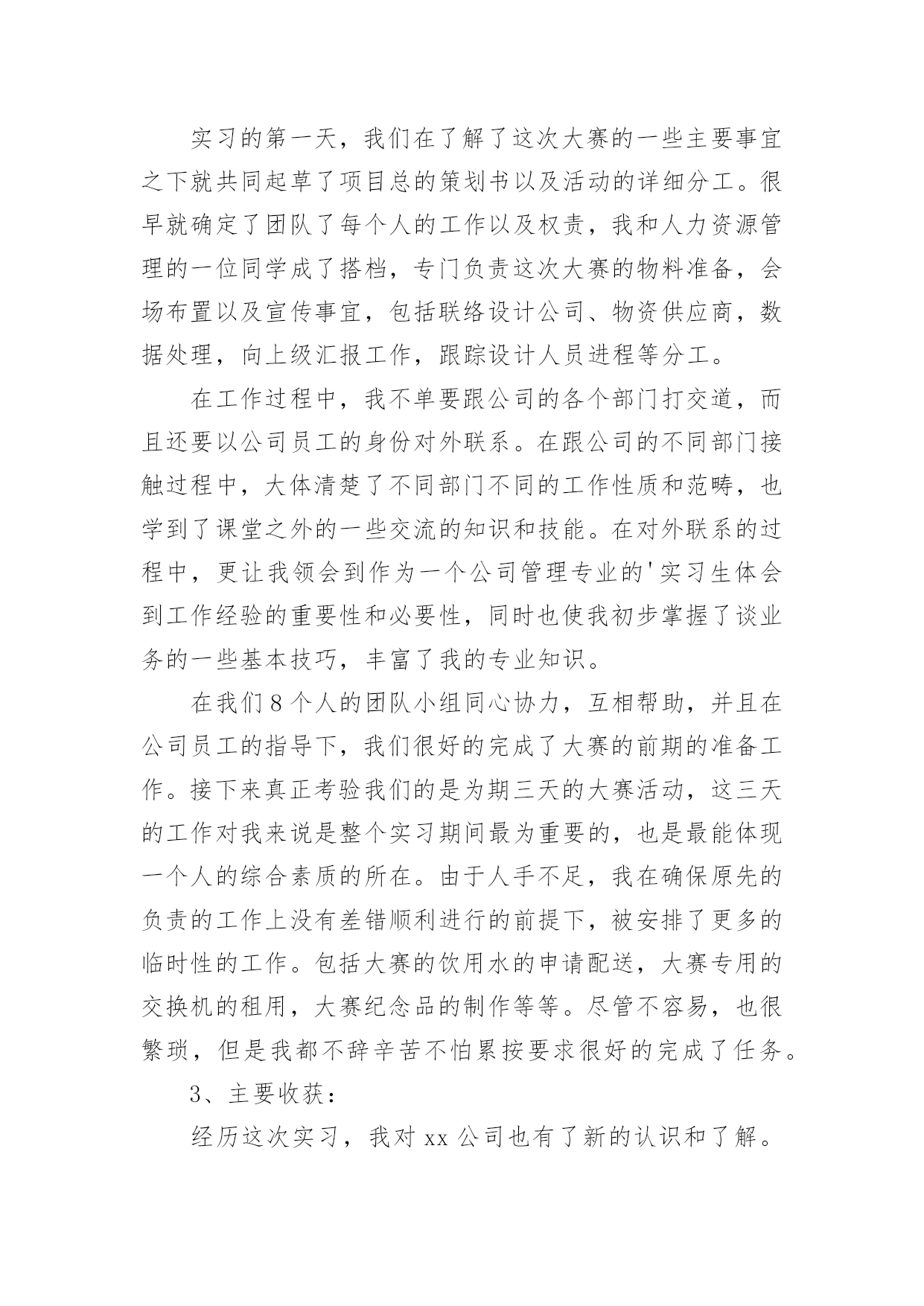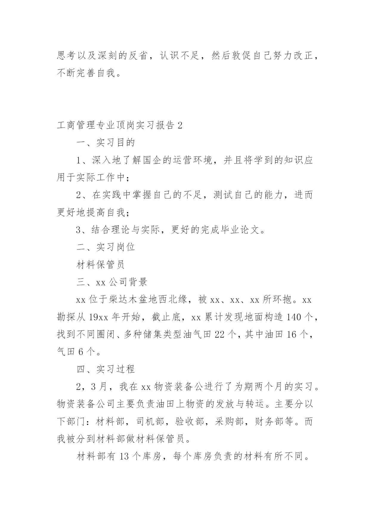 工商管理专业顶岗实习报告在经济发展迅速的今天,报告的适用范围越来越广泛,通常情况下,报告的内容含量大、篇幅较长。那么一般报告是怎么写的呢?以下是小编为大家收集的工商管理专业顶岗实习报告,欢迎阅读,希望大家能够喜欢。工商管理专业顶岗实习报告11、实习目的实习的目的在于通过实习使学生获得各专业的感性知识,理论联系实际,扩大知识面;使得学生较为全面地了解企业经营管理,学习企业成功的管理经验;培养学生将理论联系实际,深入接触工商管理实际工作,运用工商管理专业知识分析和解决现实中的工商管理问题;加深对社会和工作的认识,端正工作态度,学习工作方法,锻炼管理技能,为今后顺利踏上工作岗位打下基础;并且尝试探讨工商管理前沿问题,初定毕业论文选题。2、实习经历实习期间,我和其他七位同学安排到公司的培训教育部工作。我们的工作的主要内容在部门经理助理的带领下,策划并举行“xx首届大学生创业大赛总决赛”以及其他相关活动以及会议。我们8个人组成一个团队,共同负责这个项目,根据公司的要求,我们尽职尽责不辞辛苦努力把各项工作做好。实习的第一天,我们在了解了这次大赛的一些主要事宜之下就共同起草了项目总的策划书以及活动的详细分工。很早就确定了团队了每个人的工作以及权责,我和人力资源管理的一位同学成了搭档,专门负责这次大赛的物料准备,会场布置以及宣传事宜,包括联络设计公司、物资供应商,数据处理,向上级汇报工作,跟踪设计人员进程等分工。在工作过程中,我不单要跟公司的各个部门打交道,而且还要以公司员工的身份对外联系。在跟公司的不同部门接触过程中,大体清楚了不同部门不同的工作性质和范畴,也学到了课堂之外的一些交流的知识和技能。在对外联系的过程中,更让我领会到作为一个公司管理专业的'实习生体会到工作经验的重要性和必要性,同时也使我初步掌握了谈业务的一些基本技巧,丰富了我的专业知识。在我们8个人的团队小组同心协力,互相帮助,并且在公司员工的指导下,我们很好的完成了大赛的前期的准备工作。接下来真正考验我们的是为期三天的大赛活动,这三天的工作对我来说是整个实习期间最为重要的,也是最能体现一个人的综合素质的所在。由于人手不足,我在确保原先的负责的工作上没有差错顺利进行的前提下,被安排了更多的临时性的工作。包括大赛的饮用水的申请配送,大赛专用的交换机的租用,大赛纪念品的制作等等。尽管不容易,也很繁琐,但是我都不辞辛苦不怕累按要求很好的完成了任务。3、主要收获:经历这次实习,我对xx公司也有了新的认识和了解。根据我在实习过程中所经历,所知道的,我觉得公司可能存在在着以下的一些问题。首先,公司对高校培训教育合作不够重视。从这次大赛的用人以及重视程度可见一斑。其次,公司的团队协作方面还有待加强,由于是培训教育事业部负责这次大赛的,在需要其他部门合作的情况下,在我们接触到的部门当中有一部分是是未能提供我们所需要的协作的。“纸上得来终觉浅,绝知此事要躬行。”初读此句时,我并没有特别的感觉。然而就在这不长的实习后,我不仅真正明白了它的意义,更深切体会到它的内涵。对我而言,社会和单位才是的大学,我发现自己在课本上学到的理论知识如果不与公司工作实践相结合就显得太有限,太浅薄。在公司里每一个人都是我的老师,我要学习的实在太多太多,不仅是专业技能,还有职业精神和社会经验。回想当初刚要实习的时候,我抱着终于可以告别学生的单调生活,进入自己梦寐以求的充满活力的社会大舞台的心情,进入xx公司实习,在这不到一个月实习里发现自己学到的东西始终是不够,这也让我深刻地认识到学生的本职是学习而不是上课,从课堂到企业,学习是永无止境的,从这个角度说,我愿意永远当一个学生。这次实习的时间虽然很短,可我学到的却是我一个学期在学校难以了解的,我认识到了自身的不足,很多地方还有待加强改进,例如有时会在细小的工作点上缺乏注意,导致与期望不大相符的行动结果等一些问题,这些都促使我认真思考以及深刻的反省,认识不足,然后敦促自己努力改正,不断完善自我。工商管理专业顶岗实习报告2一、实习目的1、深入地了解国企的运营环境,并且将学到的知识应用于实际工作中;2、在实践中掌握自己的不足,测试自己的能力,进而更好地提高自我;3、结合理论与实际,更好的完成毕业论文。二、实习岗位材料保管员三、xx公司背景xx位于柴达木盆地西北缘,被xx、xx、xx所环抱。xx勘探从19xx年开始,截止底,xx累计发现地面构造140个,找到不同圈闭、多种储集类型油气田22个,其中油田16个,气田6个。四、实习过程2,3月,我在xx物资装备公进行了为期两个月的实习。物资装备公司主要负责油田上物资的发放与转运。主要分以下部门:材料部,司机部,验收部,采购部,财务部等。而我被分到材料部做材料保管员。材料部有13个库房,每个库房负责的材料有所不同。如一号库房负责汽车上的