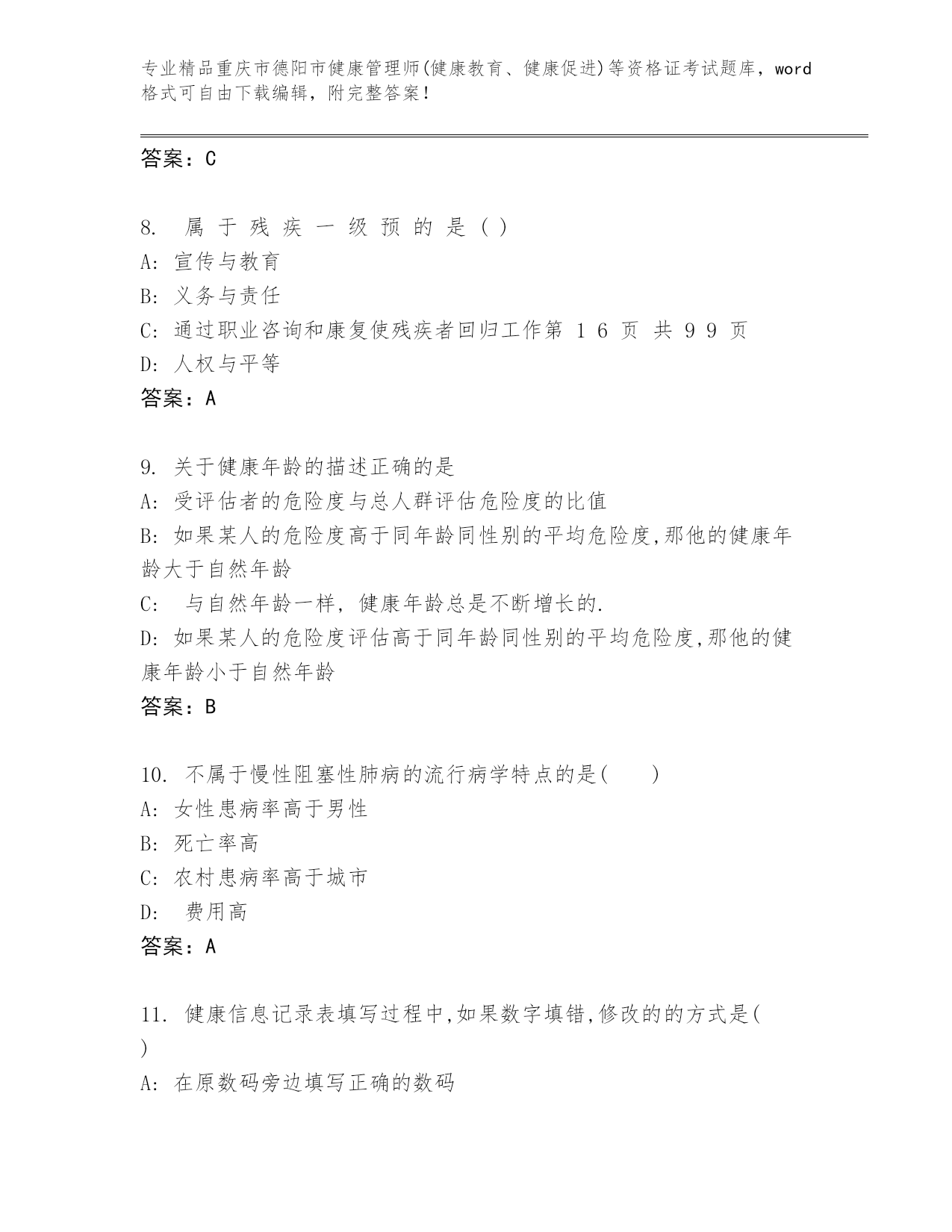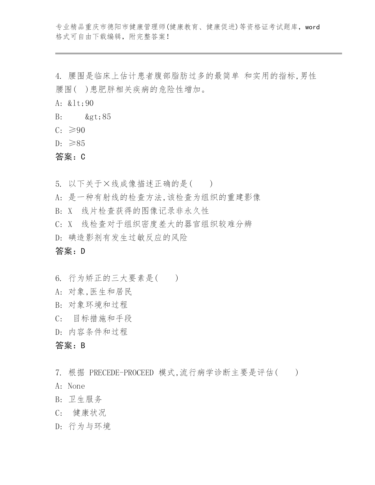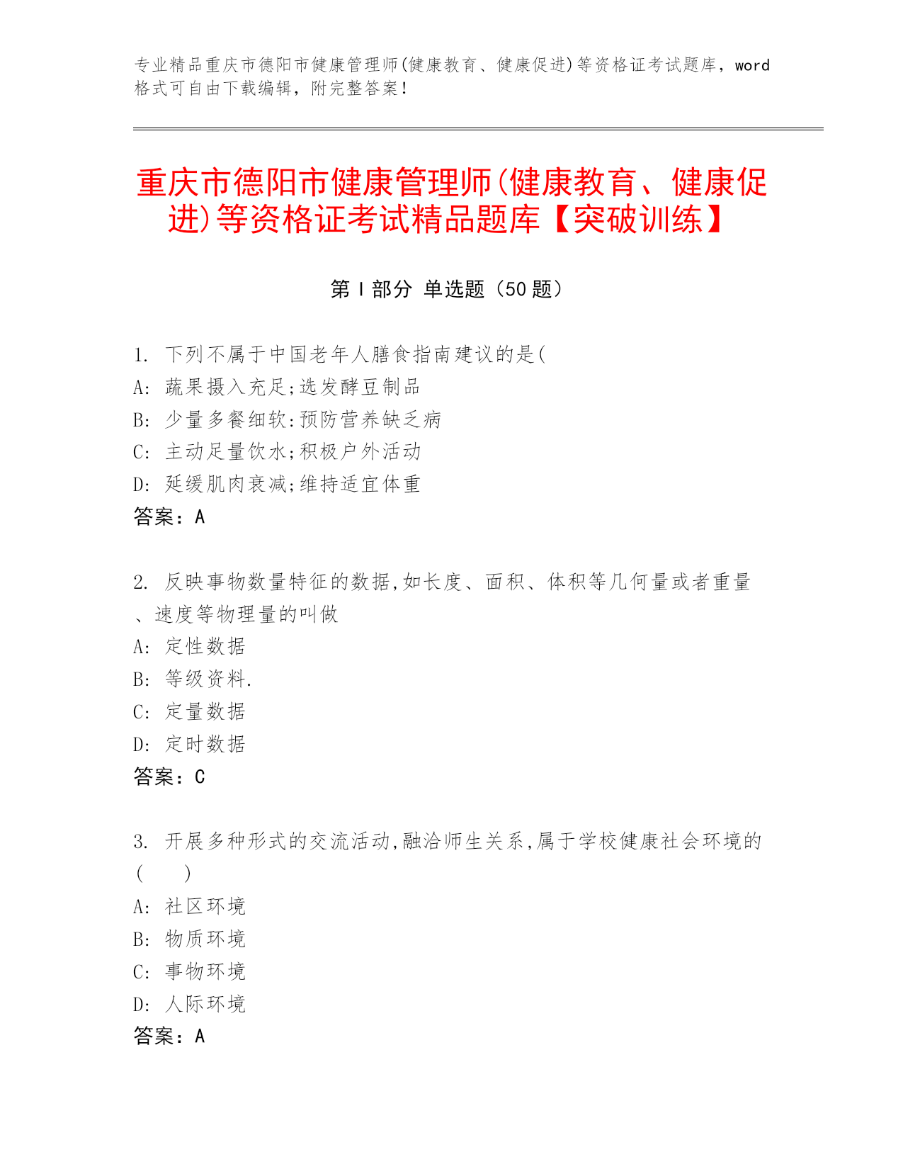 重庆市德阳市健康管理师(健康教育、健康促进)等资格证考试精品题库【突破训练】