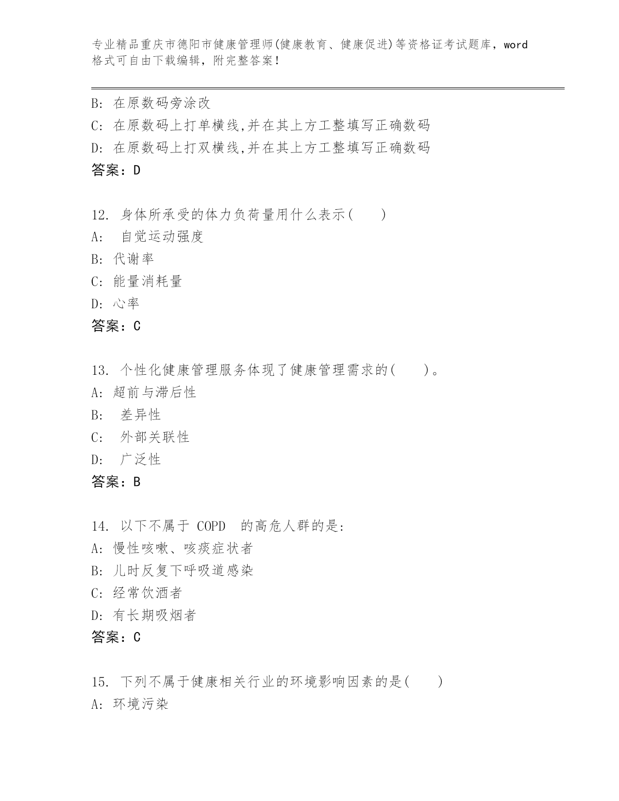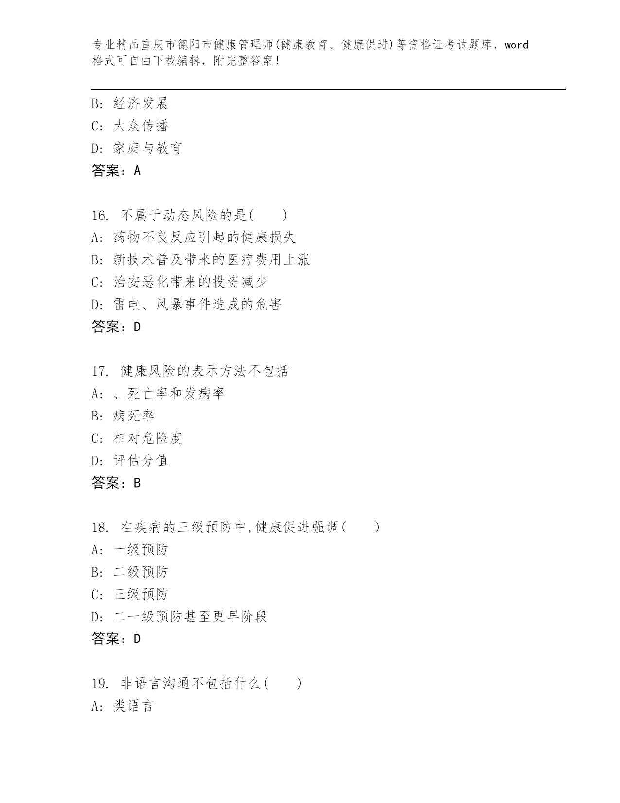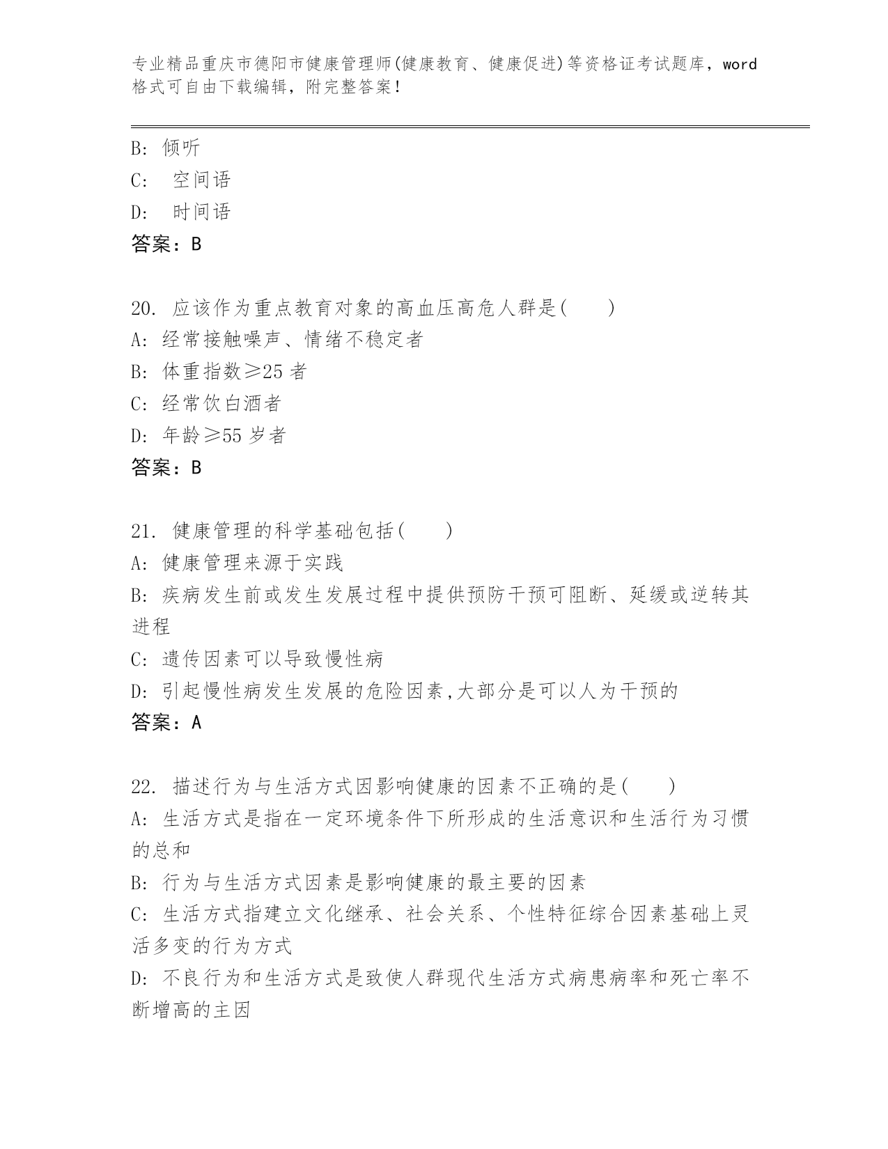 重庆市德阳市健康管理师(健康教育、健康促进)等资格证考试精品题库【突破训练】.docx