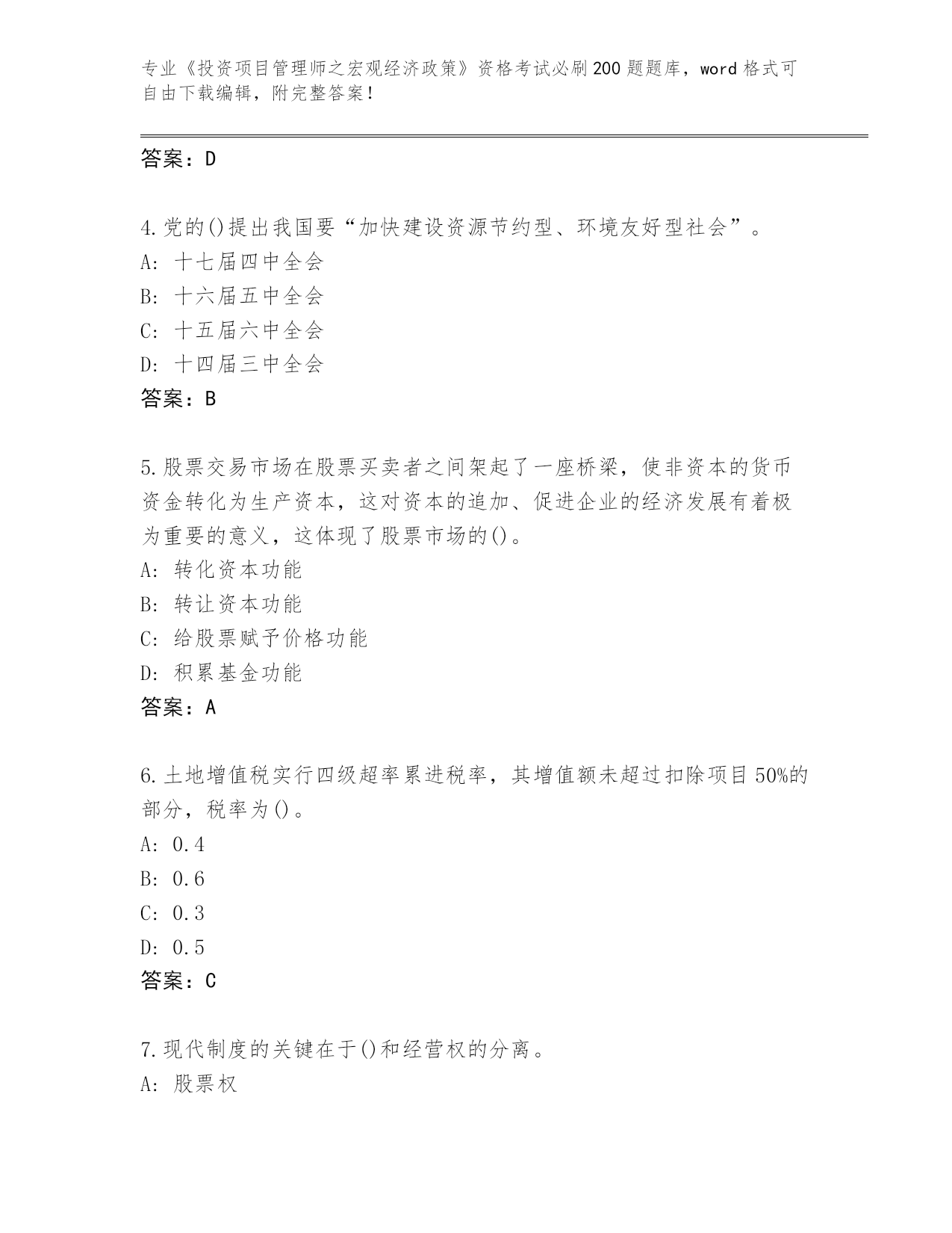 历年浙江省安吉县《投资项目管理师之宏观经济政策》资格考试必刷200题大全(实用)