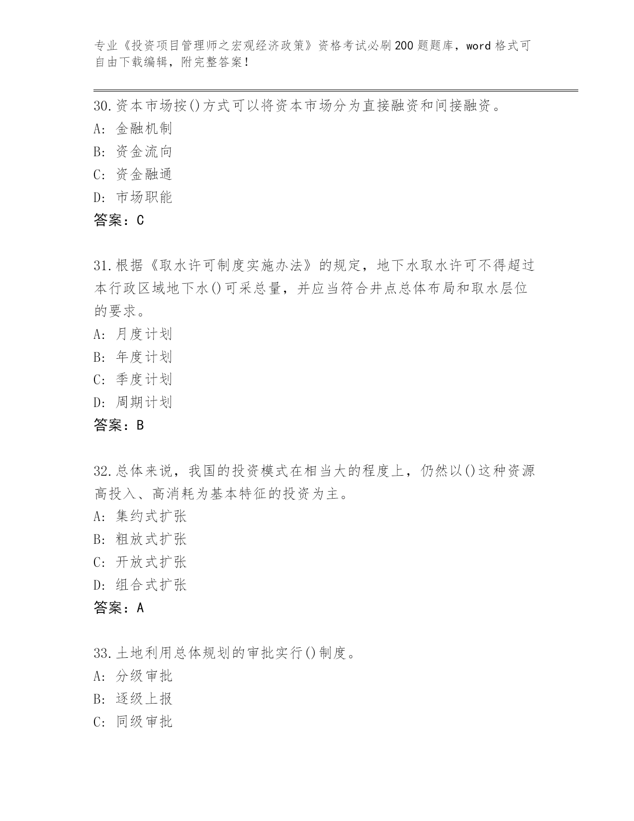 历年山西省和顺县《投资项目管理师之宏观经济政策》资格考试必刷200题题库【实用】