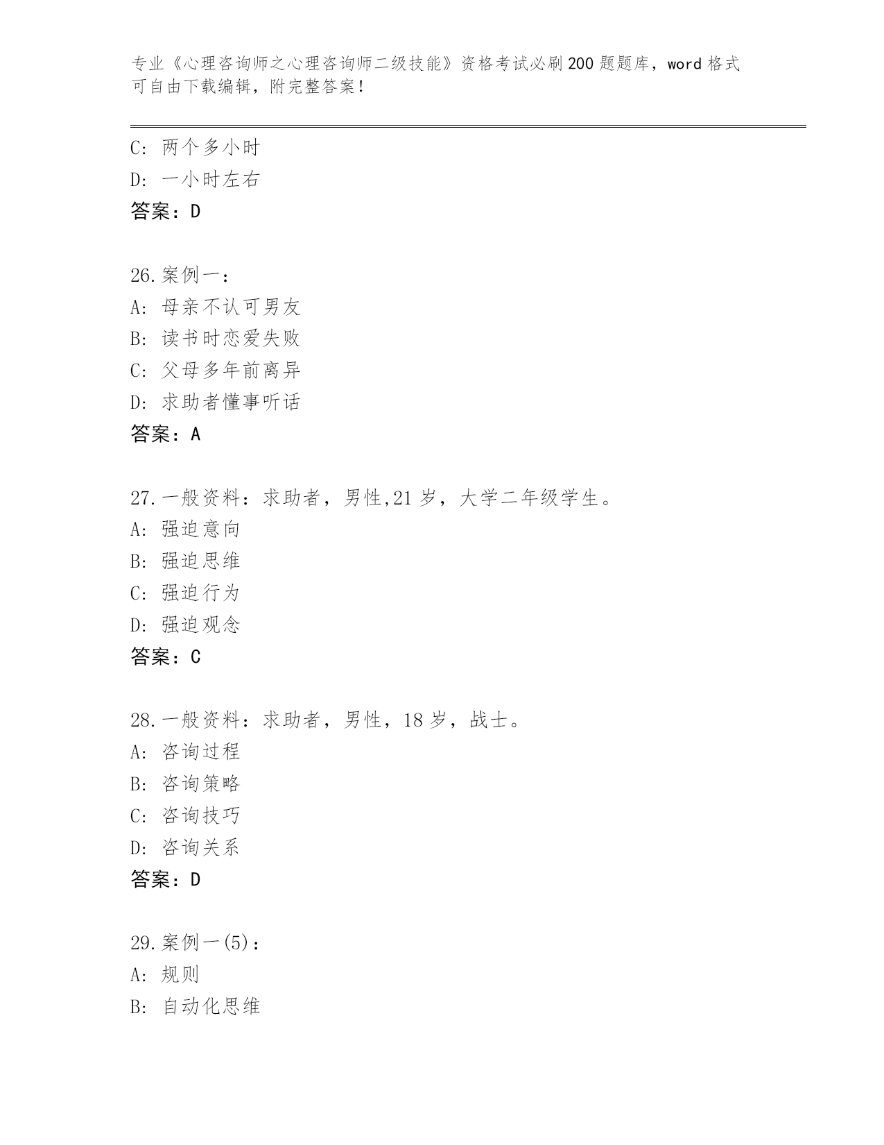 山东省《心理咨询师之心理咨询师二级技能》考试必刷200题题库大全附答案(基础题)