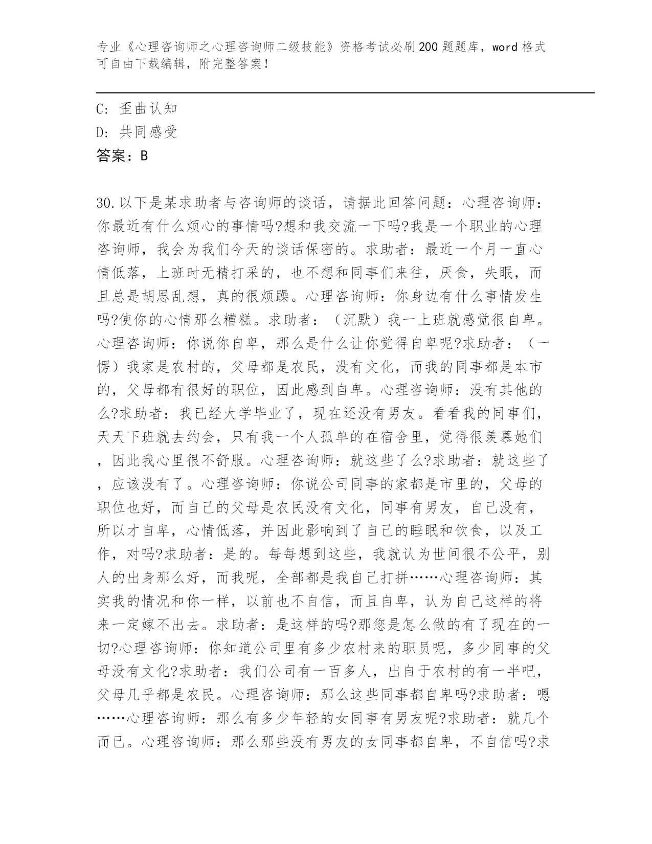 河南省太康县整理《心理咨询师之心理咨询师二级技能》资格考试必刷200题大全【基础题】