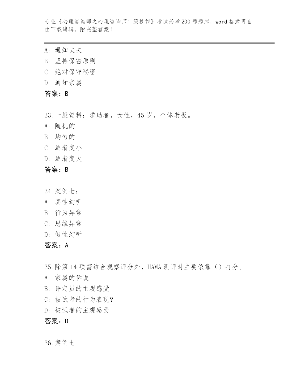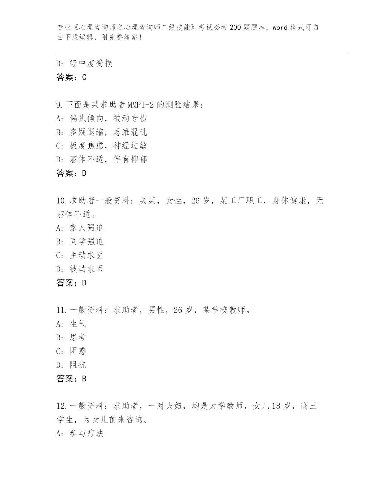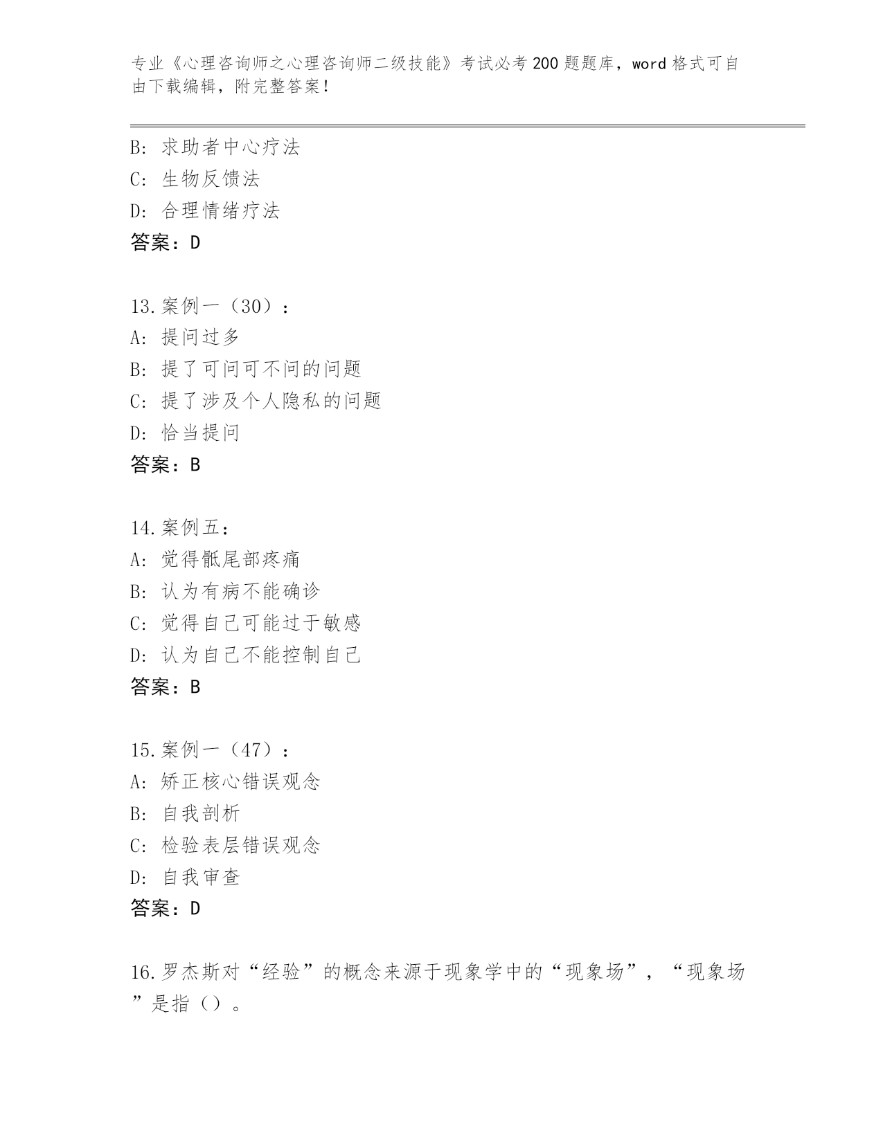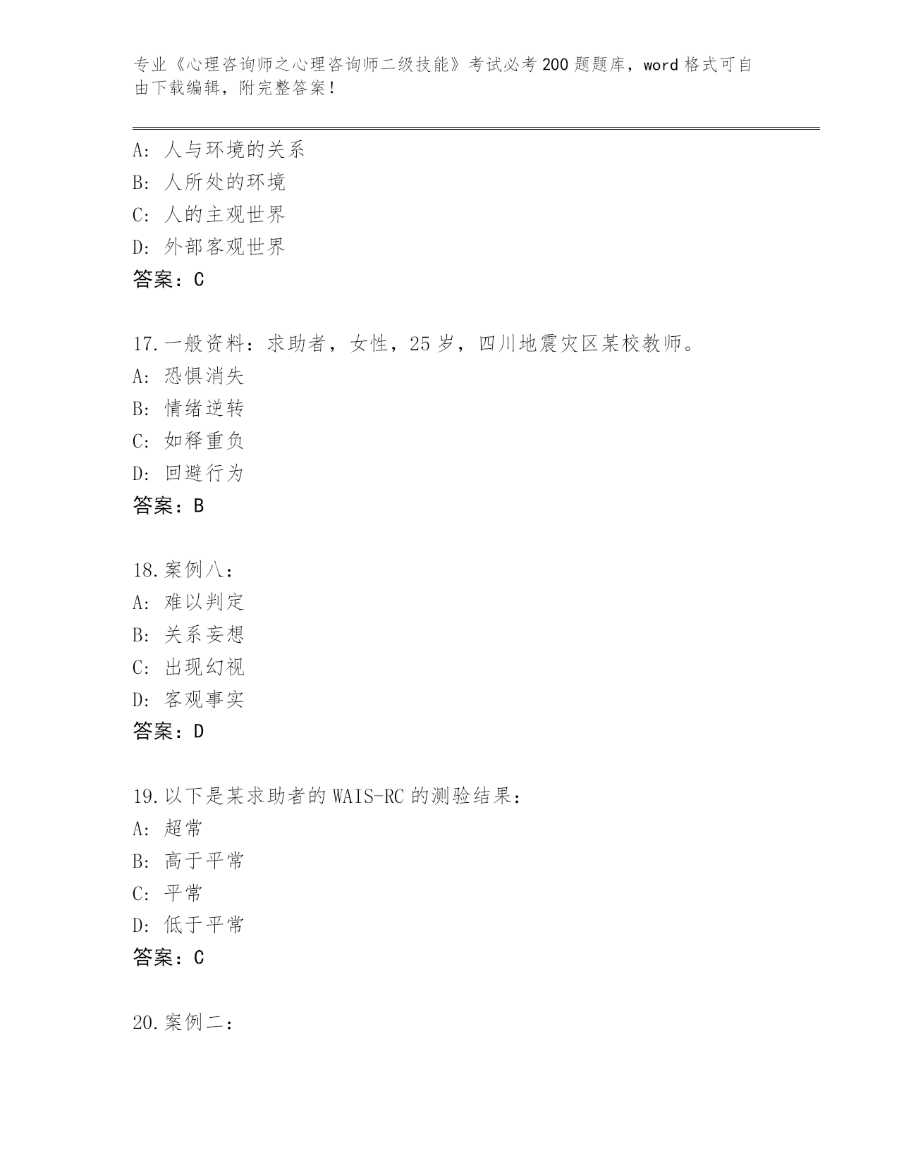 北京市密云区《心理咨询师之心理咨询师二级技能》考试必考200题附参考答案(突破训练)