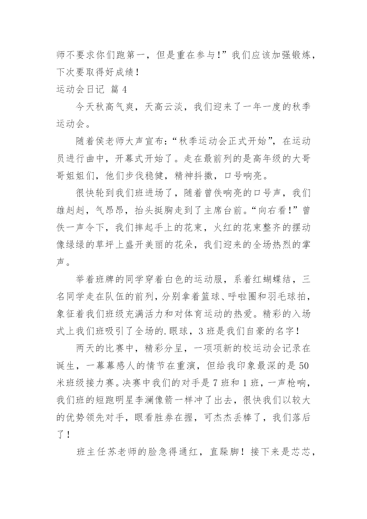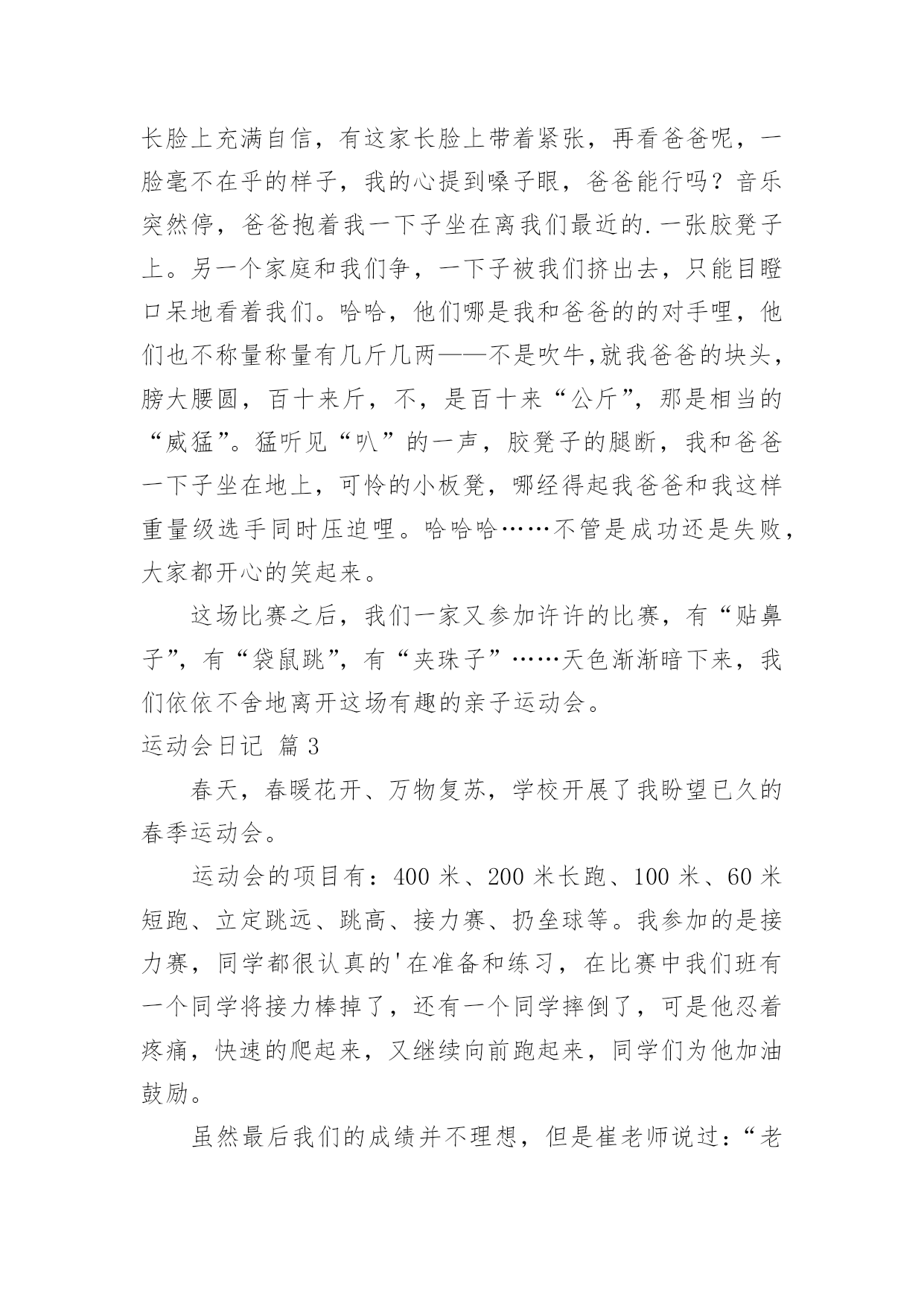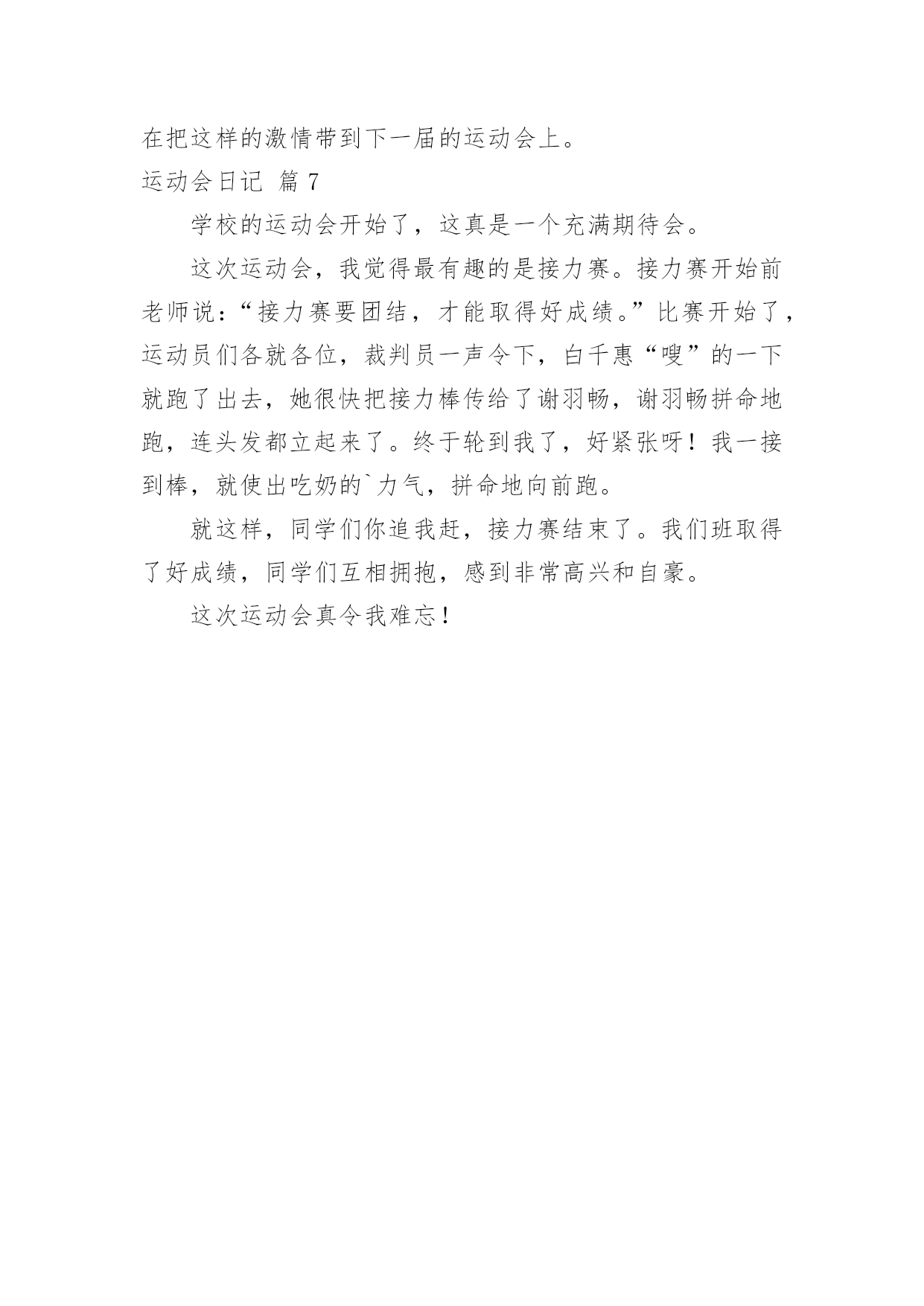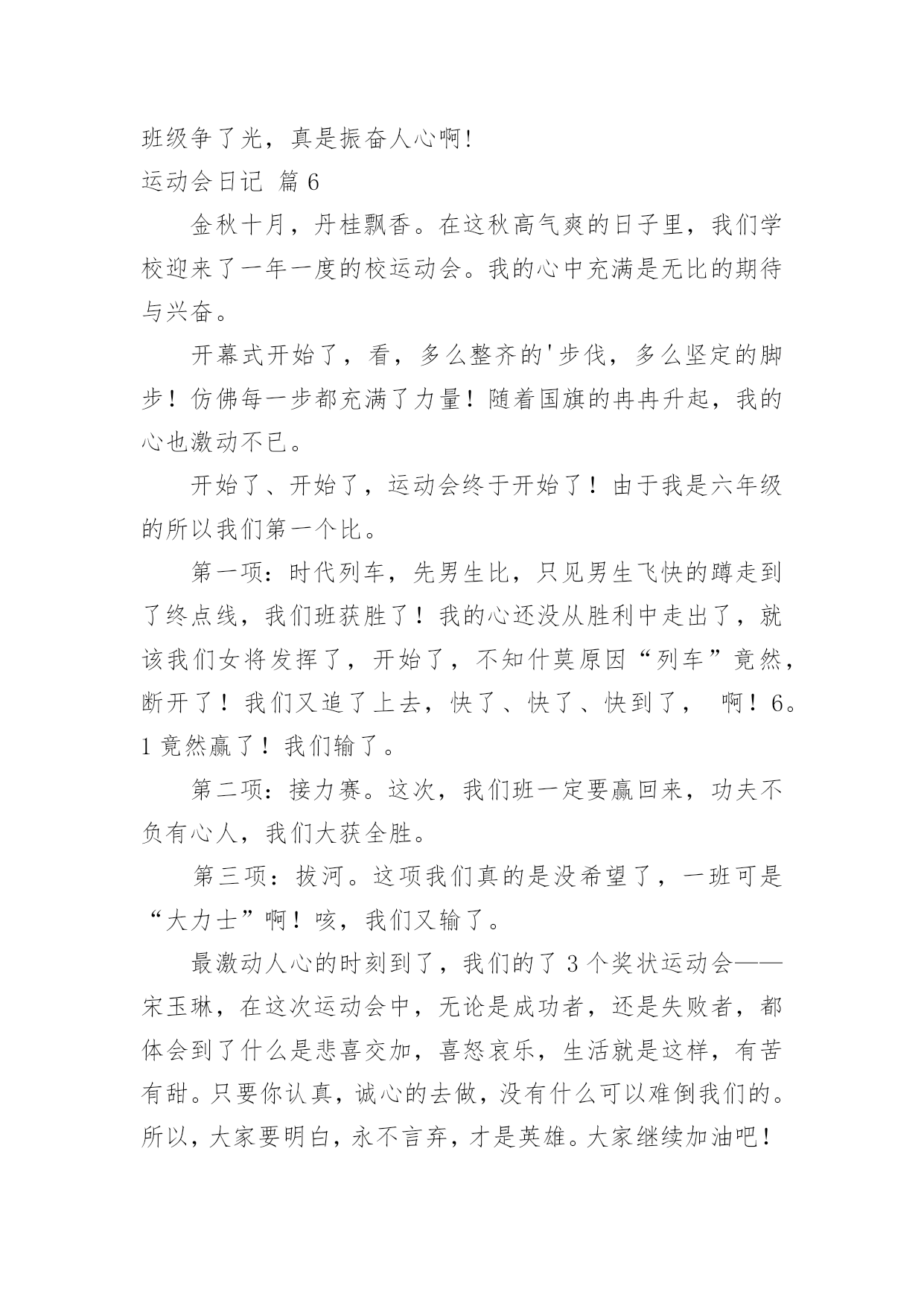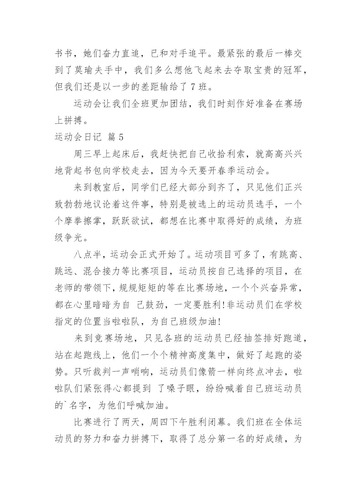 运动会日记运动会日记(大全7篇)即将要到一天的结尾了,相信你一定有很多值得分享的经验,让我们今天做个总结,写一篇日记吧。怎样写日记才更能吸引眼球呢?下面是小编帮大家整理的运动会日记7篇,仅供参考,大家一起来看看吧。运动会日记篇1在这秋高气爽、金桂飘香的季节,我校举办了第十五届运动会,这是我们进入洞山中学后的第一次运动会。为了这次运动会,我们班还专门捐钱给运动员们买水和巧克力,所有的`同学都积极响应,就连老师也不例外,还有人专门从家里带了一桶纯净水来。运动会日记篇2上周星期五,西城小学举办一次有趣的亲子运动会。亲子运动会就是和自己的爸爸妈妈一起参加的运动会,那种感觉——好玩极。爸爸妈妈真够意思,双双陪我一起参战。我们一走进西城小学的校园就听到孩子们的欢声笑语,西城小学人山人海,有跑的,有跳的,有胜利的欢呼,有失败的惋惜……我们来到一个比赛场所,这里的的比赛名字叫“抢凳子”,游戏规则是家长带着孩子抢凳子,音乐响起就是开始,音乐停下,抢到凳子近家庭获胜,没有抢到凳子的家庭就被淘汰。我和爸爸参加这次比赛,音乐响起来……我看到有的家长脸上充满自信,有这家长脸上带着紧张,再看爸爸呢,一脸毫不在乎的样子,我的心提到嗓子眼,爸爸能行吗?音乐突然停,爸爸抱着我一下子坐在离我们最近的.一张胶凳子上。另一个家庭和我们争,一下子被我们挤出去,只能目瞪口呆地看着我们。哈哈,他们哪是我和爸爸的的对手哩,他们也不称量称量有几斤几两——不是吹牛,就我爸爸的块头,膀大腰圆,百十来斤,不,是百十来“公斤”,那是相当的“威猛”。猛听见“叭”的一声,胶凳子的腿断,我和爸爸一下子坐在地上,可怜的小板凳,哪经得起我爸爸和我这样重量级选手同时压迫哩。哈哈哈……不管是成功还是失败,大家都开心的笑起来。这场比赛之后,我们一家又参加许许的比赛,有“贴鼻子”,有“袋鼠跳”,有“夹珠子”……天色渐渐暗下来,我们依依不舍地离开这场有趣的亲子运动会。运动会日记篇3春天,春暖花开、万物复苏,学校开展了我盼望已久的春季运动会。运动会的项目有:400米、200米长跑、100米、60米短跑、立定跳远、跳高、接力赛、扔垒球等。我参加的是接力赛,同学都很认真的'在准备和练习,在比赛中我们班有一个同学将接力棒掉了,还有一个同学摔倒了,可是他忍着疼痛,快速的爬起来,又继续向前跑起来,同学们为他加油鼓励。虽然最后我们的成绩并不理想,但是崔老师说过:“老师不要求你们跑第一,但是重在参与!”我们应该加强锻炼,下次要取得好成绩!运动会日记篇4今天秋高气爽,天高云淡,我们迎来了一年一度的秋季运动会。随着侯老师大声宣布:“秋季运动会正式开始”,在运动员进行曲中,开幕式开始了。走在最前列的是高年级的大哥哥姐姐们,他们步伐稳健,精神抖擞,口号响亮。很快轮到我们班进场了,随着曾佚响亮的口号声,我们雄赳赳,气昂昂,抬头挺胸走到了主席台前。“向右看!”曾佚一声令下,我们摔起手上的花束,火红的花束整齐的摆动像绿绿的草坪上盛开美丽的花朵,我们迎来的全场热烈的掌声。举着班牌的同学穿着白色的运动服,系着红蝴蝶结,三名同学走在队伍的前列,分别拿着篮球、呼啦圈和羽毛球拍,象征着我们班级充满活力和对体育运动的热爱。精彩的入场式上我们班吸引了全场的.眼球,3班是我们自豪的名字!两天的比赛中,精彩分呈,一项项新的校运动会记录在诞生,一幕幕感人的情节在重演,但给我印象最深的是50米班级接力赛。决赛中我们的对手是7班和1班,一声枪响,我们班的短跑明星李澜像箭一样冲了出去,很快我们以较大的优势领先对手,眼看胜券在握,可杰杰丢棒了,我们落后了!班主任苏老师的脸急得通红,直跺脚!接下来是芯芯,书书,她们奋力直追,已和对手追平。最紧张的最后一棒交到了莫瑜夫手中,我们多么想他飞起来去夺取宝贵的冠军,但我们还是以一步的差距输给了7班。运动会让我们全班更加团结,我们时刻作好准备在赛场上拼搏。运动会日记篇5周三早上起床后,我赶快把自己收拾利索,就高高兴兴地背起书包向学校走去,因为今天要开春季运动会。来到教室后,同学们已经大部分到齐了,只见他们正兴致勃勃地议论着这件事,特别是被选上的运动员选手,一个个摩拳擦掌,跃跃欲试,都想在比赛中取得好的成绩,为班级争光。八点半,运动会正式开始了。运动项目可多了,有跳高、跳远、混合接力等比赛项目,运动员按自己选择的项目,在老师的带领下,规规矩矩的等在比赛场地,一个个兴奋异常,都在心里暗暗为自己鼓劲,一定要胜利!非运动员们在学校指定的位置当啦啦队,为自己班级加油!来到竞赛场地,只见各班的运动员已经抽签排好跑道,站在起跑线上,他们一个个精神高度集中,做好了起跑的姿势。只听裁判一声哨响,运动员们像箭一样向终点冲去,啦啦队们紧张得心都提到了嗓子眼,纷纷喊着自己班运动员的`名字,为他们呼喊加油。比赛进行了两天,周四下午胜利闭幕。我们