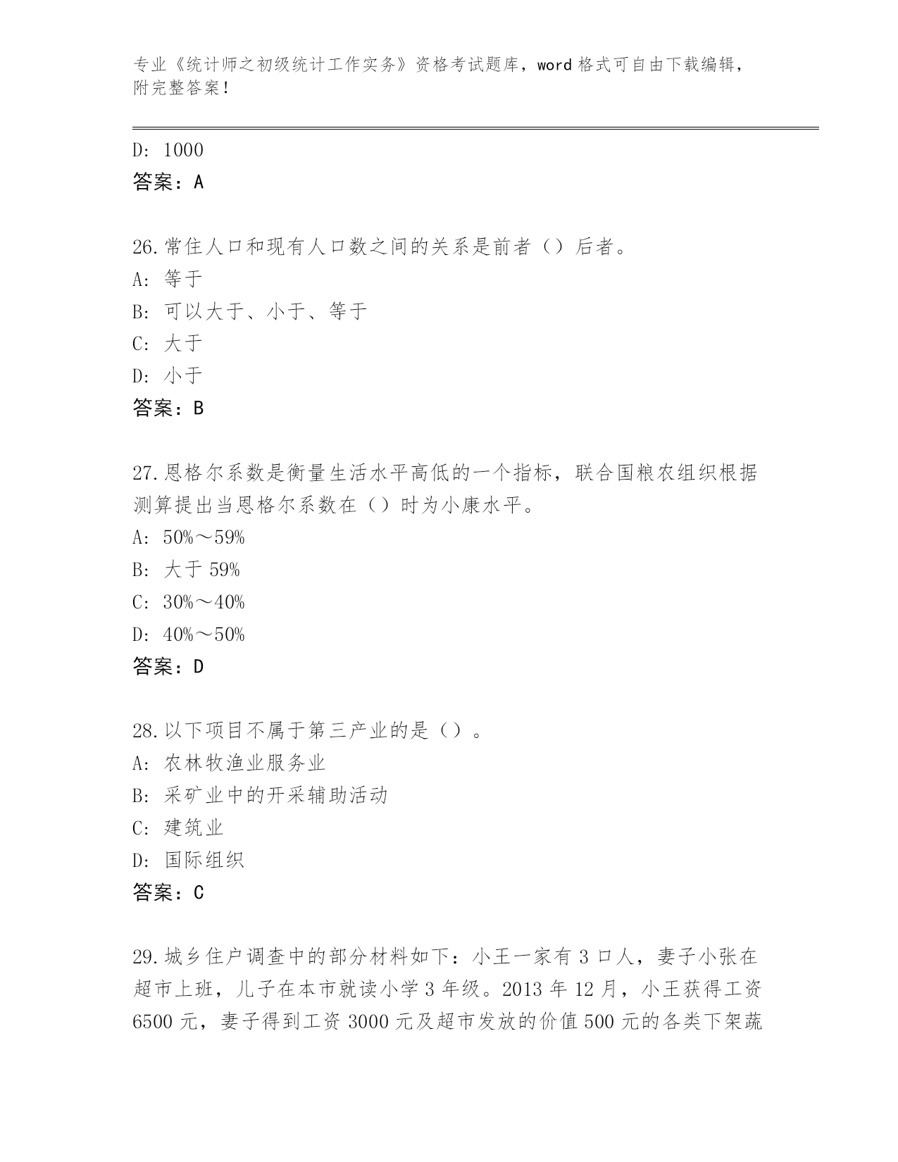河北省深泽县《统计师之初级统计工作实务》考试必刷200题王牌题库有解析答案