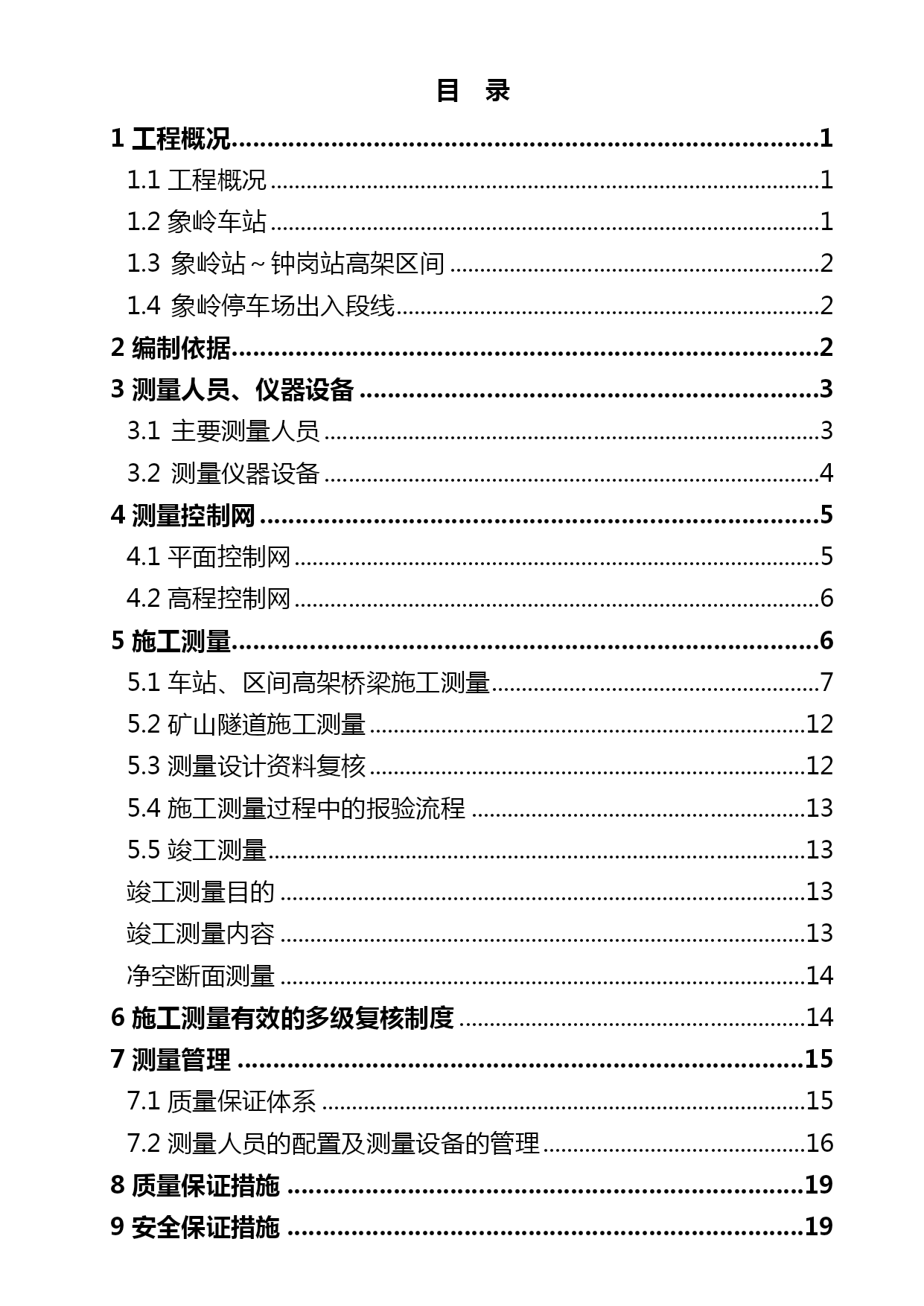 轨道交通工程测量方案最(完整版)资料(可以直接使用,可编辑优秀版资料,欢迎下载)docaseA.事件是一种预先定义好的特定的动作,由用户或系统激活第五章课后习题答案1、自主,通信协议,资源共享2.总线型结构、星型结构、环型结构、树型结构和混合型结构。8.文件的扩展名为.PRG的文件是______。delele19、在ISO/OSI参考模型中,网络层的主要功能是__B___。49.假定学号的第3、4位为专业代码。要计算各专业学生选修课程号为”101”课程的平均成绩,正确的SQL语句是________。settalkonD.循环体中的LOOP语句为跳出循环体中铁上海工程局广州地铁二十一号线轨道交通工程【土建19标】项目经理部测量方案编制:复核:审核:中铁上海工程局广州地铁二十一号线轨道交通工程【土建19标】项目经理部2021年12月19日目录TOC\o"1-3"\h\z\uHYPERLINK\l"_Toc384136875"1工程概况PAGEREF_Toc384136875\h1HYPERLINK\l"_Toc384136876"1.1工程概况PAGEREF_Toc384136876\h1HYPERLINK\l"_Toc384136877"1.2象岭车站PAGEREF_Toc384136877\h1HYPERLINK\l"_Toc384136878"1.3象岭站~钟岗站高架区间PAGEREF_Toc384136878\h2HYPERLINK\l"_Toc384136879"1.4象岭停车场出入段线PAGEREF_Toc384136879\h2HYPERLINK\l"_Toc384136880"2编制依据PAGEREF_Toc384136880\h2HYPERLINK\l"_Toc384136881"3测量人员、仪器设备PAGEREF_Toc384136881\h3HYPERLINK\l"_Toc384136882"3.1主要测量人员PAGEREF_Toc384136882\h3HYPERLINK\l"_Toc384136883"3.2测量仪器设备PAGEREF_Toc384136883\h4HYPERLINK\l"_Toc384136884"4测量控制网PAGEREF_Toc384136884\h5HYPERLINK\l"_Toc384136885"4.1平面控制网PAGEREF_Toc384136885\h5HYPERLINK\l"_Toc384136886"4.2高程控制网PAGEREF_Toc384136886\h6HYPERLINK\l"_Toc384136887"5施工测量PAGEREF_Toc384136887\h6HYPERLINK\l"_Toc384136888"5.1车站、区间高架桥梁施工测量PAGEREF_Toc384136888\h7HYPERLINK\l"_Toc384136889"5.2矿山隧道施工测量PAGEREF_Toc384136889\h12HYPERLINK\l"_Toc384136890"5.3测量设计资料复核PAGEREF_Toc384136890\h12HYPERLINK\l"_Toc384136891"5.4施工测量过程中的报验流程PAGEREF_Toc384136891\h13HYPERLINK\l"_Toc384136892"5.5竣工测量PAGEREF_Toc384136892\h13HYPERLINK\l"_Toc384136893"竣工测量目的PAGEREF_Toc384136893\h13HYPERLINK\l"_Toc384136894"竣工测量内容PAGEREF_Toc384136894\h13HYPERLINK\l"_Toc384136895"净空断面测量PAGEREF_Toc384136895\h14HYPERLINK\l"_Toc384136896"6施工测量有效的多级复核制度PAGEREF_Toc384136896\h14HYPERLINK\l"_Toc384136897"7测量管理PAGEREF_Toc384136897\h15HYPERLINK\l"_Toc384136898"7.1质量保证体系PAGEREF_Toc38413