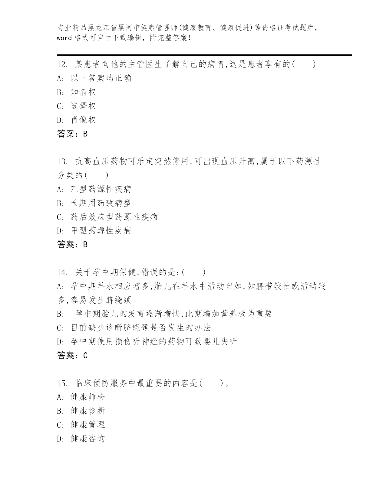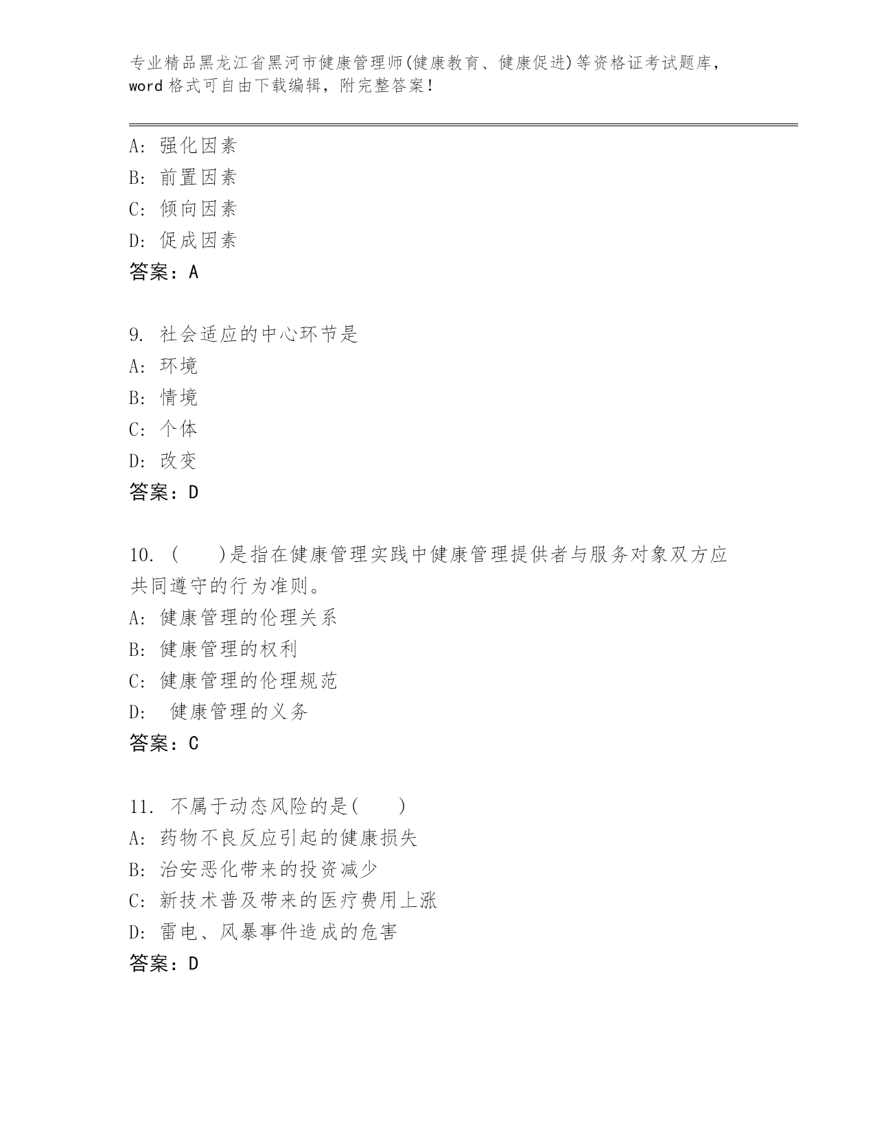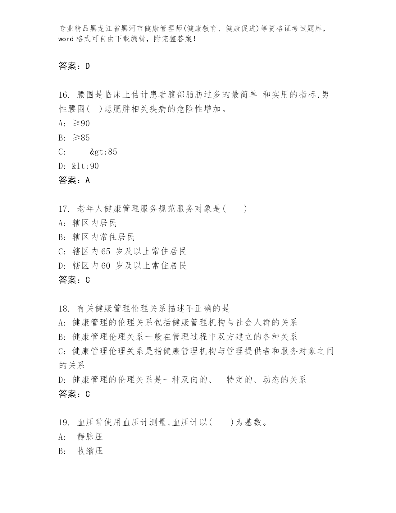 优选黑龙江省黑河市健康管理师(健康教育、健康促进)等资格证考试大全精选