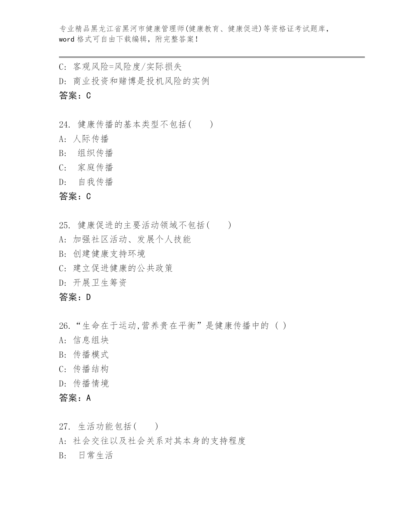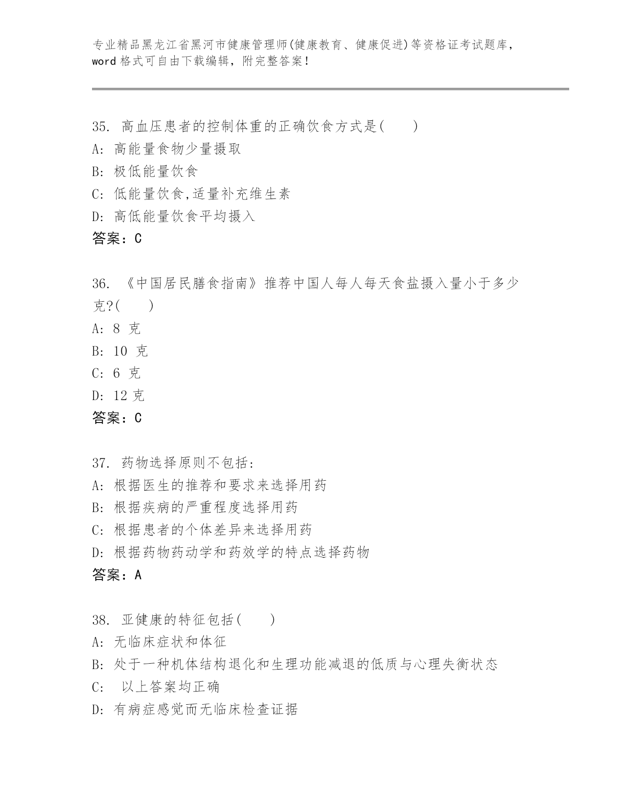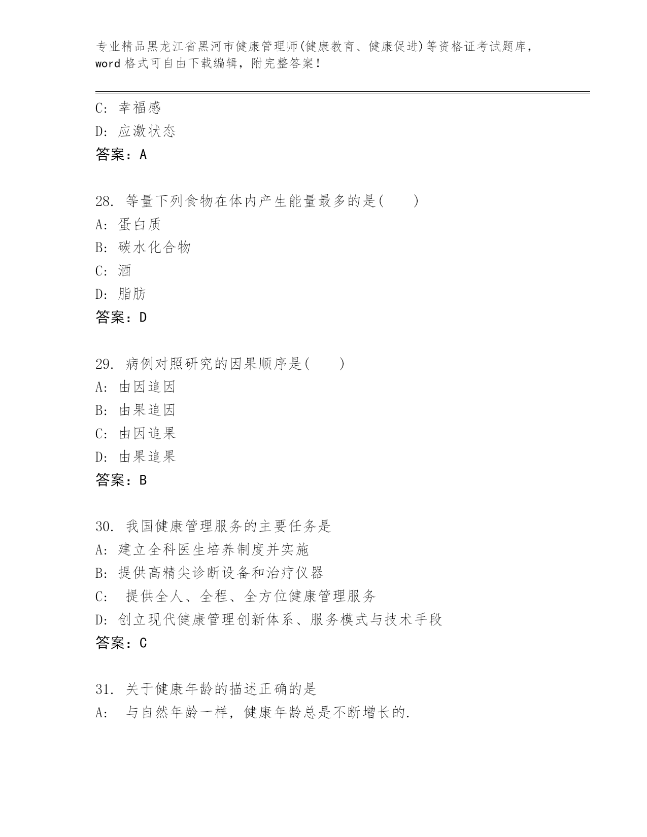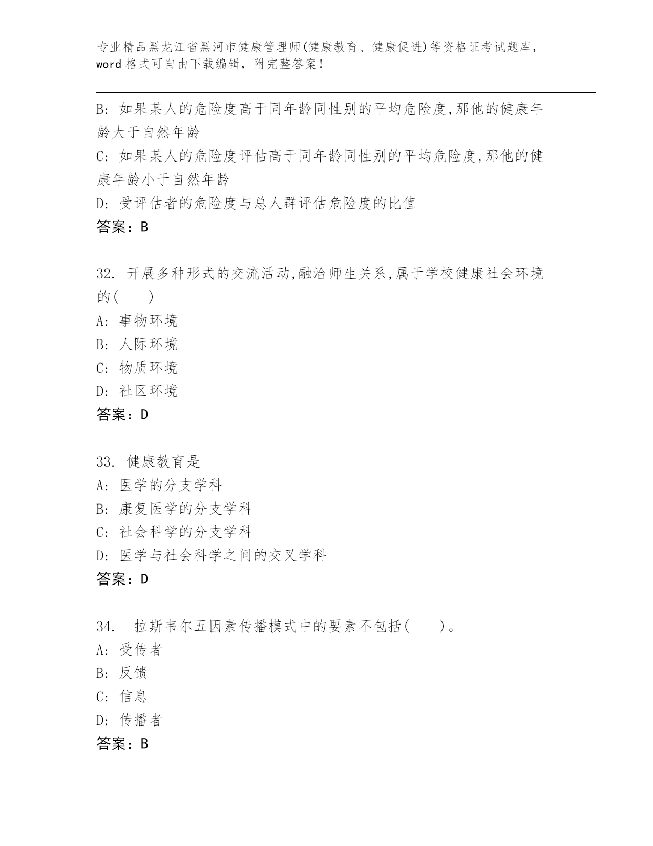 优选黑龙江省黑河市健康管理师(健康教育、健康促进)等资格证考试大全精选