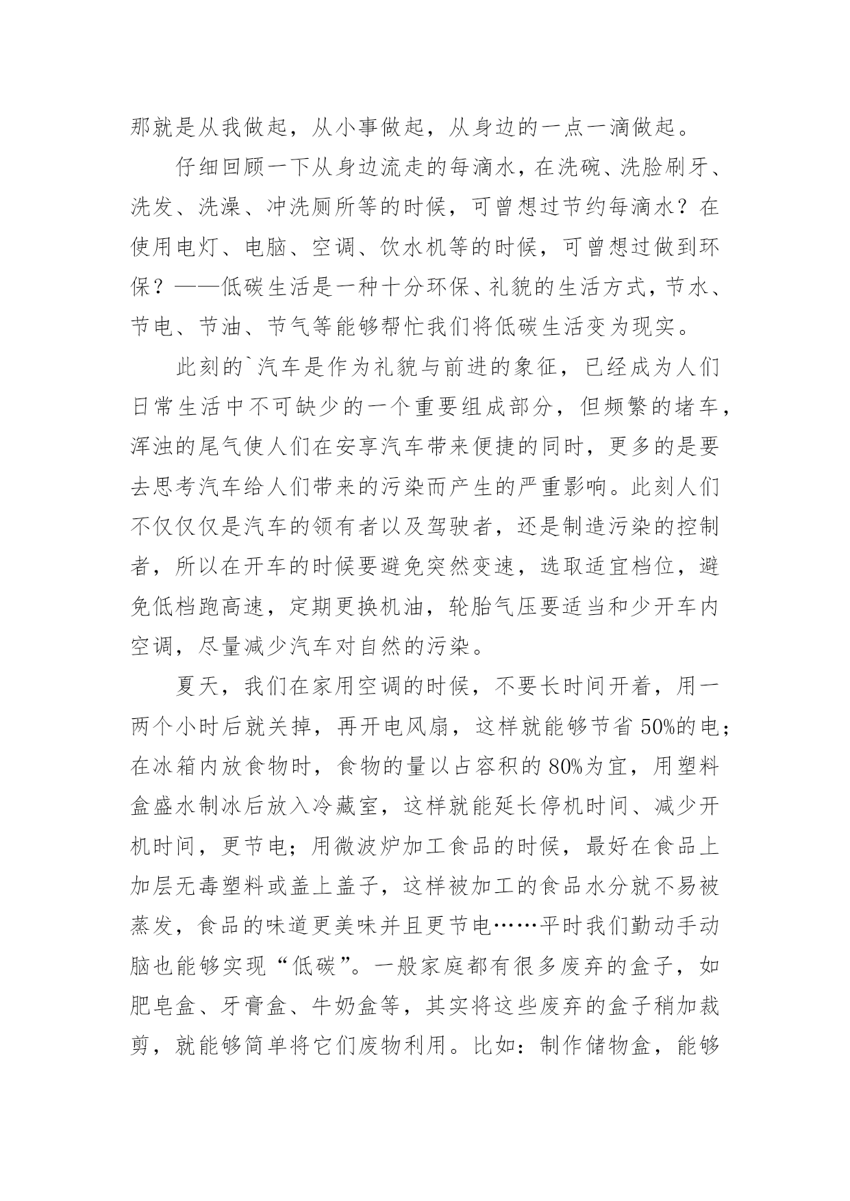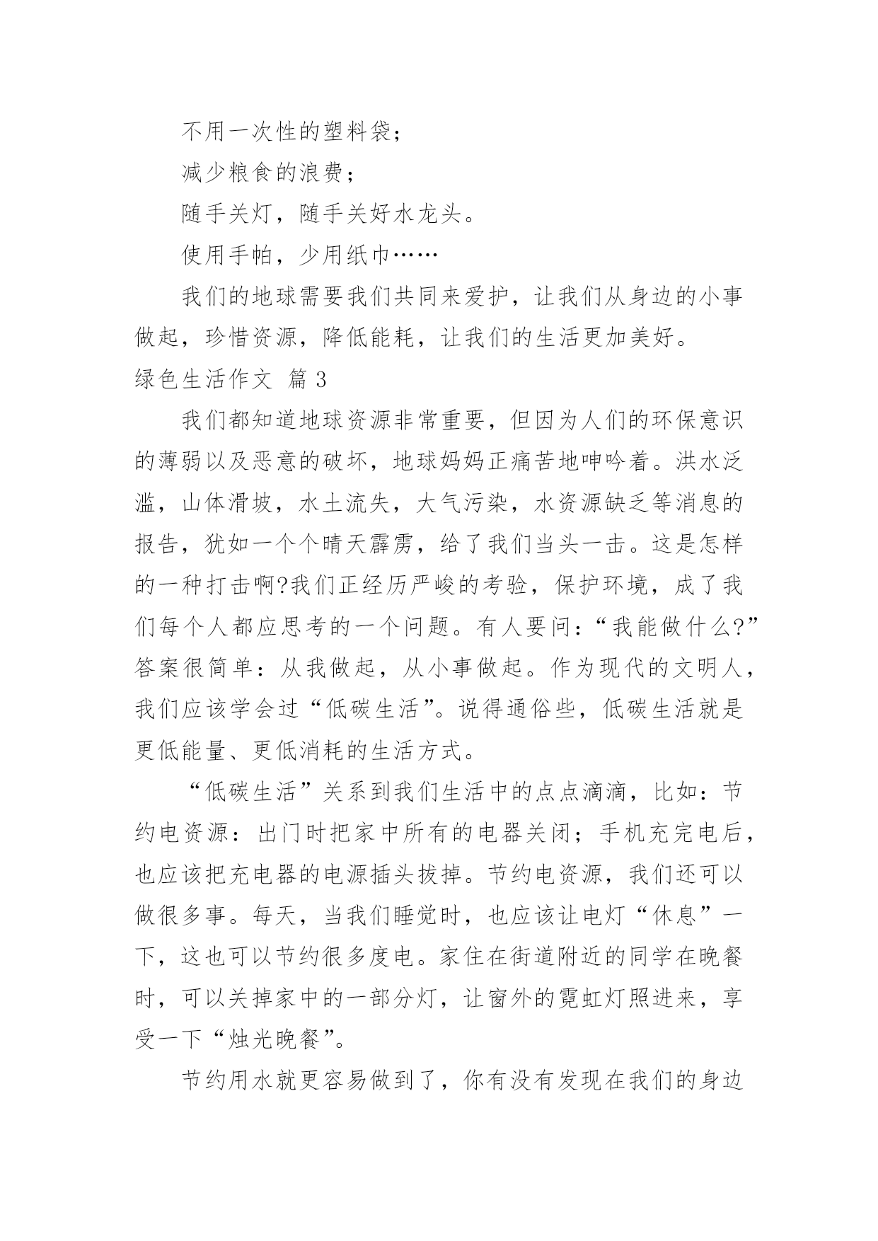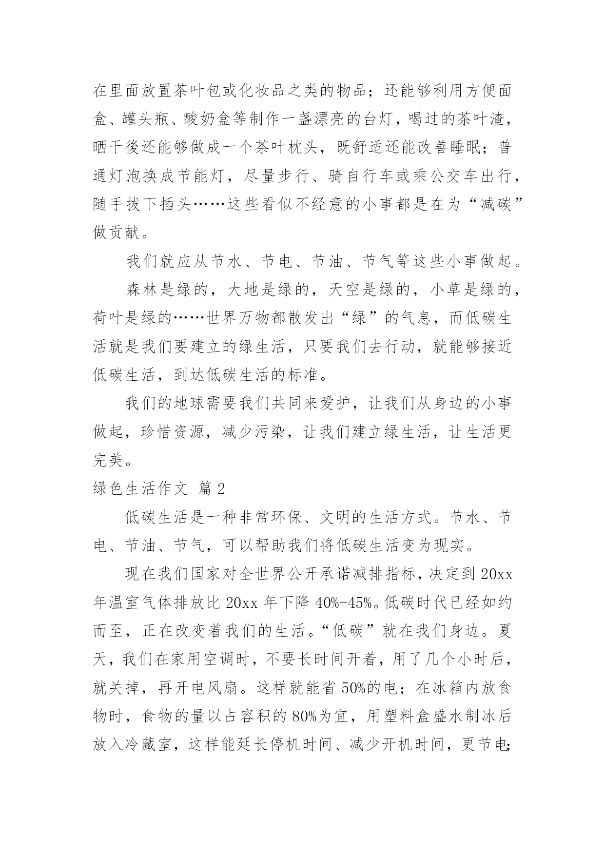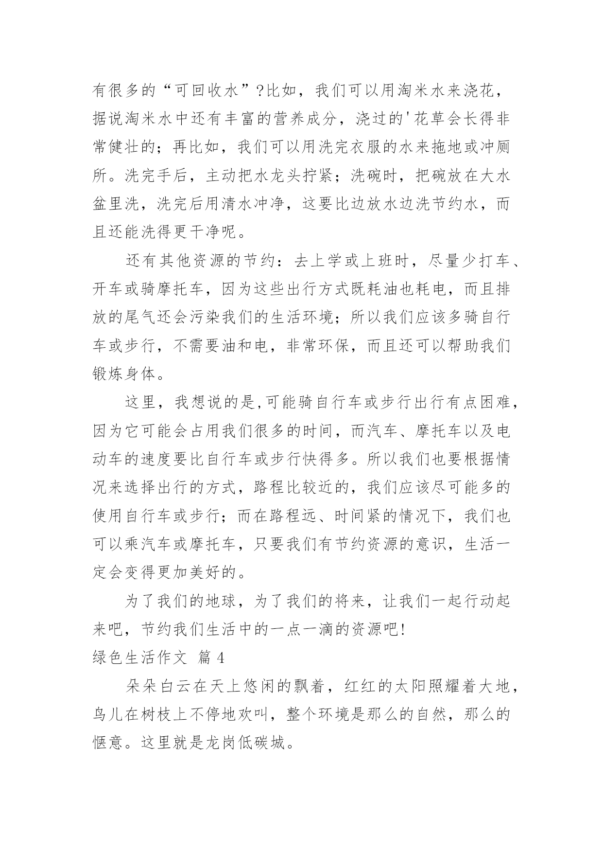 绿色生活作文实用的绿色生活作文四篇无论是身处学校还是步入社会,大家都写过作文吧,根据写作命题的特点,作文可以分为命题作文和非命题作文。还是对作文一筹莫展吗?下面是小编为大家整理的绿色生活作文4篇,仅供参考,欢迎大家阅读。绿色生活作文篇1曾几何时,“明月松间照,清泉石上流”的诗句常在耳边回响;曾几何时,“一粥一饭,当思来之不易,一丝一缕,恒念物力维艰”的古训仍在心头萦绕;曾几何时,伟大诗人乔治。铂金斯里掷地有声的一句话“樵夫,别砍那棵树”指引着几代人参与环保、美化环境;曾几何时,人们乱砍乱伐,使大自然的生态平衡遭到了破坏,沙丘吞噬了万顷良田,洪水毁了秀丽可爱的家园。大自然的报复使人类尴尬哑然。没有自然,便没有人类,这是世界一大朴素的道理。“一味地掠夺自然、征服自然,只会破坏生态系统,咎由自取,使人类濒于困境。”这句话说得没错,人不给自然面子,自然当然也不会给人类后路,98洪水,20xx年的沙尘暴,512汶川大地震,414玉树大地震……其实,这是大自然对人类发出的警示。曾几何时,人们乱捕乱杀,使人类的朋友惨遭涂炭,“千山鸟飞绝,万径人踪灭”这是对捕杀动物后的最真实的写照。人类此刻正面临着严峻的考验“保护环境”,每个人都在思考这个问题,有人问“我能做什么?”答案很简单,那就是从我做起,从小事做起,从身边的一点一滴做起。仔细回顾一下从身边流走的每滴水,在洗碗、洗脸刷牙、洗发、洗澡、冲洗厕所等的时候,可曾想过节约每滴水?在使用电灯、电脑、空调、饮水机等的时候,可曾想过做到环保?——低碳生活是一种十分环保、礼貌的生活方式,节水、节电、节油、节气等能够帮忙我们将低碳生活变为现实。此刻的`汽车是作为礼貌与前进的象征,已经成为人们日常生活中不可缺少的一个重要组成部分,但频繁的堵车,浑浊的尾气使人们在安享汽车带来便捷的同时,更多的是要去思考汽车给人们带来的污染而产生的严重影响。此刻人们不仅仅仅是汽车的领有者以及驾驶者,还是制造污染的控制者,所以在开车的时候要避免突然变速,选取适宜档位,避免低档跑高速,定期更换机油,轮胎气压要适当和少开车内空调,尽量减少汽车对自然的污染。夏天,我们在家用空调的时候,不要长时间开着,用一两个小时后就关掉,再开电风扇,这样就能够节省50%的电;在冰箱内放食物时,食物的量以占容积的80%为宜,用塑料盒盛水制冰后放入冷藏室,这样就能延长停机时间、减少开机时间,更节电;用微波炉加工食品的时候,最好在食品上加层无毒塑料或盖上盖子,这样被加工的食品水分就不易被蒸发,食品的味道更美味并且更节电……平时我们勤动手动脑也能够实现“低碳”。一般家庭都有很多废弃的盒子,如肥皂盒、牙膏盒、牛奶盒等,其实将这些废弃的盒子稍加裁剪,就能够简单将它们废物利用。比如:制作储物盒,能够在里面放置茶叶包或化妆品之类的物品;还能够利用方便面盒、罐头瓶、酸奶盒等制作一盏漂亮的台灯,喝过的茶叶渣,晒干後还能够做成一个茶叶枕头,既舒适还能改善睡眠;普通灯泡换成节能灯,尽量步行、骑自行车或乘公交车出行,随手拔下插头……这些看似不经意的小事都是在为“减碳”做贡献。我们就应从节水、节电、节油、节气等这些小事做起。森林是绿的,大地是绿的,天空是绿的,小草是绿的,荷叶是绿的……世界万物都散发出“绿”的气息,而低碳生活就是我们要建立的绿生活,只要我们去行动,就能够接近低碳生活,到达低碳生活的标准。我们的地球需要我们共同来爱护,让我们从身边的小事做起,珍惜资源,减少污染,让我们建立绿生活,让生活更完美。绿色生活作文篇2低碳生活是一种非常环保、文明的生活方式。节水、节电、节油、节气,可以帮助我们将低碳生活变为现实。现在我们国家对全世界公开承诺减排指标,决定到20xx年温室气体排放比20xx年下降40%-45%。低碳时代已经如约而至,正在改变着我们的生活。“低碳”就在我们身边。夏天,我们在家用空调时,不要长时间开着,用了几个小时后,就关掉,再开电风扇。这样就能省50%的电;在冰箱内放食物时,食物的量以占容积的80%为宜,用塑料盒盛水制冰后放入冷藏室,这样能延长停机时间、减少开机时间,更节电;用微波炉加工食品时,最好在食品上加层无毒塑料膜或盖上盖子,这样被加工食品水分不易蒸发,食品味道好又省电;开车时尽量避免突然变速,选择合适档位,避免低档跑高速,定期更换机油,轮胎气压要适当和少开空调。短时间不用电脑时,启用“睡眠”模式,能耗可下降到50%以下;关掉不用的程序和音箱、打印机等外围设备;少让硬盘、软盘、光盘同时工作;适当降低显示器的亮度。平时我们勤动手动脑,也可以实现“低碳”。一般家庭都有很多废弃的盒子,如肥皂盒、牙膏盒、奶盒等,其实稍加裁剪,就可以轻松将它们废物利用,比如制作成储物盒,可以在里面放茶叶包、化妆品之类的物品;还可以利用方便面盒、罐头瓶、酸奶瓶制作一盏漂亮的'台灯