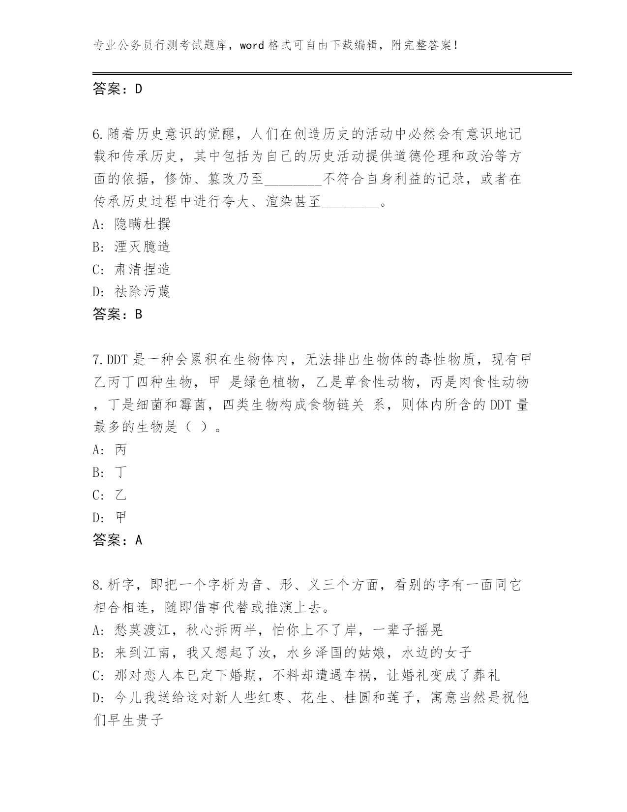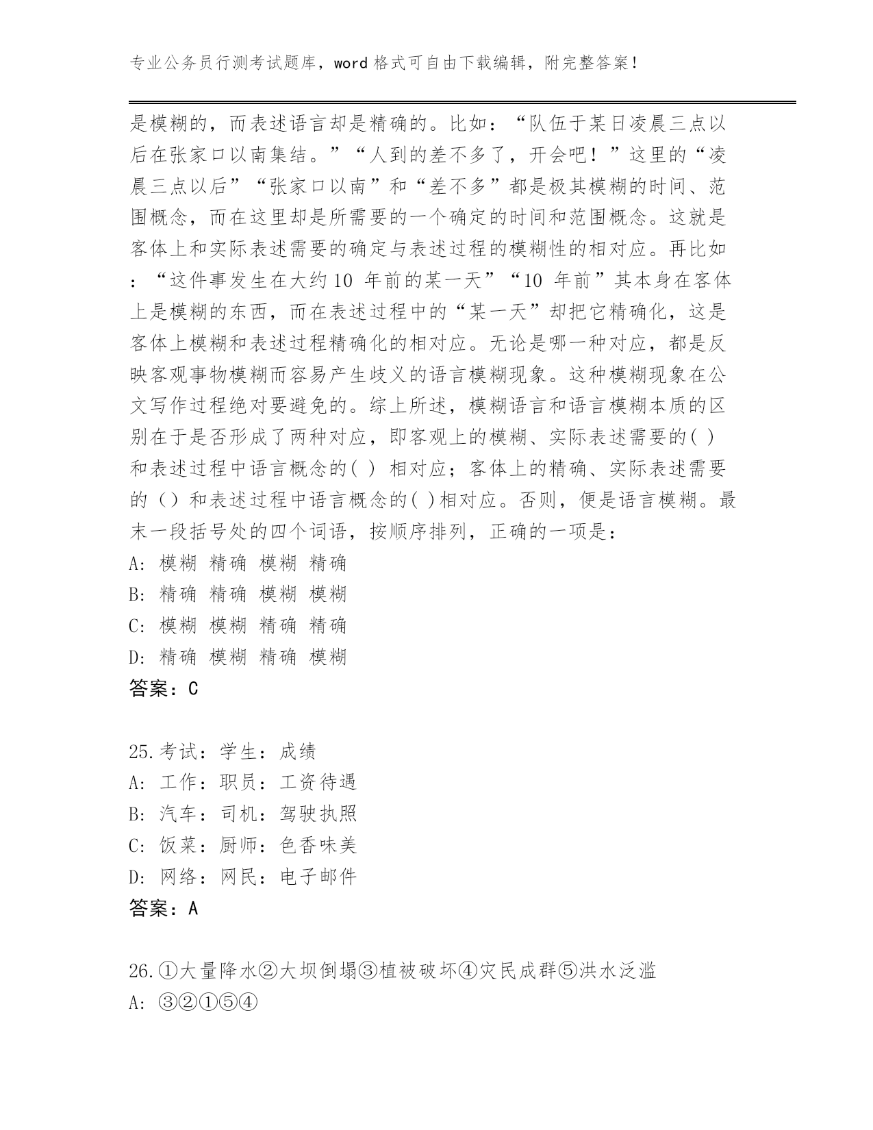 完整版山西省永和县公务员行测考试大全及参考答案(考试直接用)