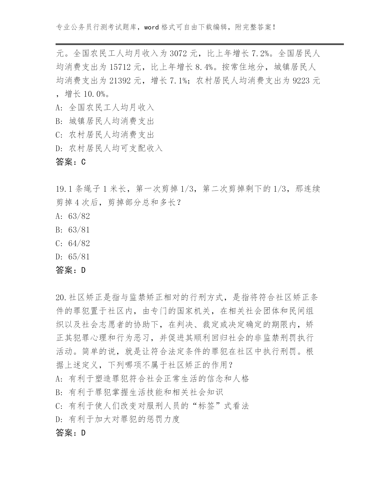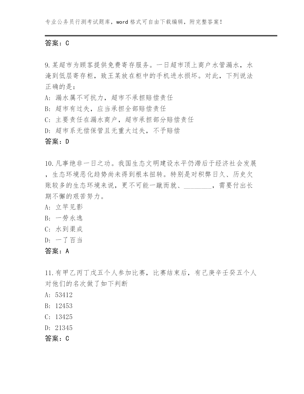完整版山西省永和县公务员行测考试大全及参考答案(考试直接用).docx