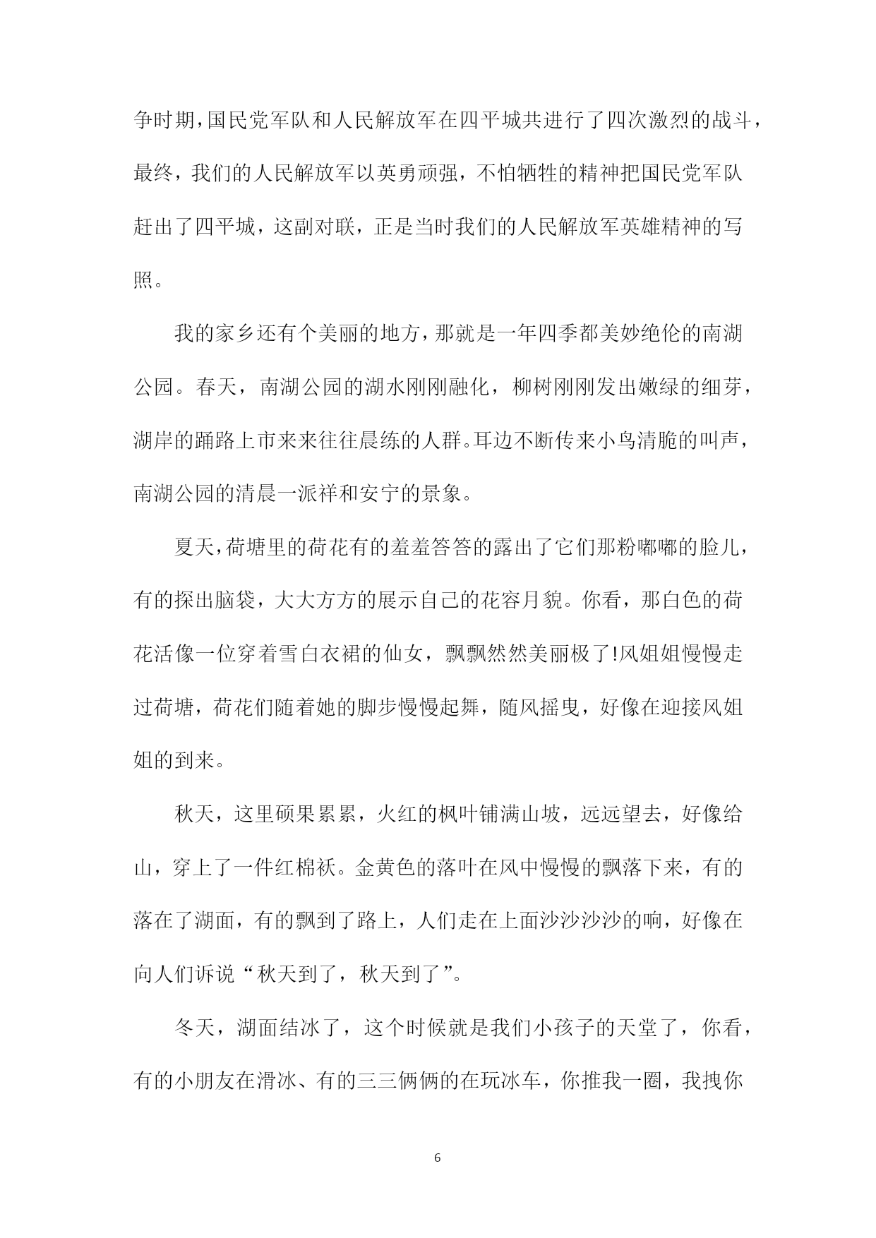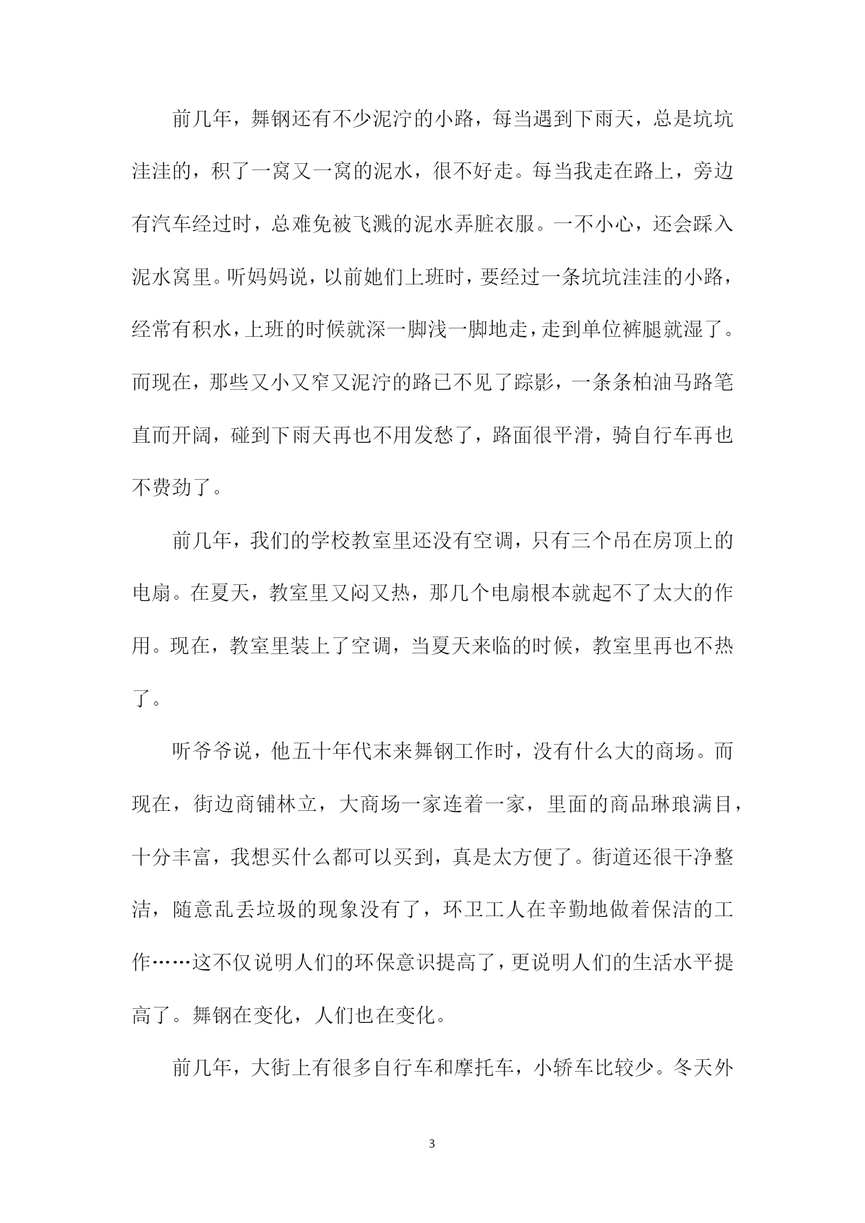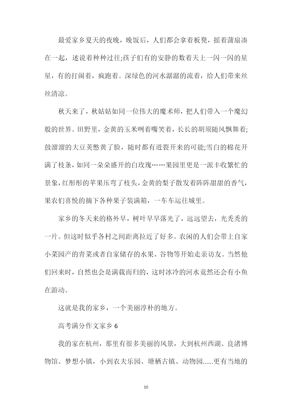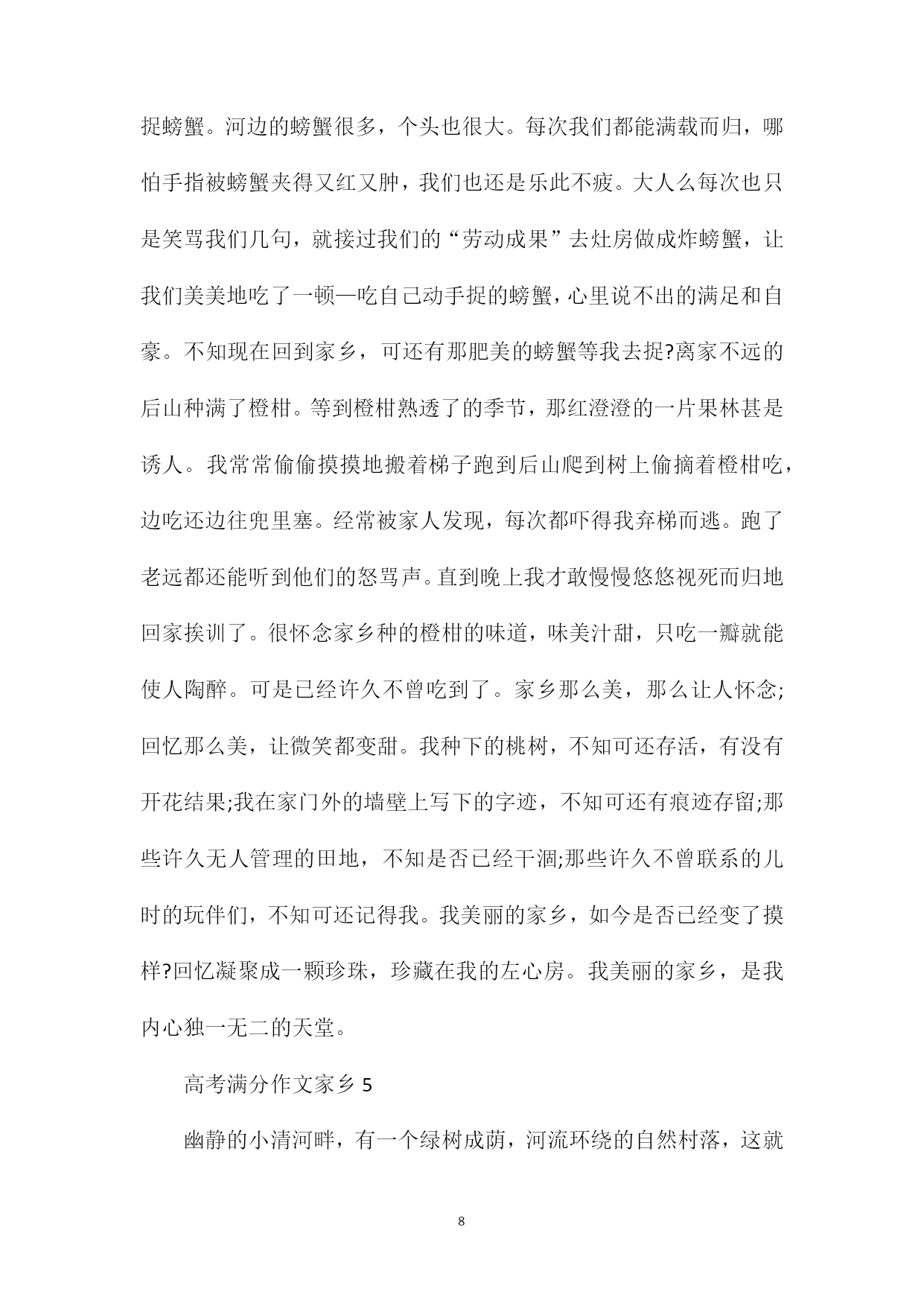 PAGEPAGE19高考满分作文家乡家乡,是在外漂泊的游子停靠的港弯,游子心中永远的栖息地。那么关于高考家乡作文,我们要怎么写呢?下面xx给大家分享高考满分作文家乡的内容,希望能够帮助大家,欢迎阅读!高考满分作文家乡1我的家乡汕尾,是一座美丽的海滨城市。每年我跟爷爷奶奶至少要回汕尾一次,每次我都和大人一起去观看大海。气势磅礴的大海让我深深迷恋和向往。我们回家乡,多数住在蓝岛假日酒店。我们住的地方离大海很近,约300多米。站在海岸上,我们看到数不清的渔船停靠在海港码头,我们听到海水的翻滚声,海风的吹拂声吹到我们的脸上,感到很舒服。我们还在码头乘船过渡到对面新港,新港山旁边伸出一条“沙舌”,约两公里长,它把汕尾渔港隔开分成两部分。“沙舌”坝内风平浪静,方便渔船停靠,尤其刮起台风,所有船只都来“避风港”避风;“沙舌”坝外是波浪滚滚的大海,海水特别清、特别蓝。沙滩上的海沙特别白、特别细。“沙舌”坝种上了树,保护汕尾的生态环境。站在“沙舌”坝上,举目远眺,浩瀚的大海铺展在远方,它与天相接,它与天相连。时而翻滚,时而平静的海面在阳光照耀下,闪烁着无数耀眼的金光,那一道道金光犹如一颗颗明亮的星星在闪动。海面上现代化的轮船、游船穿梭往来,热闹非凡!我们家乡面对太平洋,周边都是大海。我们并不满足观看汕尾海港,我们还专门乘车到汕尾市红海湾观看遮浪海,这里的海更美、更刺激!我们到达遮浪海,奶奶给我们看行李,我跟爷爷下海。我们到了沙滩,马上卷起裤子。遮浪海有点神奇,东边海平浪静,几乎看不到海浪花,而西边海却是波涛汹涌。翻滚的波浪约有一层楼那么高,像老虎一样向我们扑过来,来不及跑,海浪就冲到我们身边,把我们卷起的裤子都装满了海水。不到两秒钟,海水就退回去了,不到两秒钟,海水又涌上来了,日夜不断地进行着。我们看到游客玩得很开心,有的抱着救生圈,有的两手抓住木板随海浪翻滚,与海浪搏斗。在沙滩上,我们还捡贝壳,我捡到一个小海螺,它是淡黄色、螺旋形,我把它带回家。玩了一个多小时,爷爷奶奶催促我乘车回住地,我只好依依不舍离开。大海,你在我心中永远是那么伟大,那么神奇!我爱美丽的大海,我更爱我的家乡。高考满分作文家乡2我的家乡在舞钢,她是一个美丽的城市。如果你是在几年前曾经来过,而现在再次踏上这片土地,你会发现,她又发生了很大的变化,变得更加美丽,更加生机勃勃了。前几年,舞钢还有不少泥泞的小路,每当遇到下雨天,总是坑坑洼洼的,积了一窝又一窝的泥水,很不好走。每当我走在路上,旁边有汽车经过时,总难免被飞溅的泥水弄脏衣服。一不小心,还会踩入泥水窝里。听妈妈说,以前她们上班时,要经过一条坑坑洼洼的小路,经常有积水,上班的时候就深一脚浅一脚地走,走到单位裤腿就湿了。而现在,那些又小又窄又泥泞的路已不见了踪影,一条条柏油马路笔直而开阔,碰到下雨天再也不用发愁了,路面很平滑,骑自行车再也不费劲了。前几年,我们的学校教室里还没有空调,只有三个吊在房顶上的电扇。在夏天,教室里又闷又热,那几个电扇根本就起不了太大的作用。现在,教室里装上了空调,当夏天来临的时候,教室里再也不热了。听爷爷说,他五十年代末来舞钢工作时,没有什么大的商场。而现在,街边商铺林立,大商场一家连着一家,里面的商品琳琅满目,十分丰富,我想买什么都可以买到,真是太方便了。街道还很干净整洁,随意乱丢垃圾的现象没有了,环卫工人在辛勤地做着保洁的工作……这不仅说明人们的环保意识提高了,更说明人们的生活水平提高了。舞钢在变化,人们也在变化。前几年,大街上有很多自行车和摩托车,小轿车比较少。冬天外出,骑着摩托车很冷,很不方便。而这几年,街上的小轿车多起来了,去哪里都可以乘坐出租车,私人小轿车也多了,出行更方便了,每到假期,还可以到更远的地方旅游。前几年,舞钢几乎没有开发什么景点,有外地的朋友来都没有地方可以游玩。但这几年舞钢的加快发展,旅游景点多起来了——如石漫滩水库、灯台架、二郎山、九头崖……这些景点又随着时间的变化而变化,就说二郎山吧,几年前那里还是一个荒无人烟的“景区”,但经过这几年的建设,它变成了一个国家3A级旅游景区,景区占地面积12平方公里,自然人文景观42处。有雄伟壮观的观景台,高耸如云的玉皇金殿,琼浆漫溢的龙王壁瀑布,幽雅静谧的忘忧谷及娱乐休闲的情人岛等。每当槐花开放,二郎山上还有一个“槐花节”,让游人在休闲娱乐的同时,又尝到到了舞钢的特色小吃。我的家乡在无时无刻地变化着,说也说不完……高考满分作文家乡3我的家乡坐落在吉林省的东南部,是吉林省以及整个东北三省的交通要道,这里没有桂林甲天下的山水,没有拉萨澄净的天空,没有北京大都市的#39;繁华,更没有烟雨江南丰饶的物产,但它却有朴素的黑土地,和被战火洗礼过的英雄记忆。猜到我的家乡是哪里么?对了,她就是