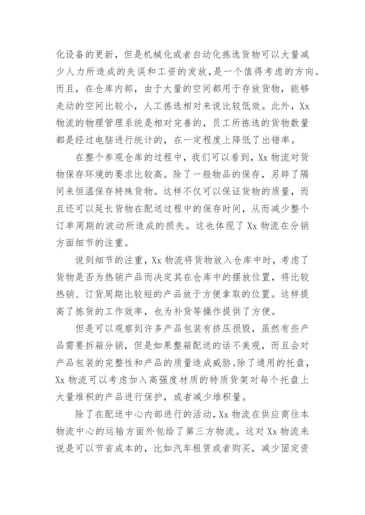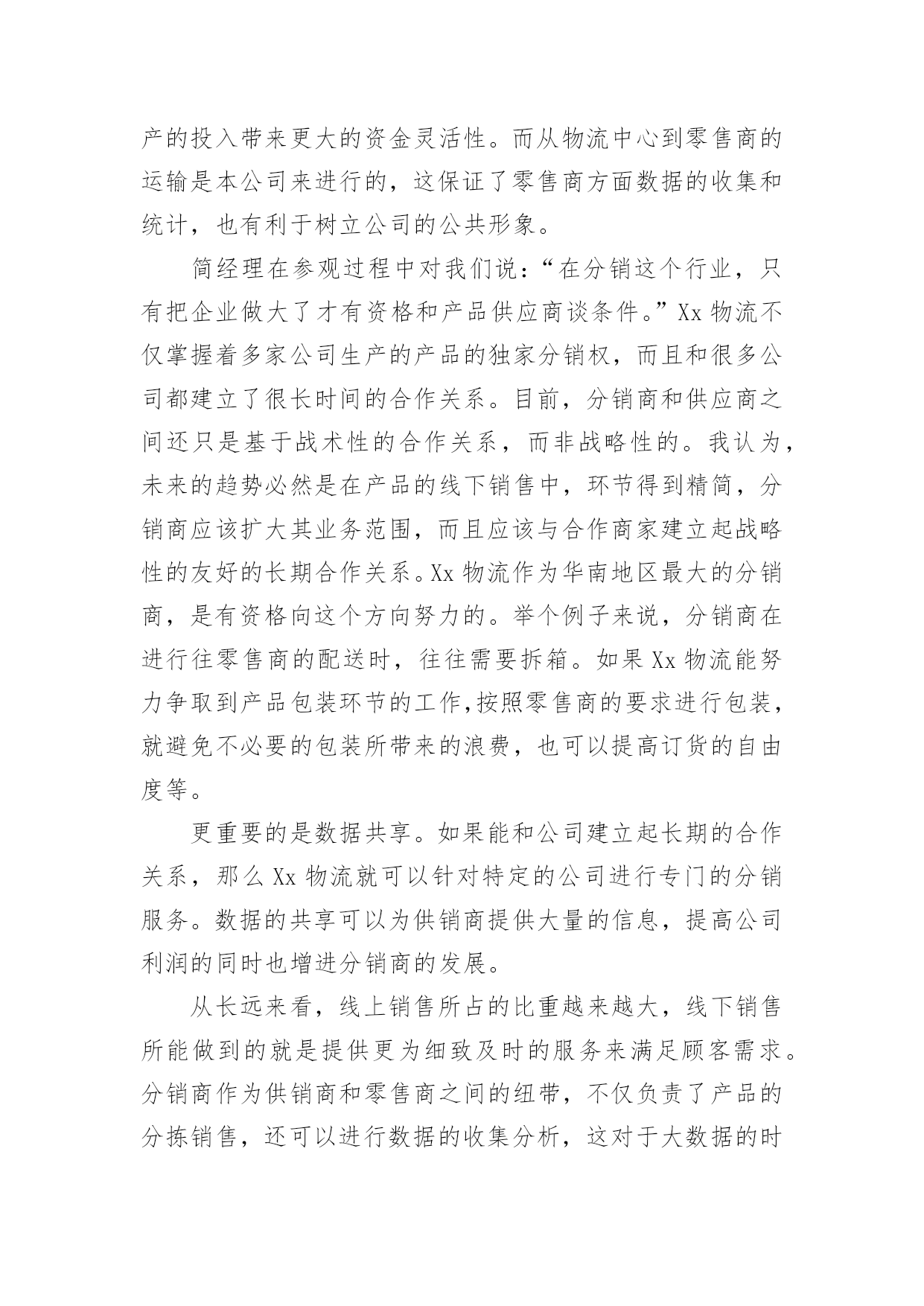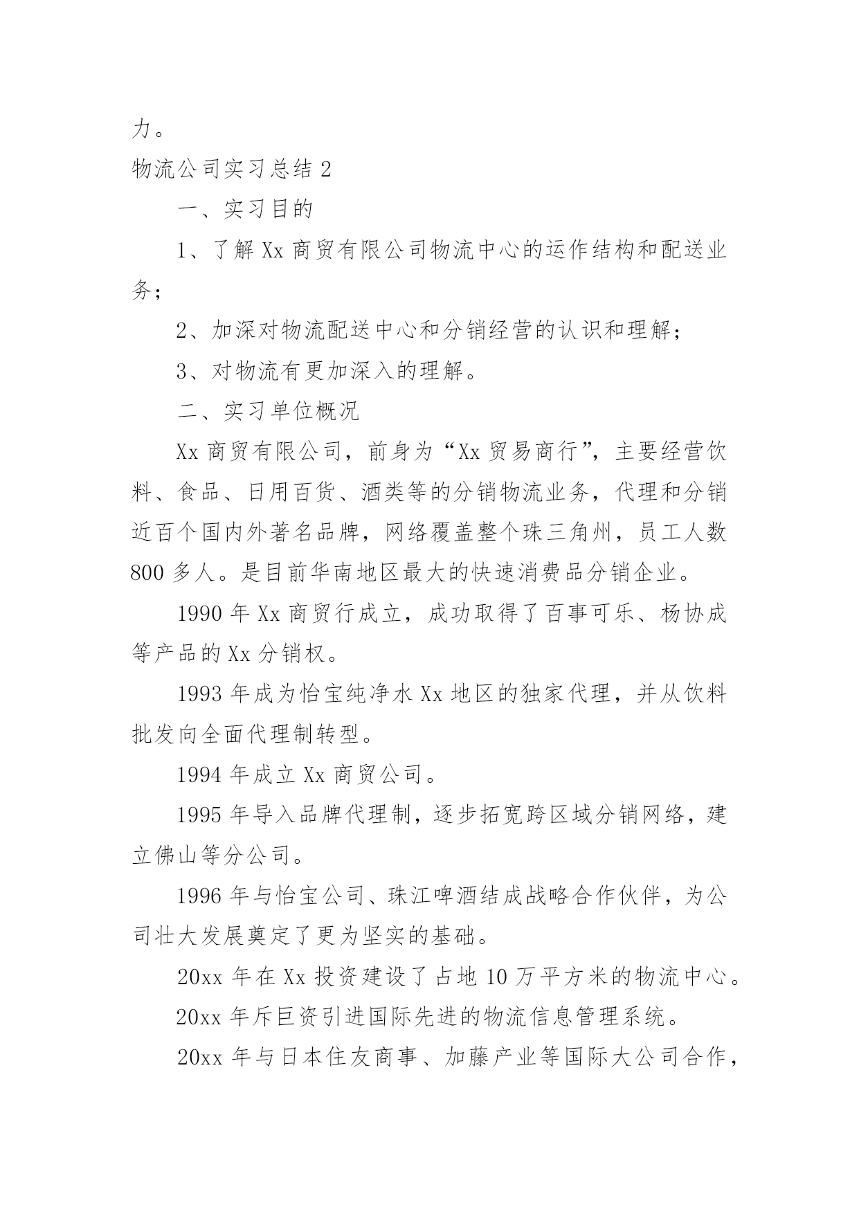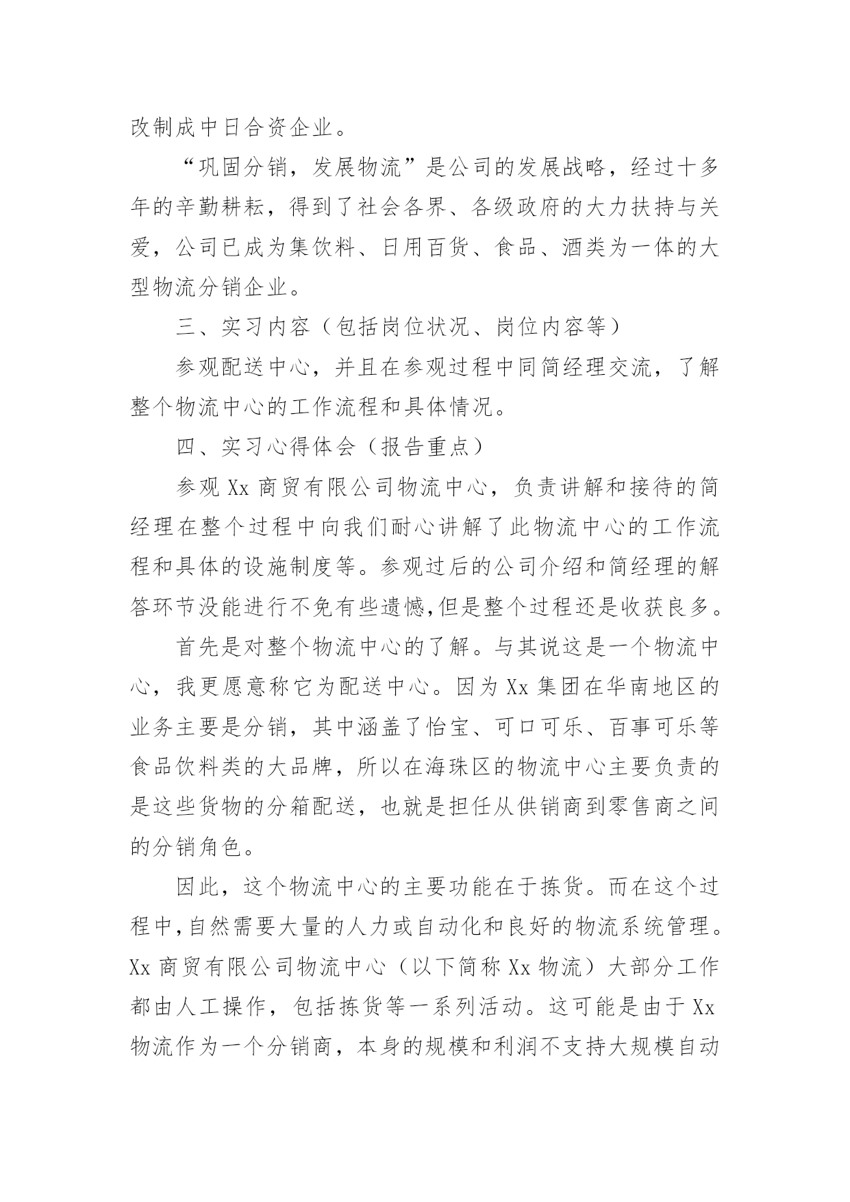 物流公司实习总结物流公司实习总结总结是事后对某一阶段的学习、工作或其完成情况加以回顾和分析的一种书面材料,它有助于我们寻找工作和事物发展的规律,从而掌握并运用这些规律,因此十分有必须要写一份总结哦。总结一般是怎么写的呢?以下是小编帮大家整理的物流公司实习总结,仅供参考,希望能够帮助到大家。物流公司实习总结1一、走近你,让我充满向往当我在毕业生人才交流会上向海程邦达国际货运代理有限公司投出我的求职简历时,我并不知道,这一份简历会把我带进一个怎样的世界,我将走上一条怎样的路。心底的自信强溢在脸上,又带着那样的迷惑,不安和好奇,参加过三次面试,见到的始终是充满干劲的脸。我获得了参加公司培训的机会。也曾有过很多故事,但命运还是让我走近了你,海程邦达,走近了你,也更让我充满了向往和渴望。短短的五天培训,像一个小小的切口,通过它,我看到了什么是优秀,什么是爱岗敬业,什么是邦达的好员工。五天里,从海运到空运,从报关到报检,那么多优秀的主管熟练地讲着自己工作中的经验。谈到公司,谈到工作,他(她)们眼睛里闪烁着自信的光芒;谈起未来,谈起我们,他(她)们言语里尽是关照。从1993年的仅4名员工到今天的500多人,这样传奇的创业经历,怎能不让我这样即将走出校门、踏进社会的的学生心生敬佩呢!十年啊,短短的十年,从4人到500多人,再到组织机构健全、社会口碑良好的公司,这一切就像一块磁石一样紧紧的吸引了我。是的,就是这样,仅仅三次面试,五天的培训,就让我对你充满了向往,邦达,你是好样的!二、走进你,让我斗志昂扬我来到公司开始实习,实习部门是海运部。带着些许敬畏和几缕惊慌,我踏进了海运部的办公区域。第一站,定舱部;第二站,拼箱部之美西航线;第三站,美加整柜;第四站,美东、加拿大拼箱。A一点一滴的温暖在心田实习指导人的关照十四天,短短的实习时间,却让我拥有了无数位师傅的关心和关照。首先是牛兵和肖国暄师傅。他(她)们两个工作挺认真的,在指导我实习的时候也比较有耐心。B一步一步走向前专业技能的学习作为一个即将毕业的的大学生,我很清楚的知道,眼高手低是我们的通病。所以,在自己动手能力还很弱的情况下,我更乐意从最基本的东西学起、做起,比如发发传真,接接电话什么的。实习的第一天,我就在从座位到传真机,从传真机到座位的脚步中度过了。但是我的心很平静,尽管头上一直冒着冷汗,但那是怕耽误师傅们工作的谨慎。实习的第二天我在定舱部实习。这条代号为06的航线工作主要是从接受定舱委托书开始的。大致流程为:接受定舱委托后向船公司定舱,主要是通过传真、电话或者EDI等途径。然后等船公司回传定舱确认书,收到船公司的确认后,给客户发入舱通知。这期间要注意船公司的舱位以及运价情况。实习范围是美加整柜。这条航线上需要发的传真比较多,但是我学会了不少东西。比如,我学会了写派车单,还知道写派车单时,装货时间一栏一定要写明白什么时间到什么地点,是工厂还是贸易公司。我还学会了定舱单的制作和更改的书写,留底文件的整理、归档等等。我是在美西拼箱及美东、加拿大拼箱实习的。在这两条航线上实习,主要是学习了如何准备报关资料,打印下货纸4-6联;怎样检查SHIPPING20xx里已输入的资料,特别注意货物的件、重、尺,然后给客户发提单确认;制作入仓通知、国内账单、预配单及舱单等等。应该说在这两条航线上我动手实际操作的机会最多,当然出错的时候也不少啊。总之,在上述四条航线上的实习,基本上完成了实习指导书里应该实习的10条内容,像了解航线基本情况,接受与审核委托书,缮制下货纸,制作集卡联系单等。我就是这样一点一点地学习和请教,一步一步地向前走的。本着积极上进的态度,认真、努力地学习了海运出口操作的一些最基本的常识和技能,并且理论结合实际,锻炼了自己的动手能力。物流公司实习总结2一、实习目的1、了解Xx商贸有限公司物流中心的运作结构和配送业务;2、加深对物流配送中心和分销经营的认识和理解;3、对物流有更加深入的理解。二、实习单位概况Xx商贸有限公司,前身为“Xx贸易商行”,主要经营饮料、食品、日用百货、酒类等的分销物流业务,代理和分销近百个国内外著名品牌,网络覆盖整个珠三角州,员工人数800多人。是目前华南地区最大的快速消费品分销企业。1990年Xx商贸行成立,成功取得了百事可乐、杨协成等产品的Xx分销权。1993年成为怡宝纯净水Xx地区的独家代理,并从饮料批发向全面代理制转型。1994年成立Xx商贸公司。1995年导入品牌代理制,逐步拓宽跨区域分销网络,建立佛山等分公司。1996年与怡宝公司、珠江啤酒结成战略合作伙伴,为公司壮大发展奠定了更为坚实的基础。20xx年在Xx投资建设了占地10万平方米的物流中心。20xx年斥巨资引进国际先进的物流信息管理系统。20xx年与日本住友商事、加藤产业等国际大公司合作,改制成