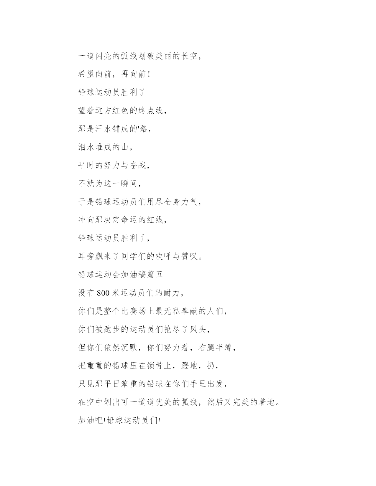 最新铅球运动会加油稿 运动会铅球加油稿(通用12篇)