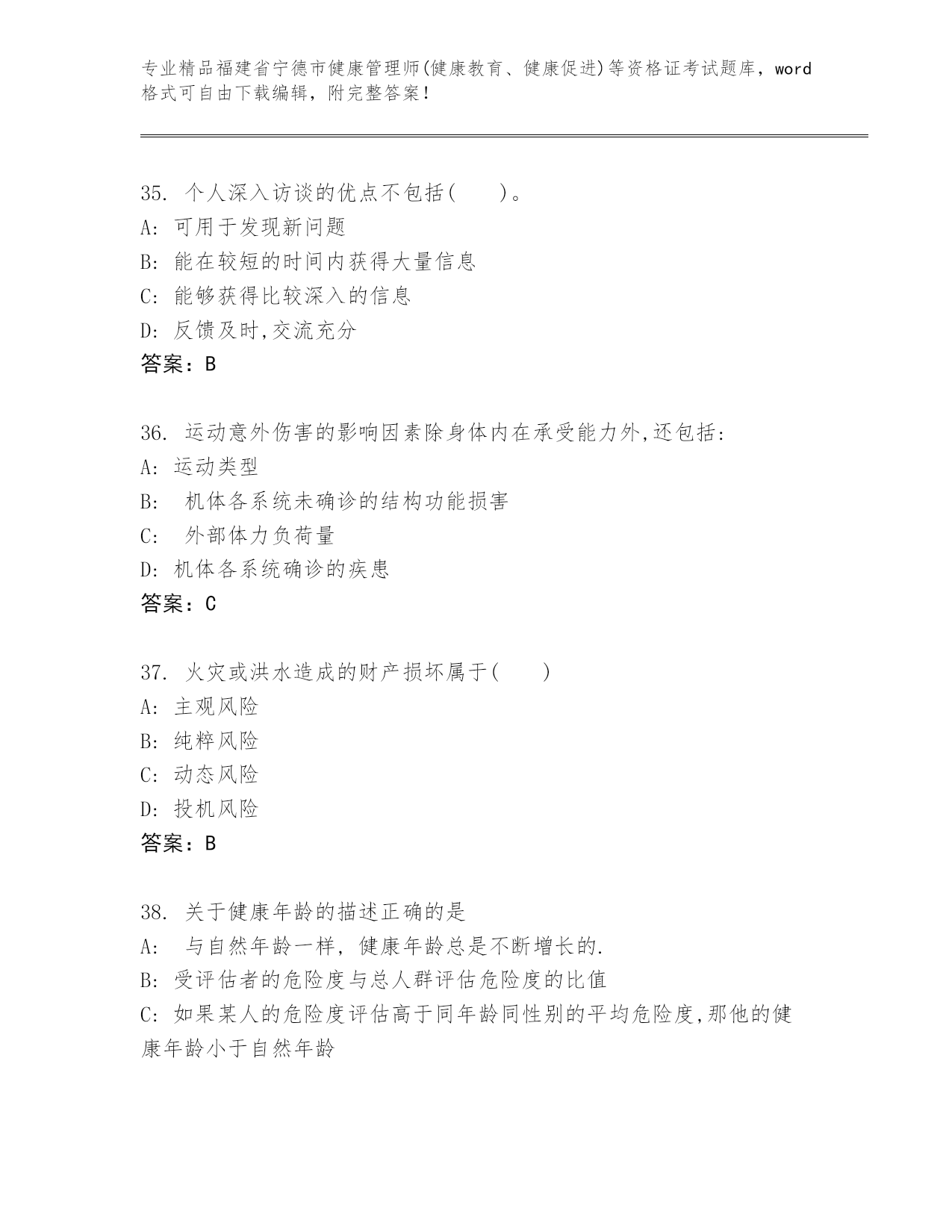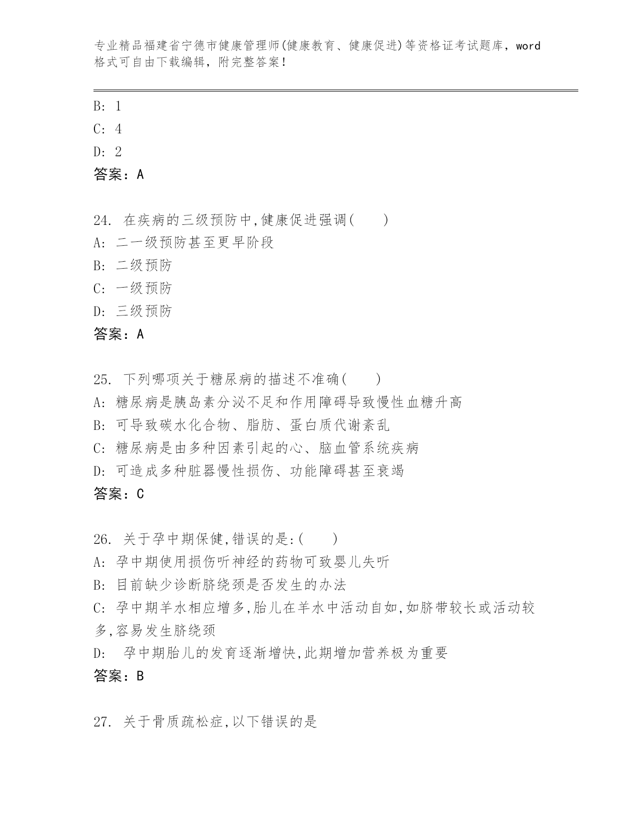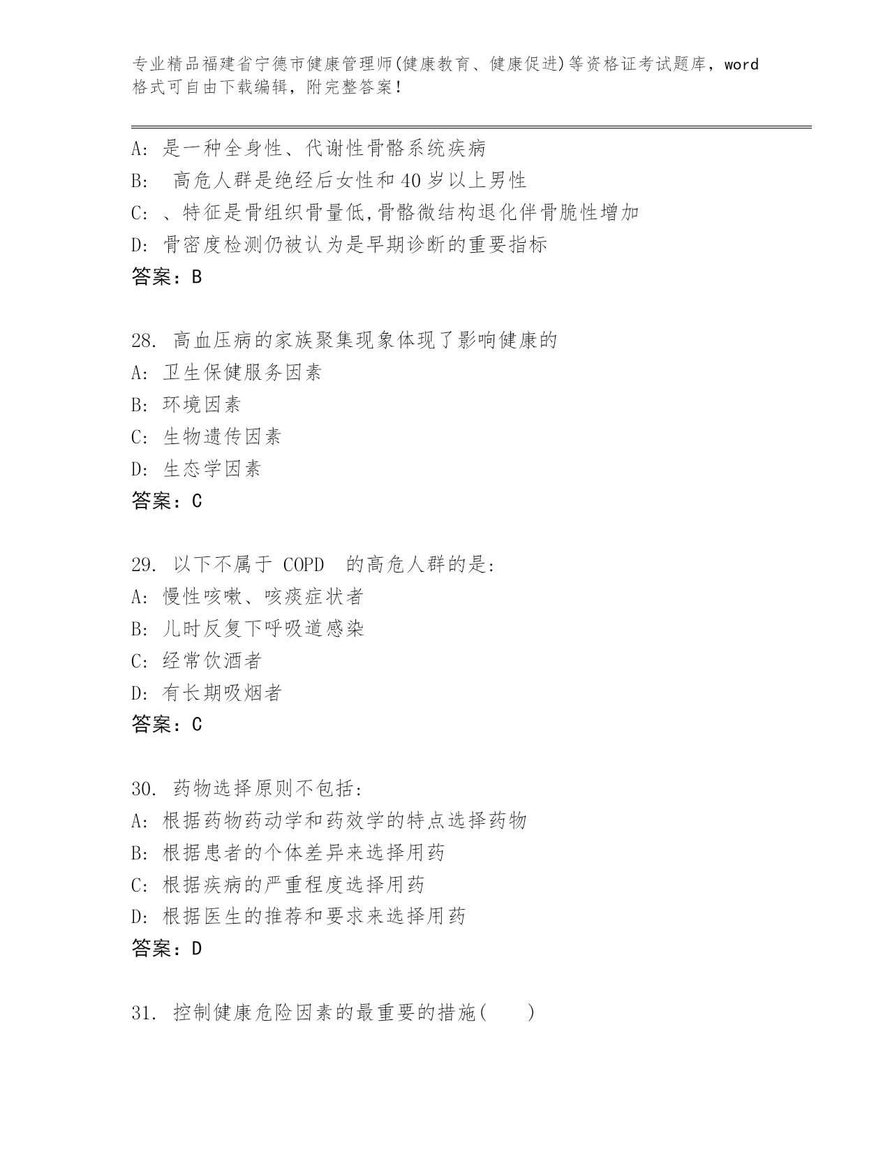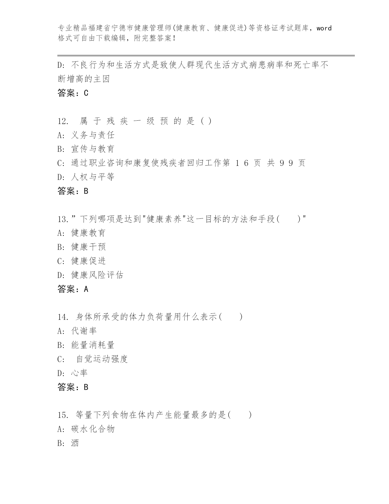 福建省宁德市健康管理师(健康教育、健康促进)等资格证考试优选题库答案下载