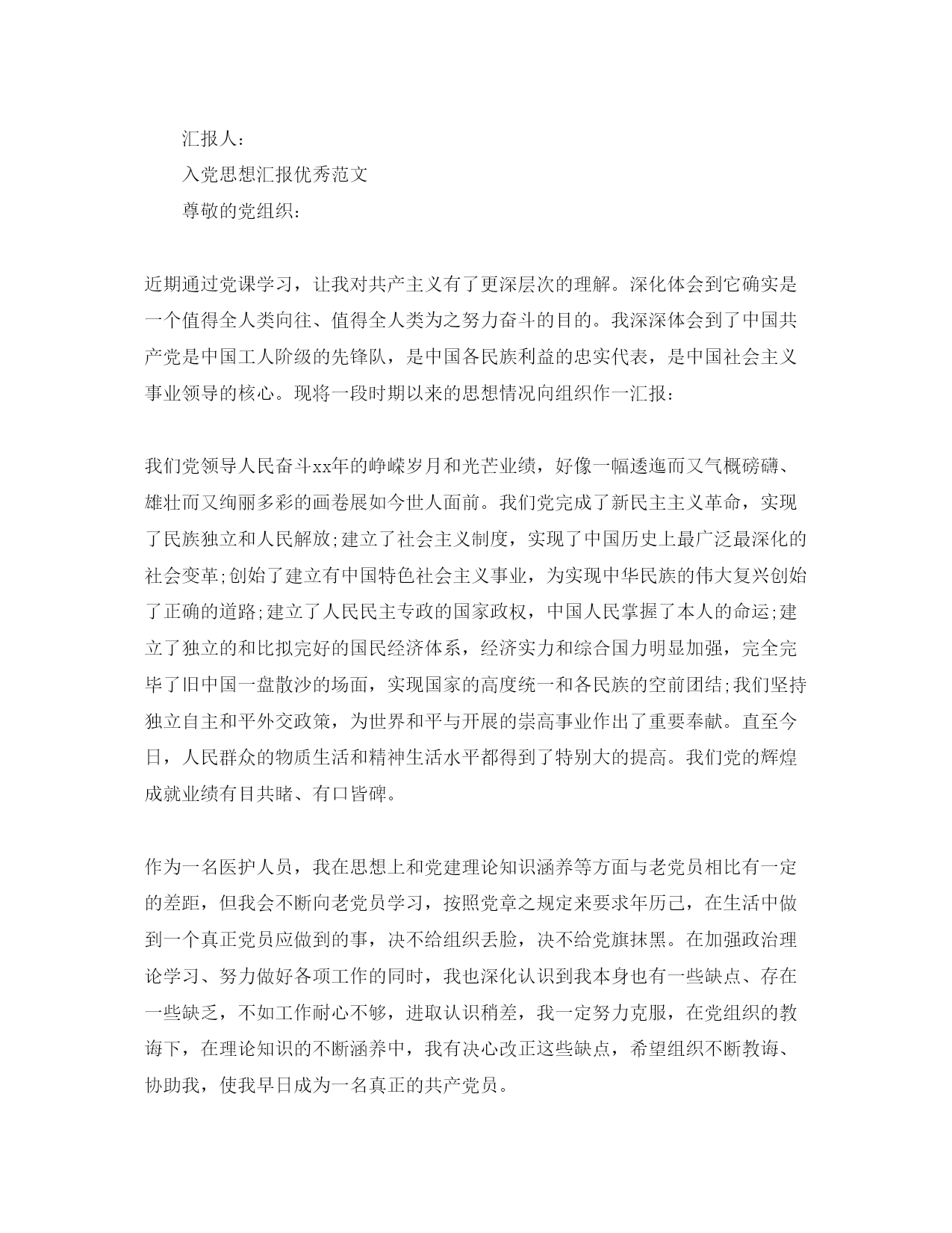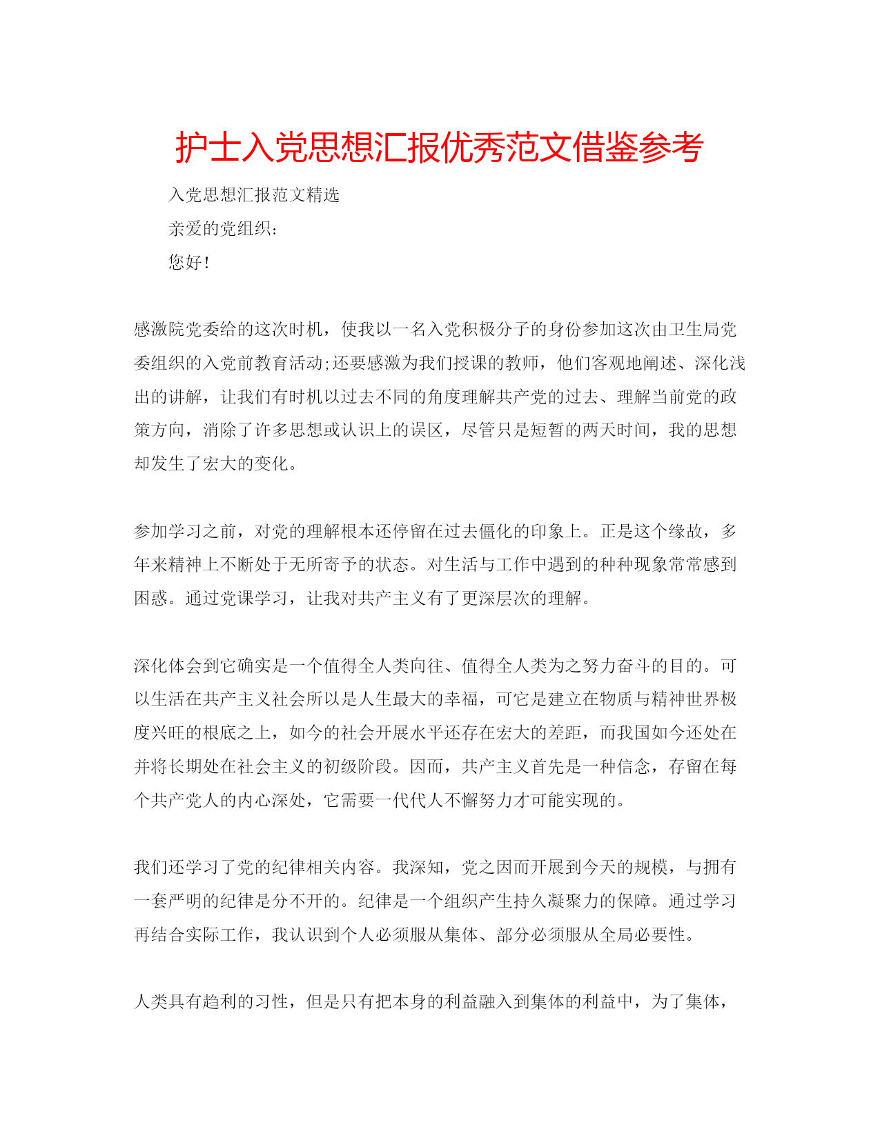 2022护士入党思想汇报优秀范文借鉴参考.docx