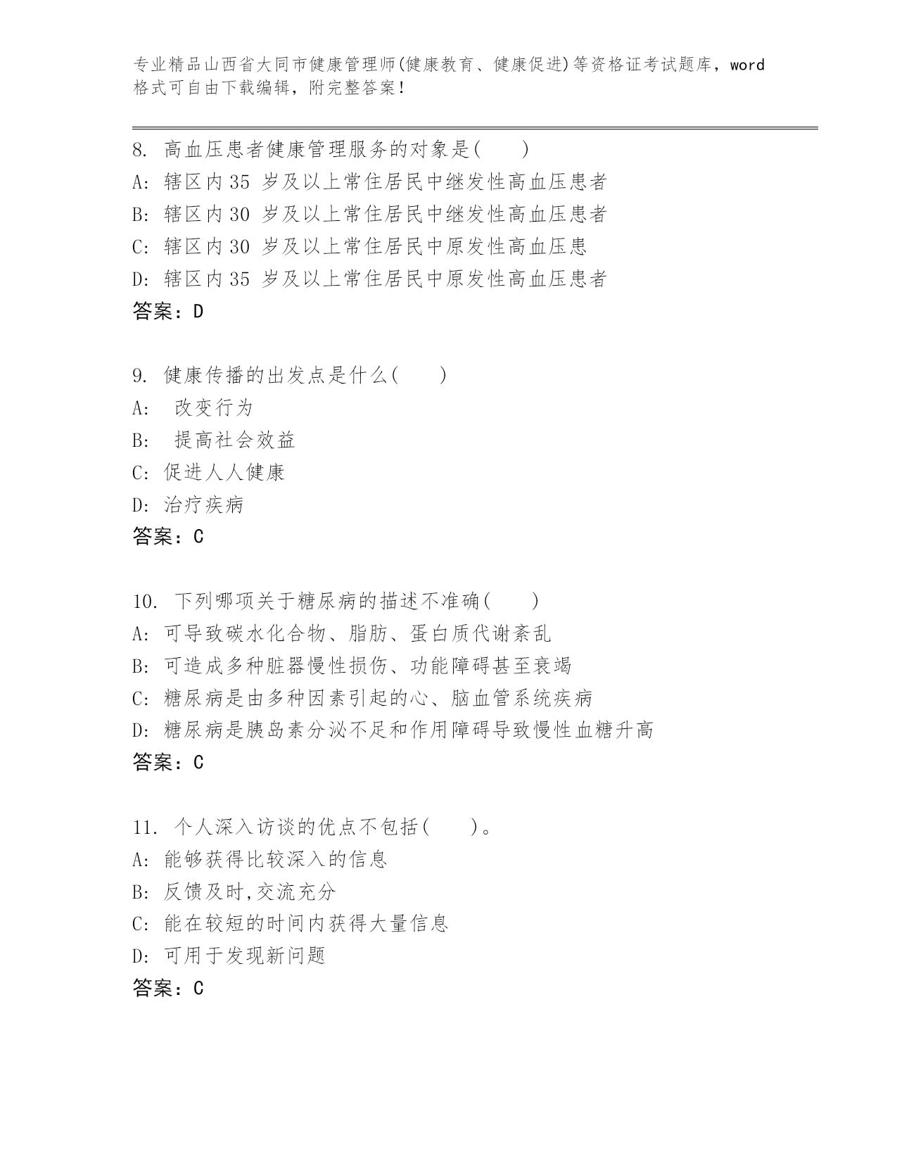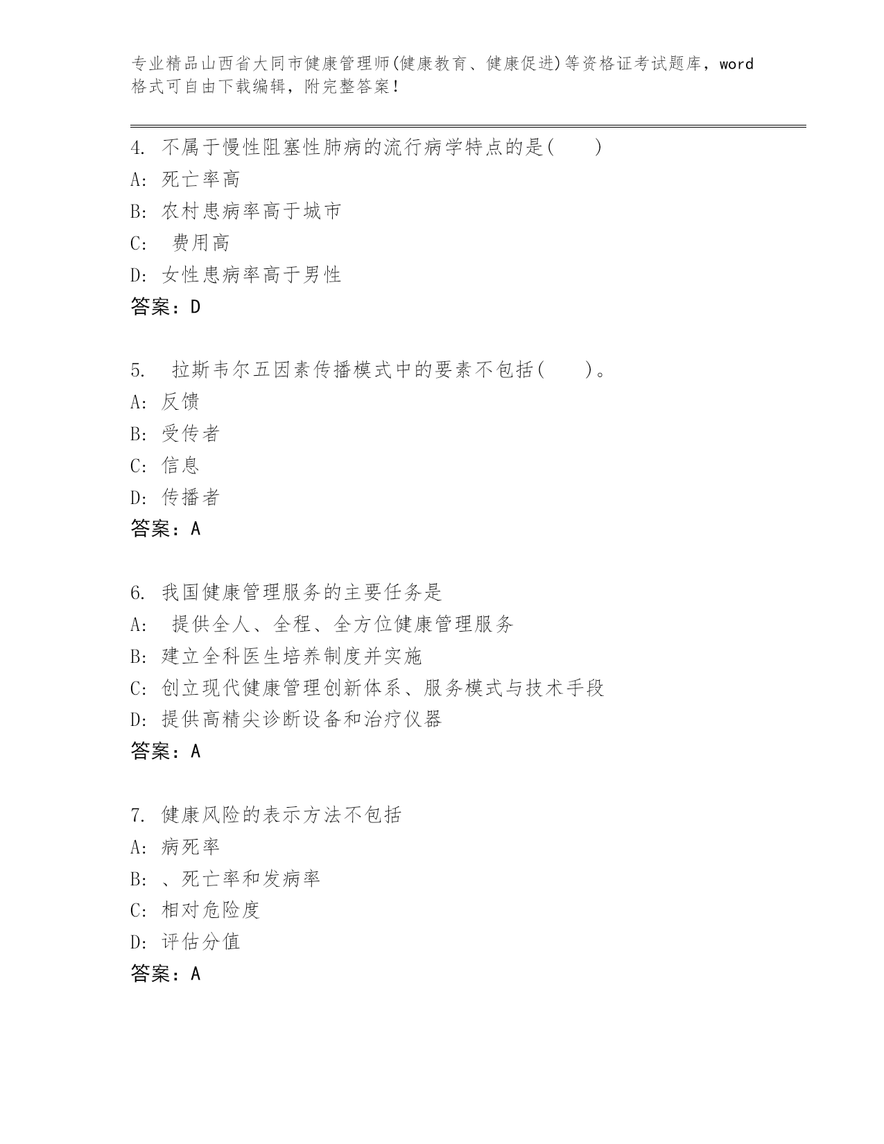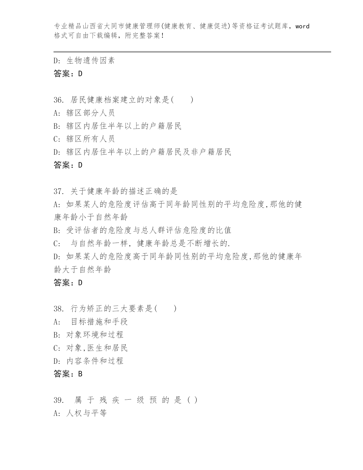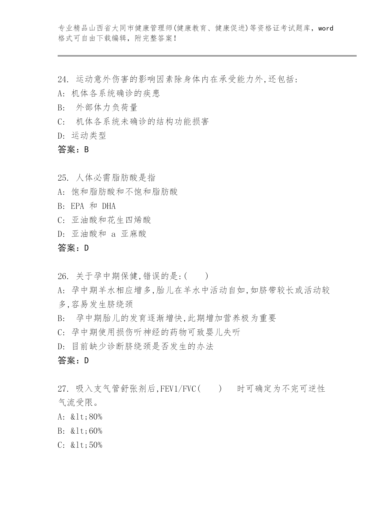 山西省大同市健康管理师(健康教育、健康促进)等资格证考试精品题库各版本.docx