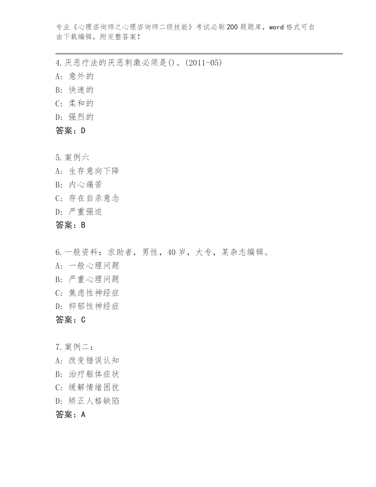河北省景县2024年《心理咨询师之心理咨询师二级技能》考试必刷200题通关秘籍题库及答案(必刷)