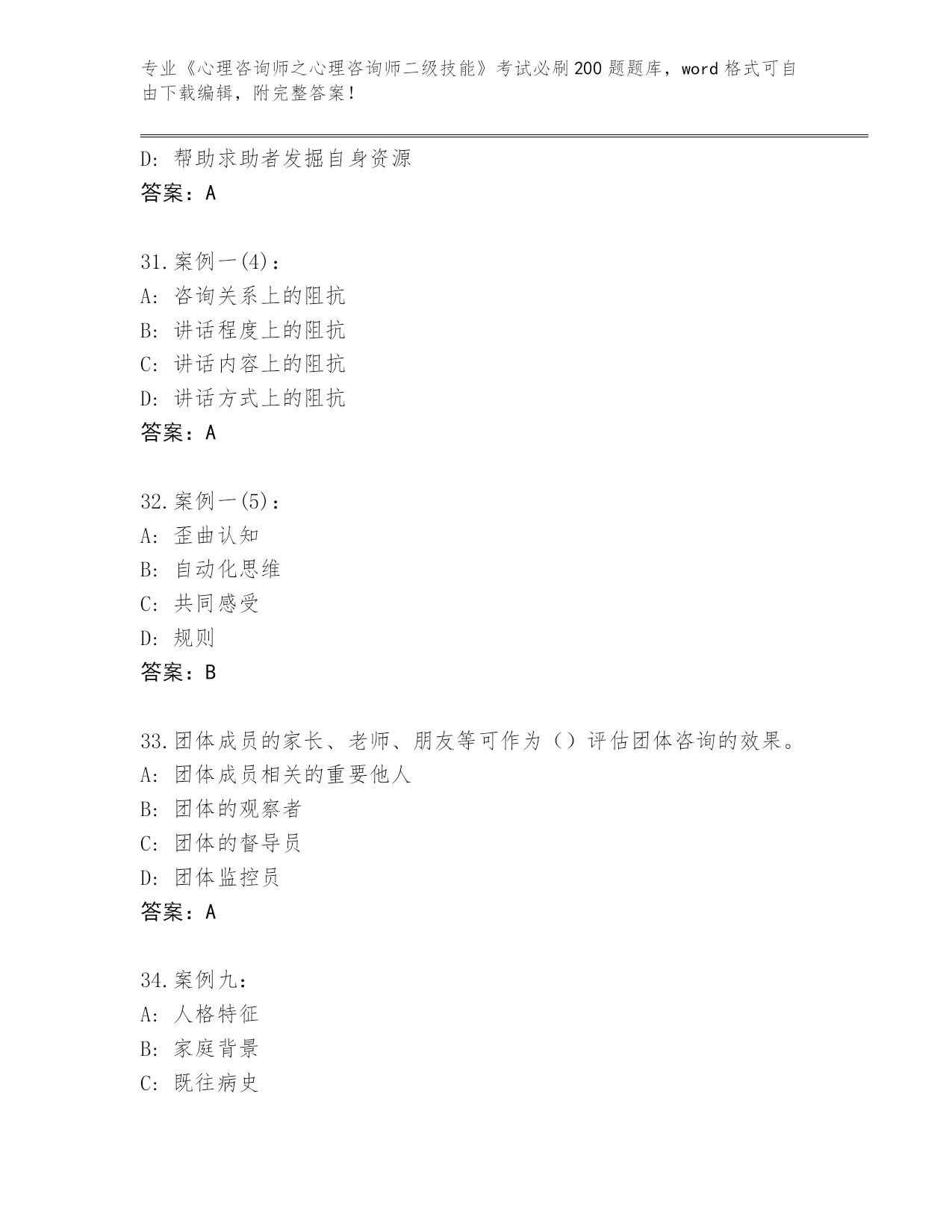 山西省历年《心理咨询师之心理咨询师二级技能》考试必刷200题通关秘籍题库带答案