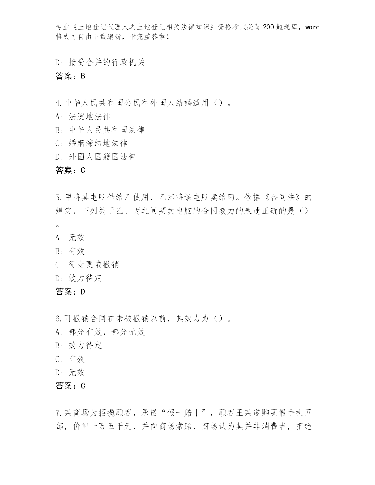 陕西省商州区2024年《土地登记代理人之土地登记相关法律知识》考试必背200题题库及答案(真题汇编)