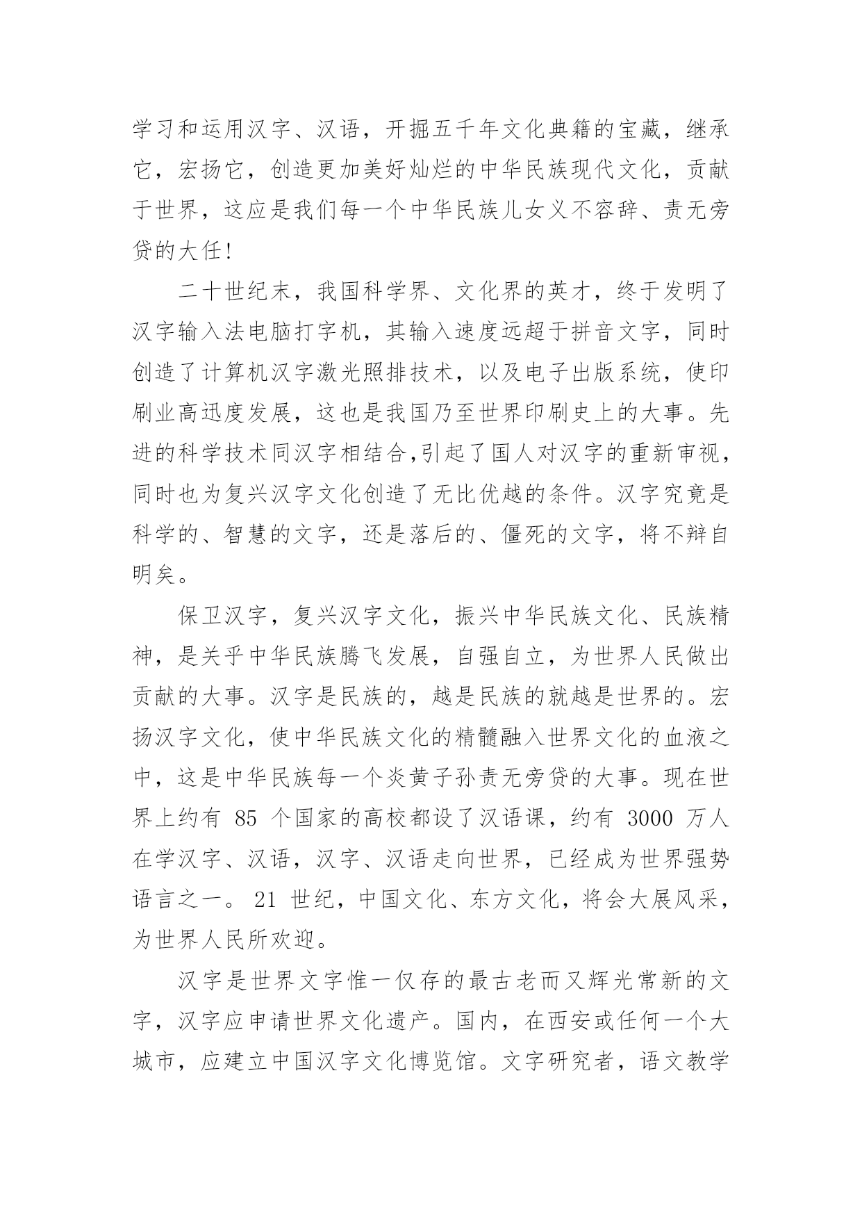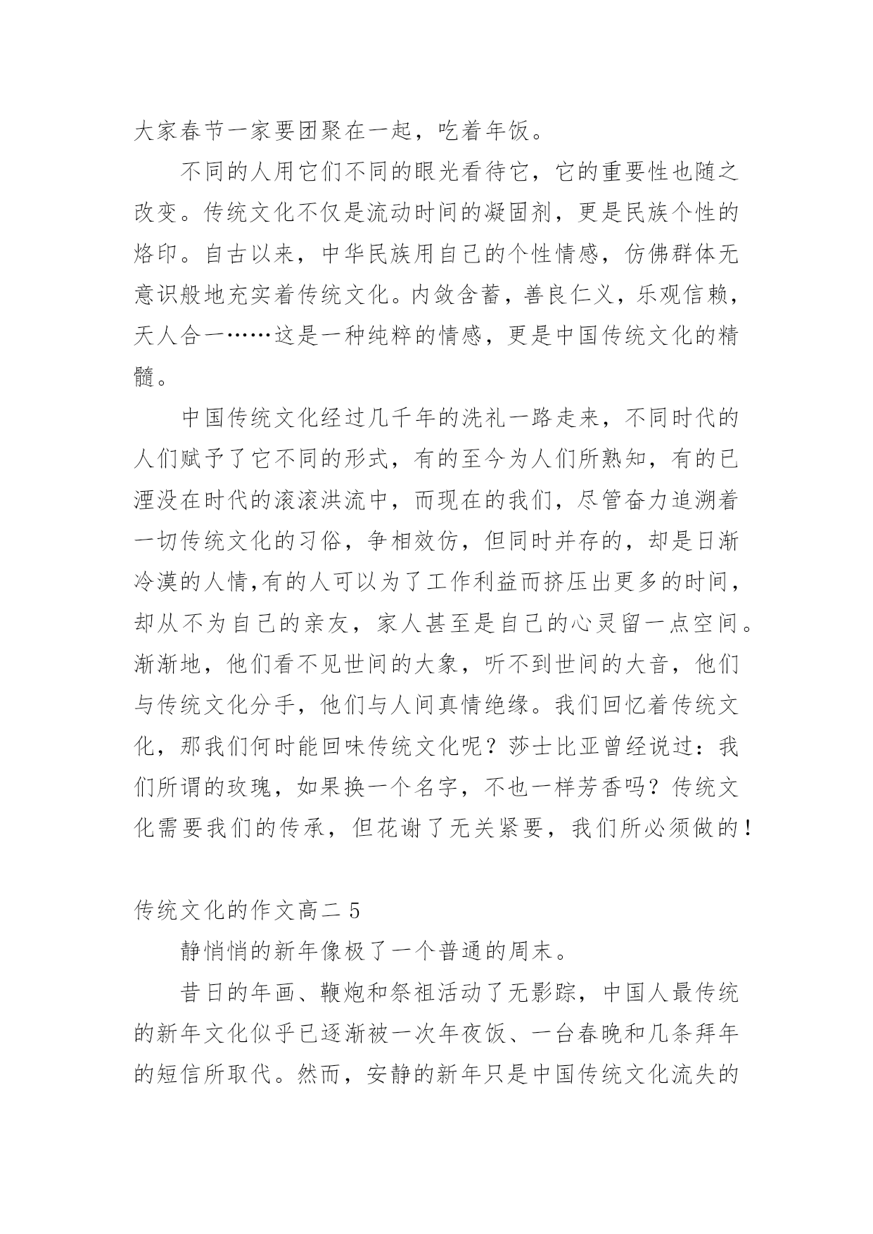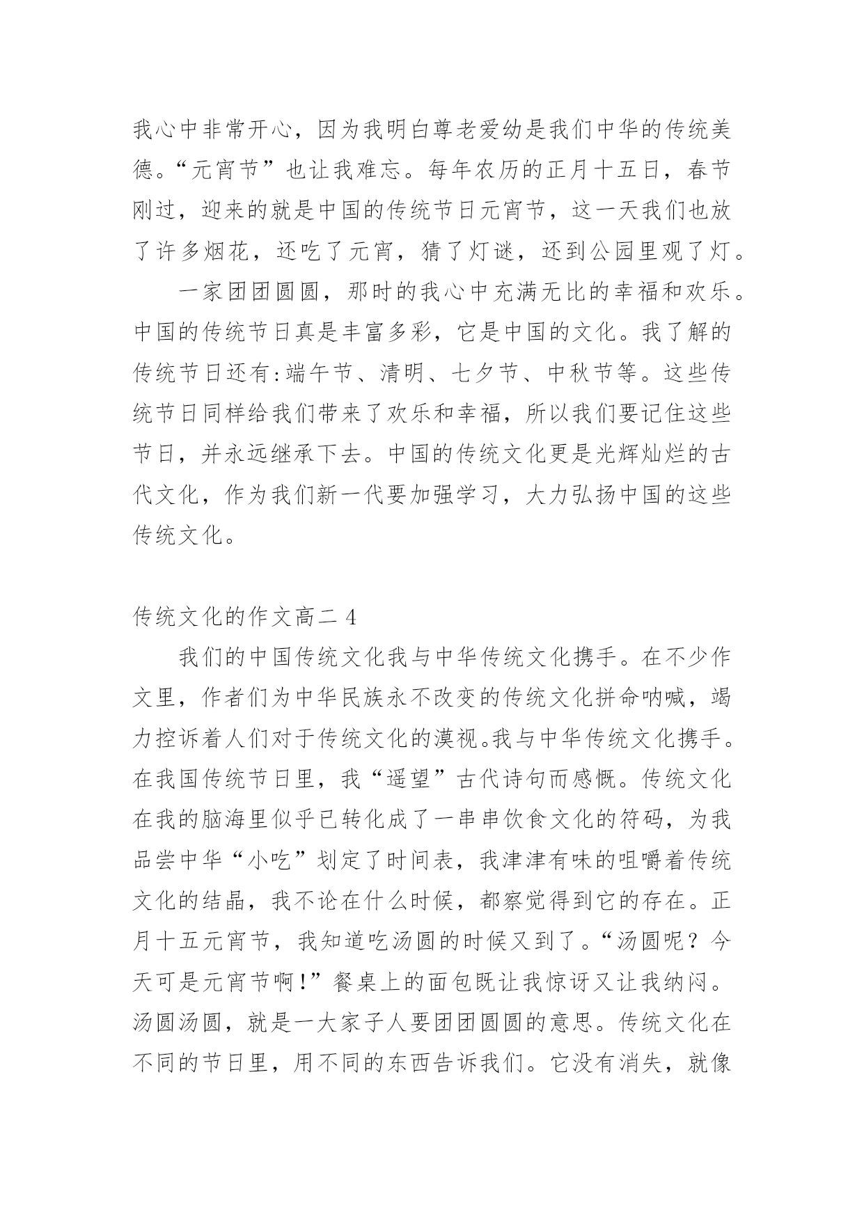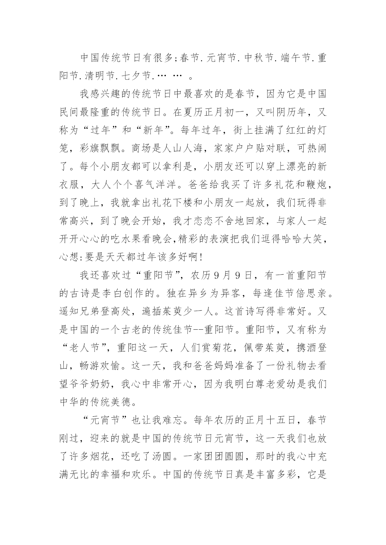 传统文化的作文高二无论在学习、工作或是生活中,大家最不陌生的就是作文了吧,通过作文可以把我们那些零零散散的思想,聚集在一块。作文的注意事项有许多,你确定会写吗?以下是小编为大家整理的传统文化的作文高二,欢迎阅读,希望大家能够喜欢。传统文化的作文高二1在学校领导对新教师的关心和重视下,在路老师的率领下。我有幸于20xx年5月23日到5月27日参加在昆明举办的中国传统文化的学习。这次学习受益颇多,对于中国传统文化有了一次深刻的了解。这也是一次文化大餐,丰富了大脑的知识。现将学习中国传统文化感受如下:学习传统文化,让我们的生活和工作更加和谐快乐,这既是我们学习传统文化的原因,又是这段时间以来我们学习传统文化的收获。以前,我们遇事很多时候都是根据自己当时当地的心情、情绪来处理面对的问题。如果我们学了传统文化,有一颗宽爱地心,我们会在矛盾冲突发生以前有预见性地化解矛盾,无论何时,都可以以一份"共情"的心,从对方的出发点考虑问题,理解对方,从而更有效地沟通思想,解决问题。《中庸》的博学之,审问之,慎思之,明辨之,笃行之。讲的是治学求进得道理。一个人要广泛地多方面学习,详细地问,慎重地思考,明确地分辨,踏踏实实地行。在工作中,如果我们时时如此,积极主动地工作。那么,我们的工作该是多么和谐惬意的一件事。因此,我们要把传统文化学深,学透,学到我们的骨髓里,运用到我们的工作中去。学习传统文化,对于大力弘扬中华优秀传统文化,深入推进社会主义核心价值体系建设,用传统文化中蕴涵的高尚道德情操,提升精神境界,用社会主义核心价值观引领社会风尚,不断提高人们的道德素质和文明程度具有重大的现实意义和深远的历史意义。学习传统文化应该体会到以下几点:学会爱社会,爱祖国和遵纪守法、学会感恩、学会礼仪为先、学会尊重别人、学会廉耻、学会替他人着想、学会与人和谐相处等等。希望中国的传统文化越来越深入更多人们的心灵,走向大众。带来一个和谐的社会。走向一个美好的未来。中国传统文化50字传统文化的作文高二2汉字是中国文化之根,是中华民族的精神寄讬者,中华民族视之若祖先之生命,无限敬惜与爱护她。中华民族五千年光辉灿烂的文明史,汉字是其承载者,传播者,见证者,昭示者,从甲骨文、金文以至于今天之楷体,中国汉字三千年永垂不灭,辉光常新,令全世界人民为之动客,为之起敬,为之惊叹,这实在是世界文明史上最了不起的伟大奇迹,我们每一个中国人都应该感到欣慰和自豪,应在更高的层次上学习和运用汉字、汉语,开掘五千年文化典籍的宝藏,继承它,宏扬它,创造更加美好灿烂的中华民族现代文化,贡献于世界,这应是我们每一个中华民族儿女义不容辞、责无旁贷的大任!二十世纪末,我国科学界、文化界的英才,终于发明了汉字输入法电脑打字机,其输入速度远超于拼音文字,同时创造了计算机汉字激光照排技术,以及电子出版系统,使印刷业高迅度发展,这也是我国乃至世界印刷史上的大事。先进的科学技术同汉字相结合,引起了国人对汉字的重新审视,同时也为复兴汉字文化创造了无比优越的条件。汉字究竟是科学的、智慧的文字,还是落后的、僵死的文字,将不辩自明矣。保卫汉字,复兴汉字文化,振兴中华民族文化、民族精神,是关乎中华民族腾飞发展,自强自立,为世界人民做出贡献的大事。汉字是民族的,越是民族的就越是世界的。宏扬汉字文化,使中华民族文化的精髓融入世界文化的血液之中,这是中华民族每一个炎黄子孙责无旁贷的大事。现在世界上约有85个国家的高校都设了汉语课,约有3000万人在学汉字、汉语,汉字、汉语走向世界,已经成为世界强势语言之一。21世纪,中国文化、东方文化,将会大展风采,为世界人民所欢迎。汉字是世界文字惟一仅存的最古老而又辉光常新的文字,汉字应申请世界文化遗产。国内,在西安或任何一个大城市,应建立中国汉字文化博览馆。文字研究者,语文教学者,应该以“百家争鸣,百花齐放”的精神,以新的角度、新的方法、新的思维,对汉字作多元化的研究,阐释汉字原创性之奥秘,为复兴汉字文化的伟大事业做出贡献。应该大力发展汉字文化产业,全社会都应重视、关注、推动汉字文化的发展与繁荣。传统文化的作文高二3这个星期,我收集了许多中国传统的资料:有对联、十二生肖、剪纸,还有中国的传统节日的图片和文字等。其中我最喜欢传统节日的资料,因为我对传统节日很感兴趣。我感兴趣的传统节日中最喜欢的是春节,因为它是中国民间最隆重的传统节日。在夏历正月初一,又叫阴历年,俗称“过年”,“新年”。每年过年,街上挂满了红红的灯笼,彩旗飘飘。商场是人山人海,购买年货,可热闹了。奶奶准备了丰盛的食物,外面有许多“砰、砰、砰”的鞭炮声。每个小朋友都穿上了漂亮的新衣服,大人们露出了满意的笑容。爸爸给我买了许多礼花和鞭炮,到了晚上,我就拿出礼花下楼和小朋友一起放,我们玩得非常高兴,到了晚会开始,我才恋恋不舍地回家,与家
