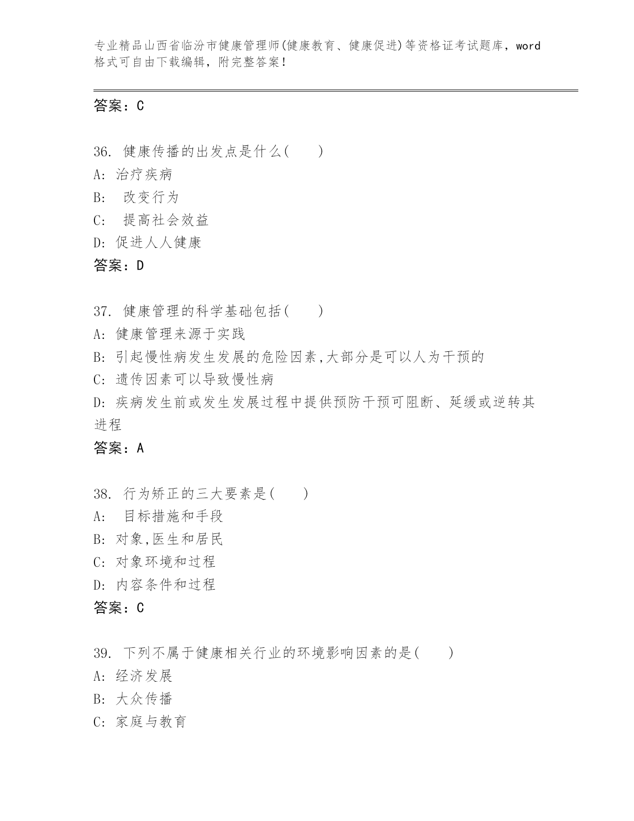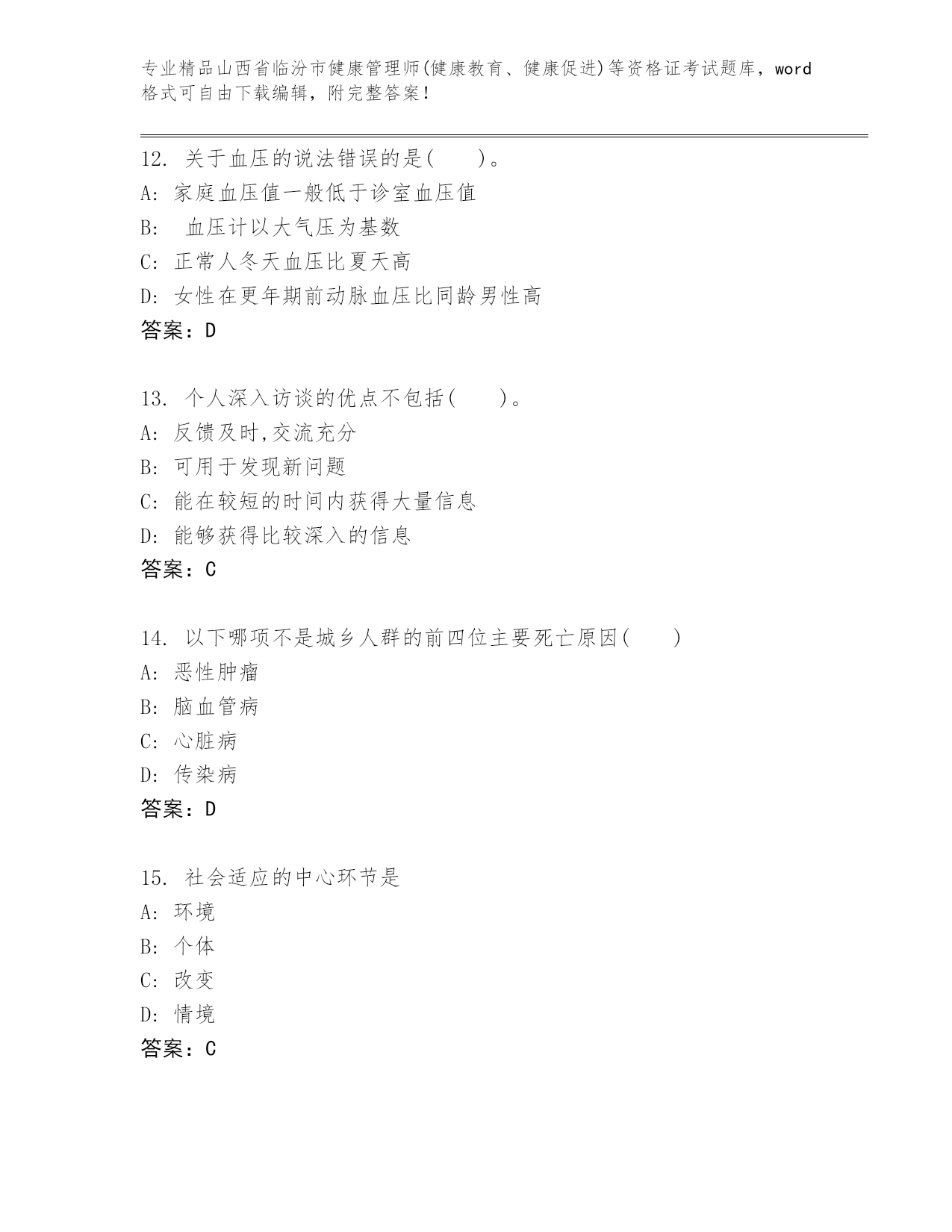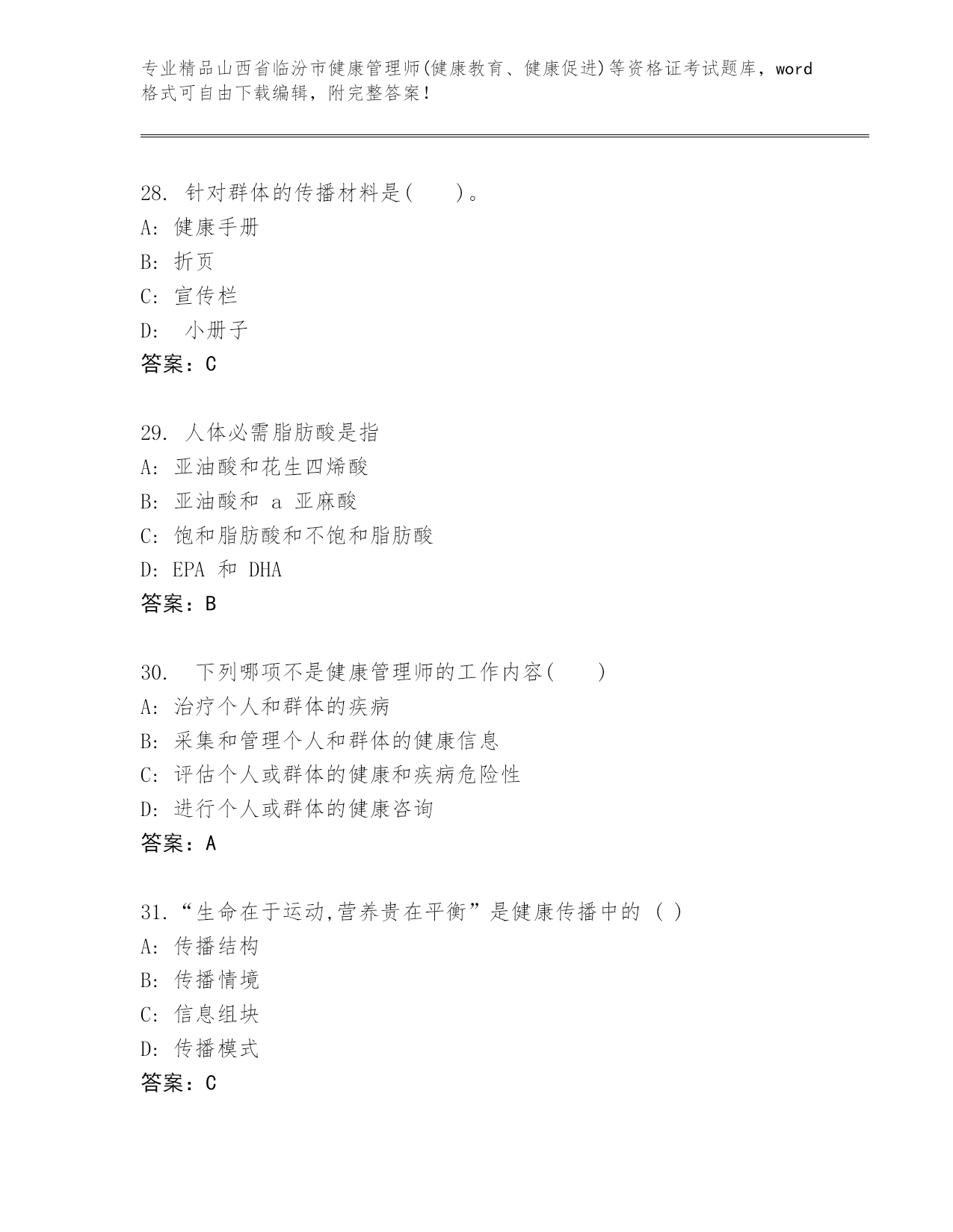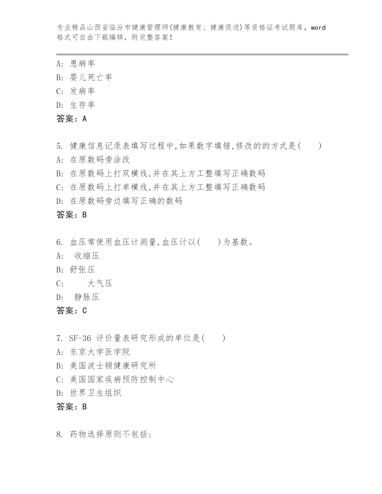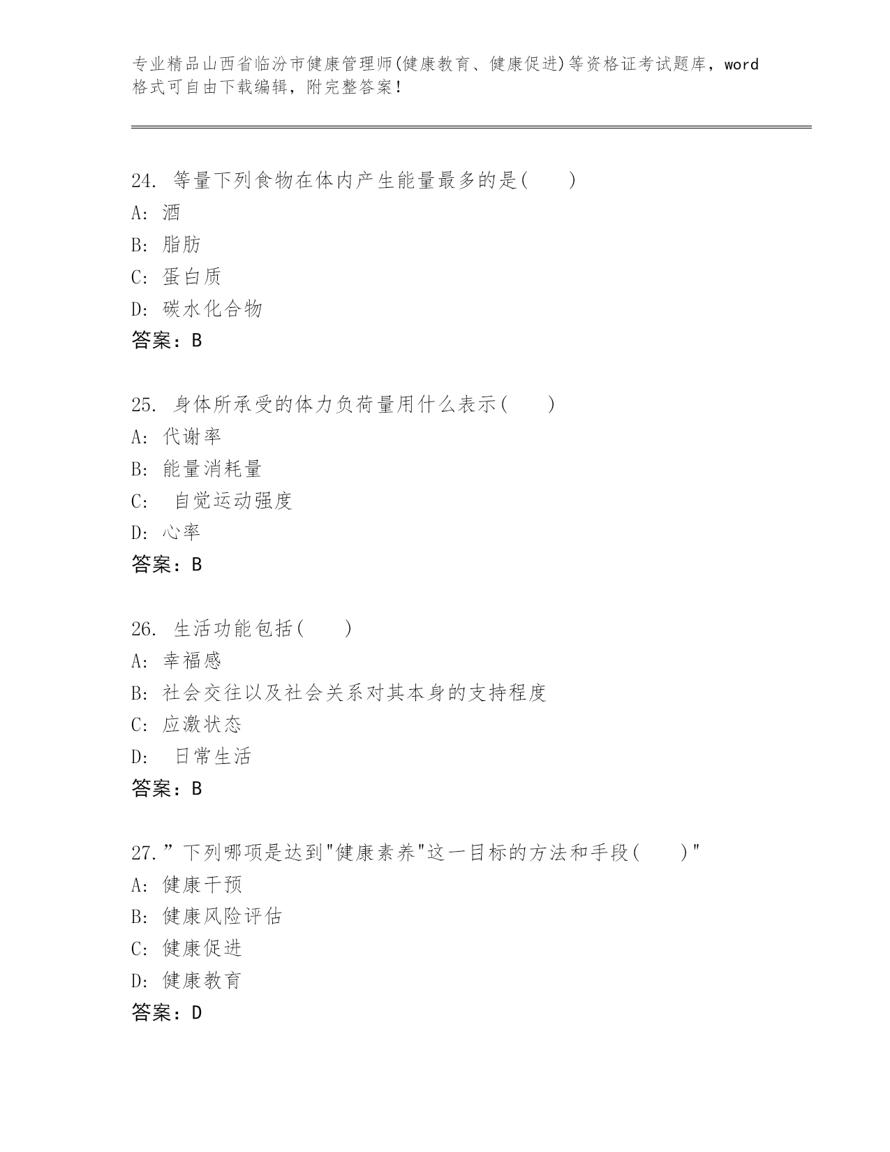 最新山西省临汾市健康管理师(健康教育、健康促进)等资格证考试通用题库【精品】