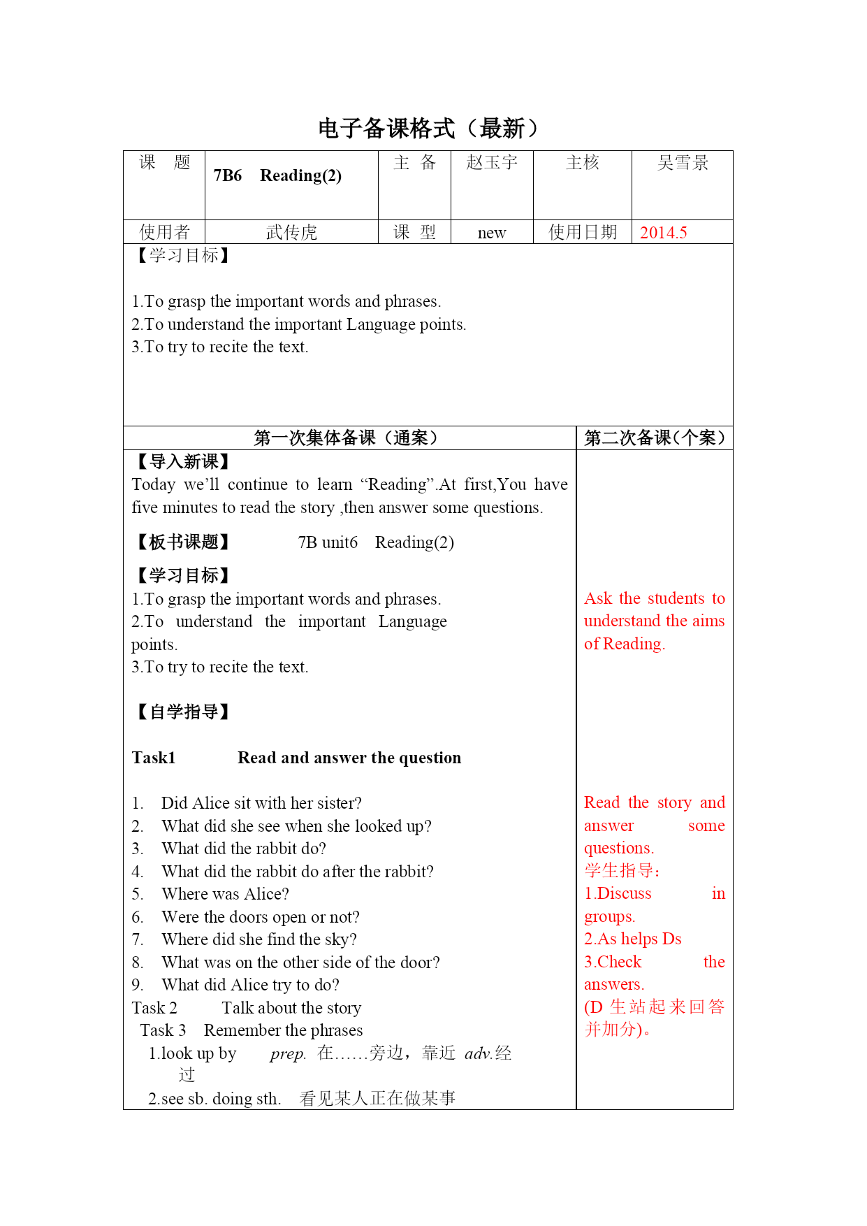【小学中学教育精选】牛津7B Unit6 Reading(2)教案-免费英语教学资料下载.doc