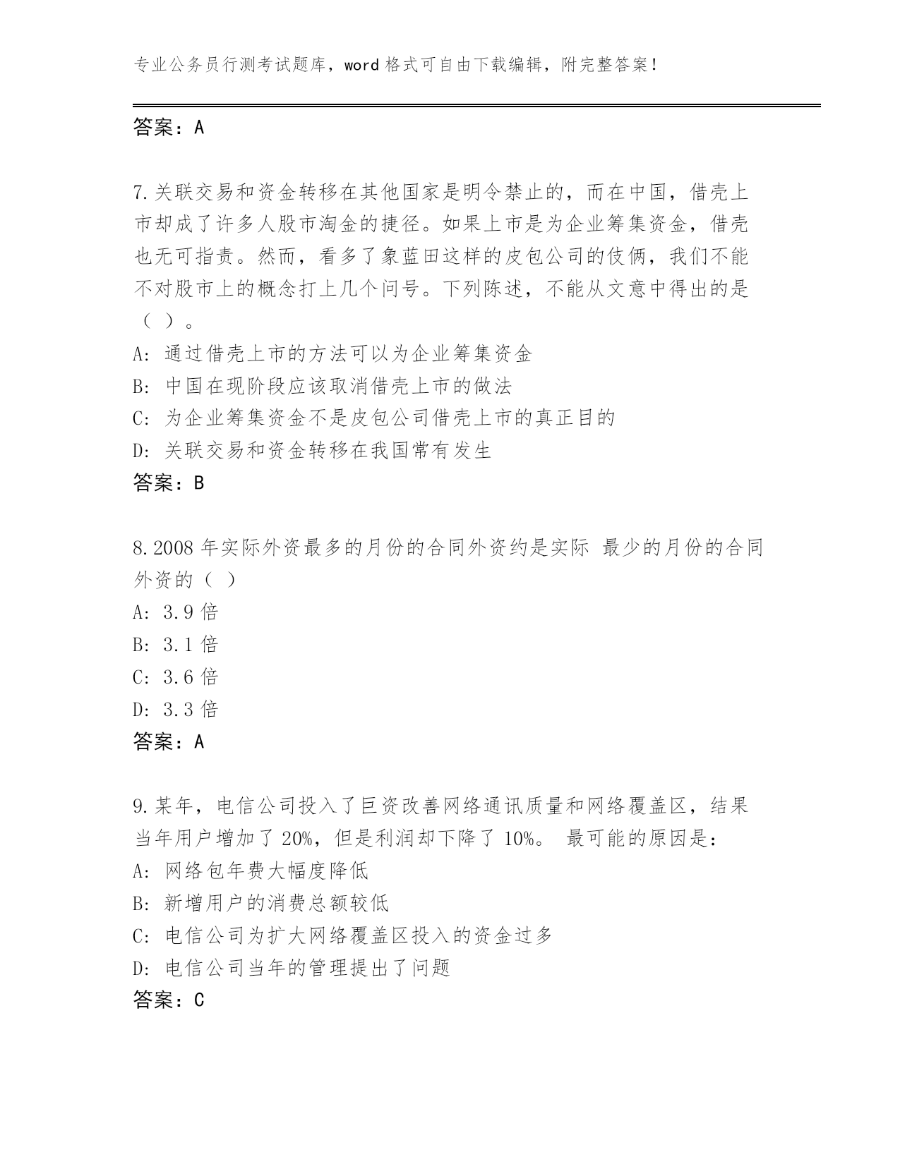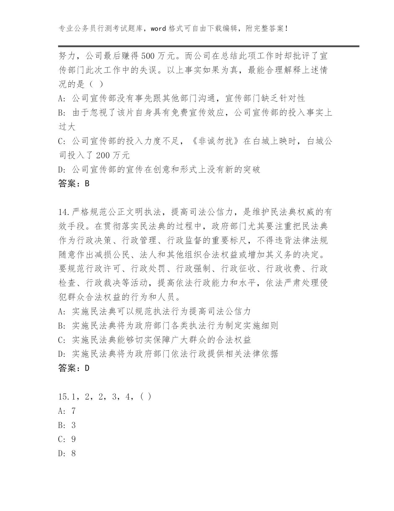 2023-2024年河南省孟州市公务员行测考试大全加答案.docx