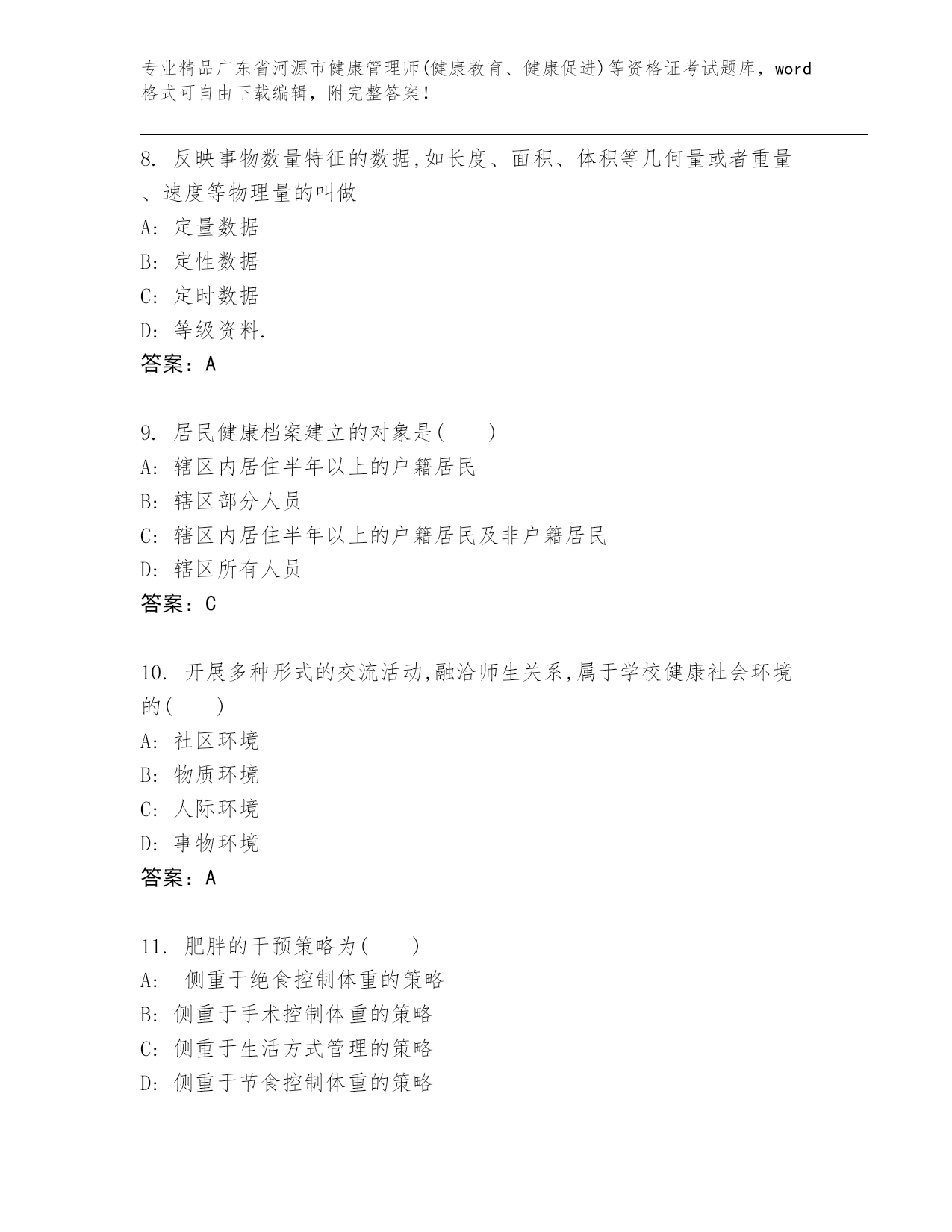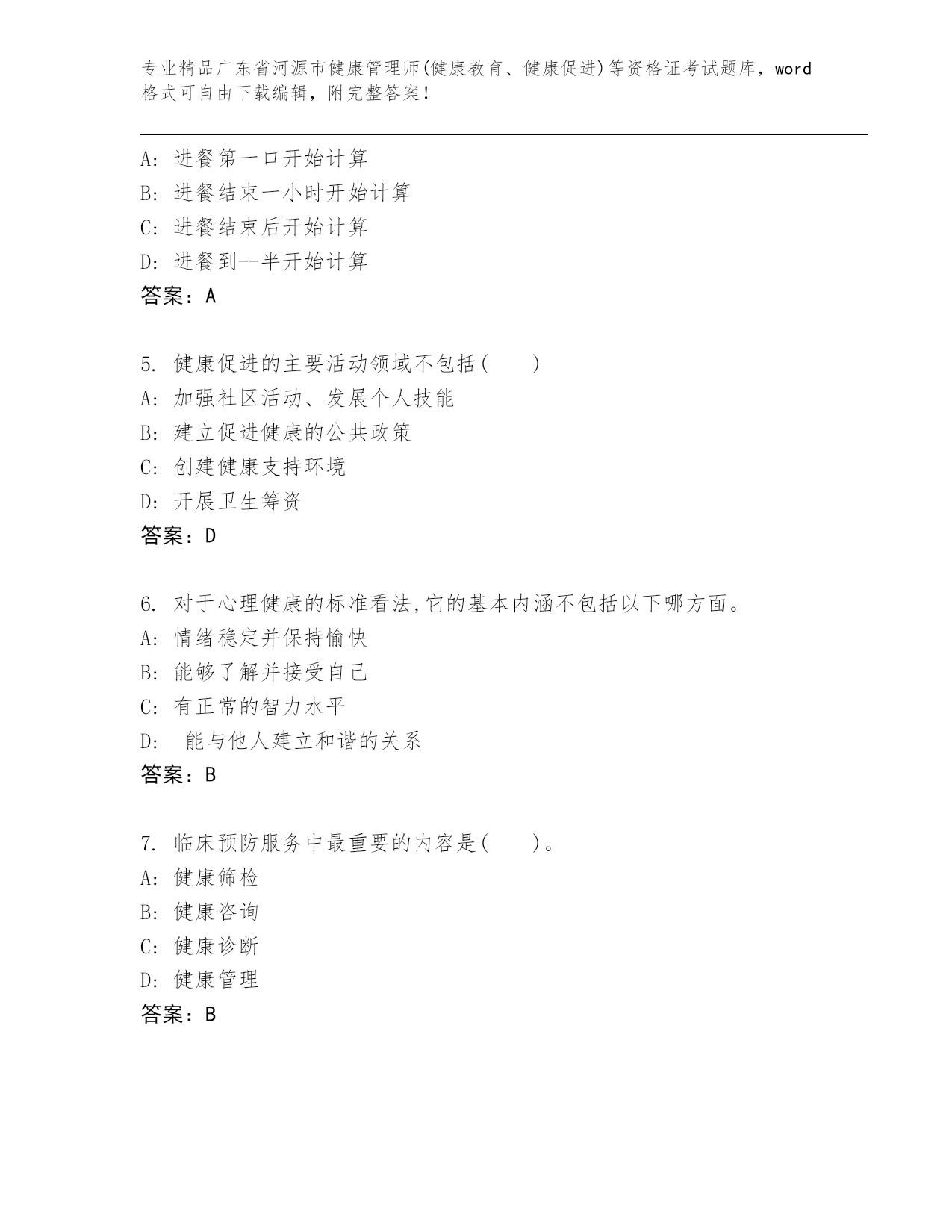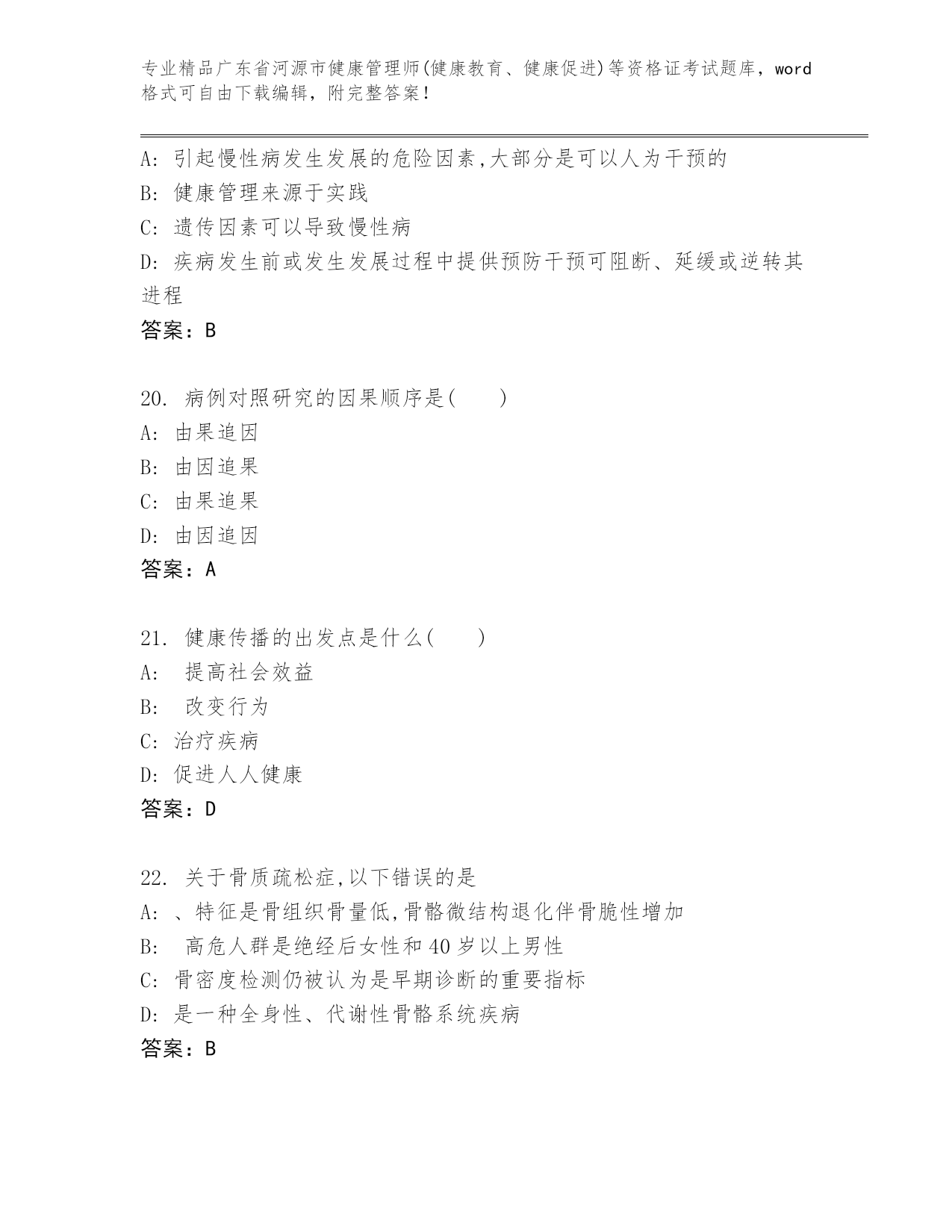 优选广东省河源市健康管理师(健康教育、健康促进)等资格证考试大全(培优A卷).docx
