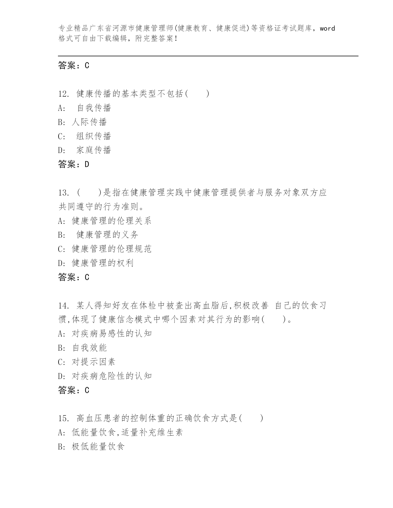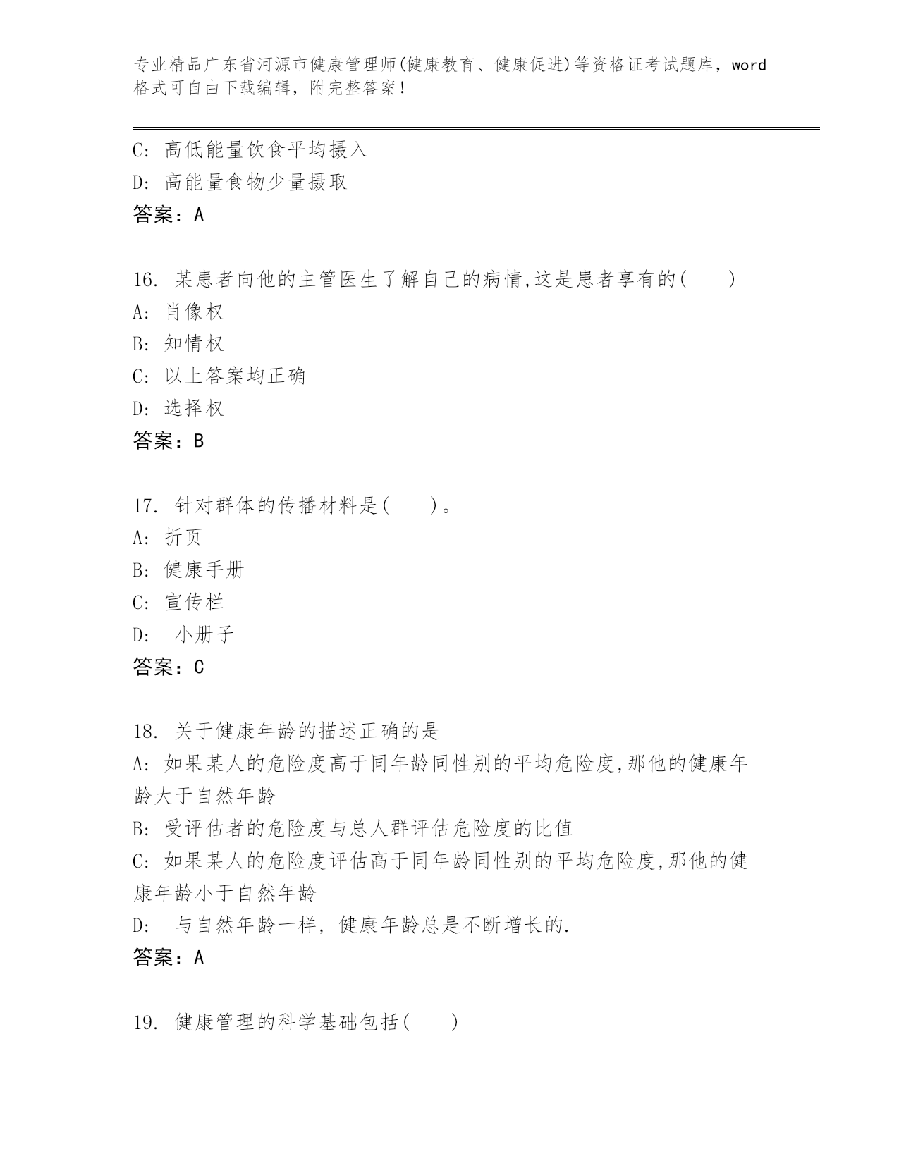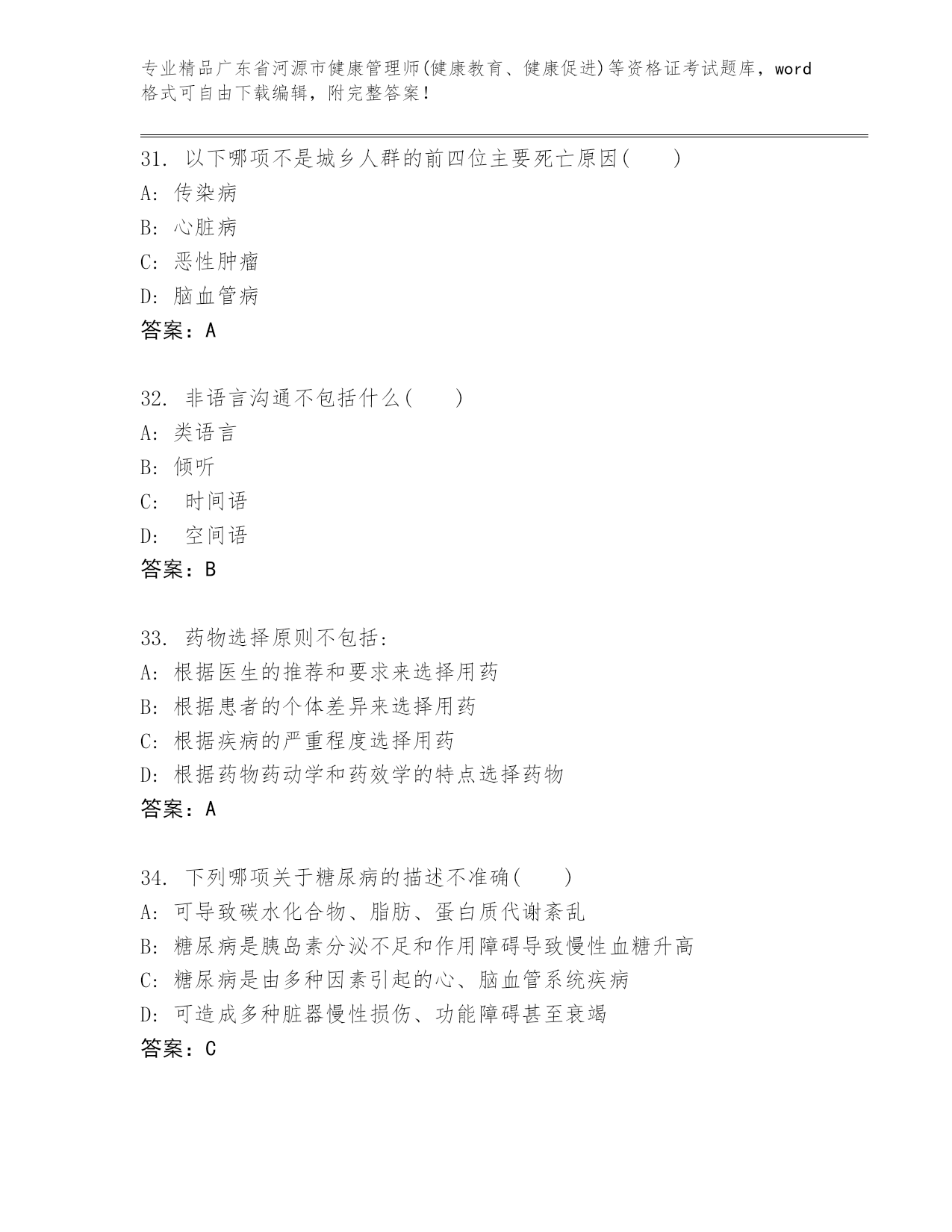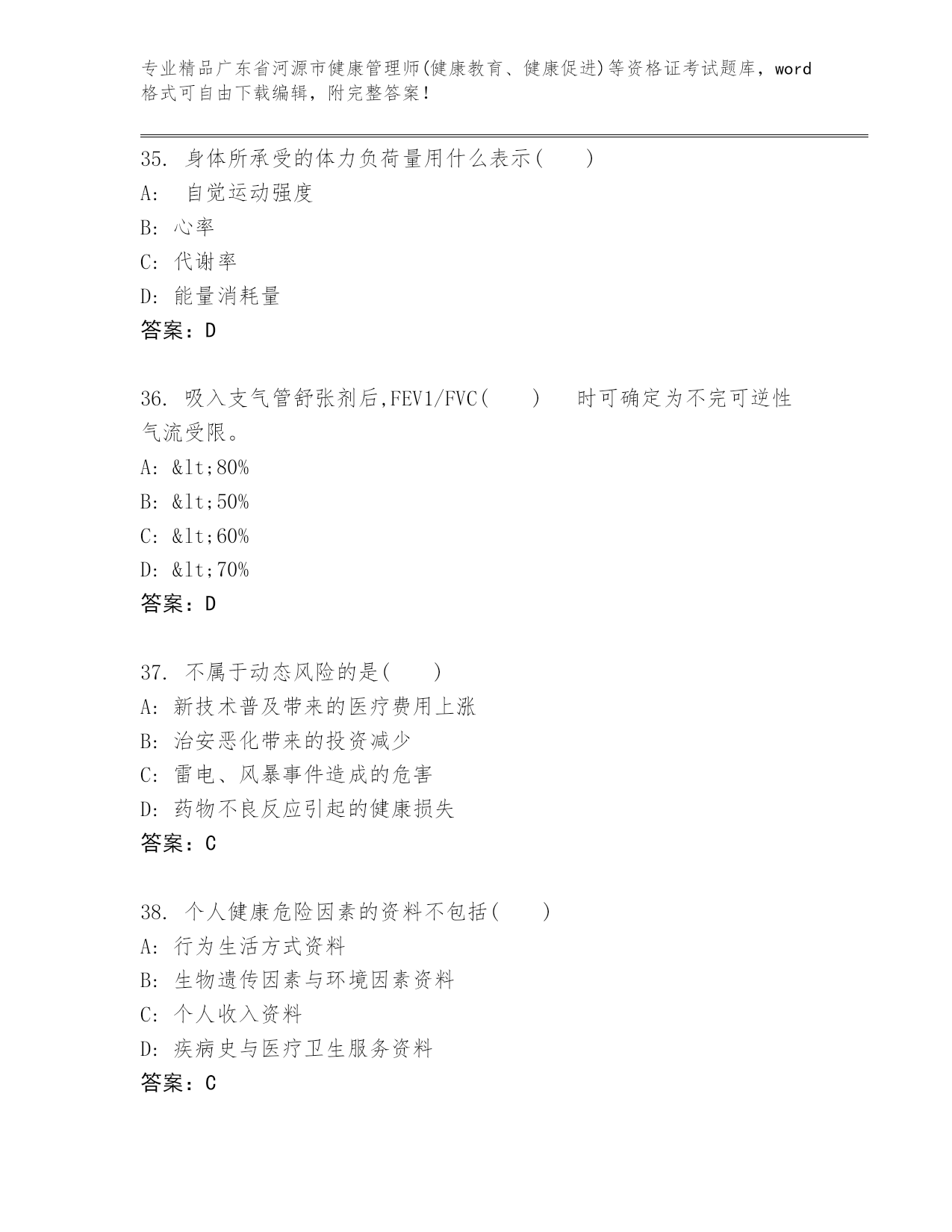 优选广东省河源市健康管理师(健康教育、健康促进)等资格证考试大全(培优A卷).docx