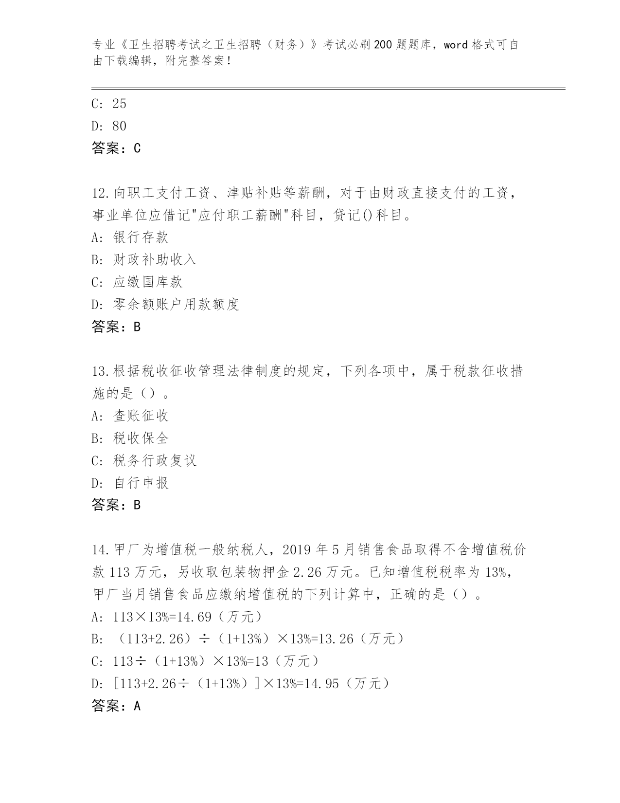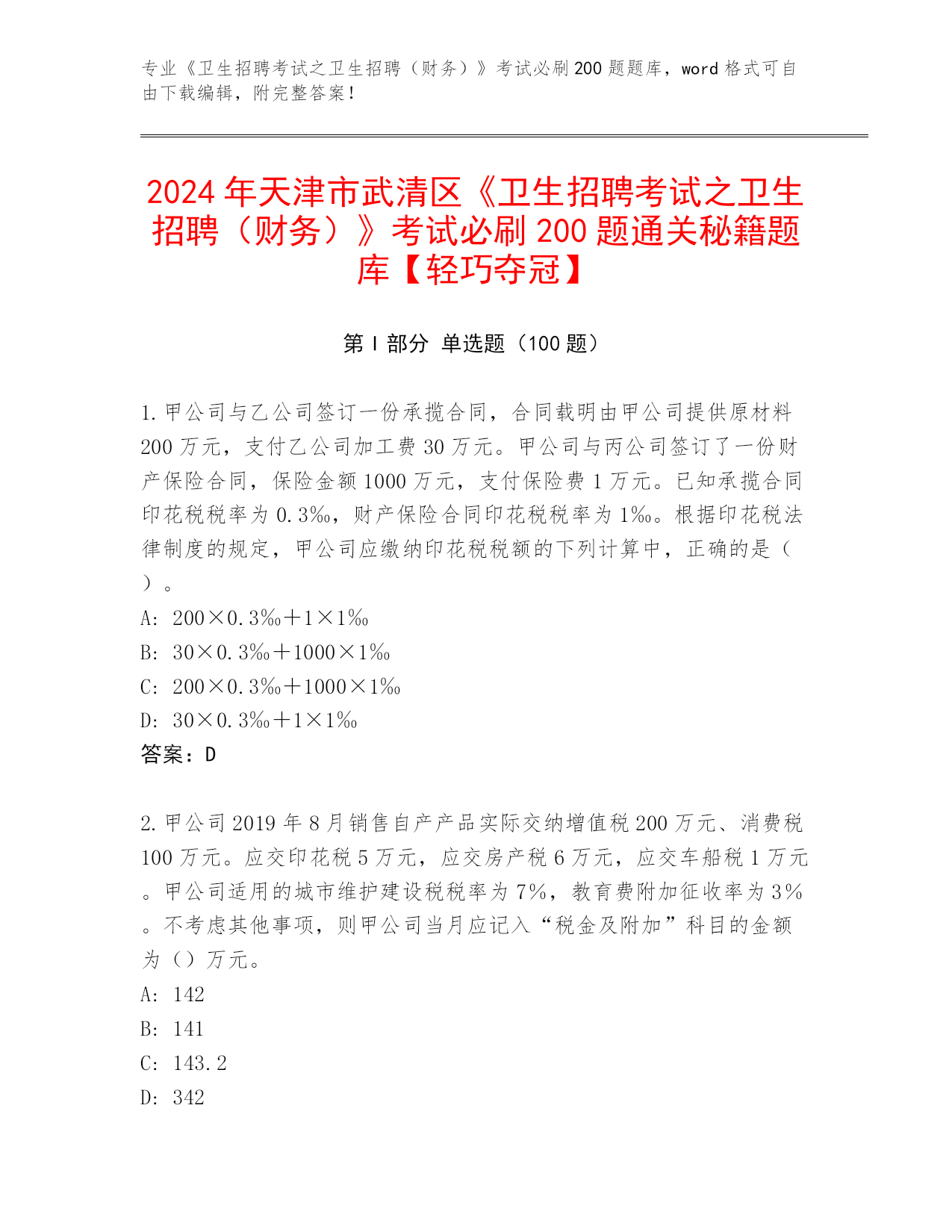 2024年天津市武清区《卫生招聘考试之卫生招聘(财务)》考试必刷200题通关秘籍题库【轻巧夺冠】