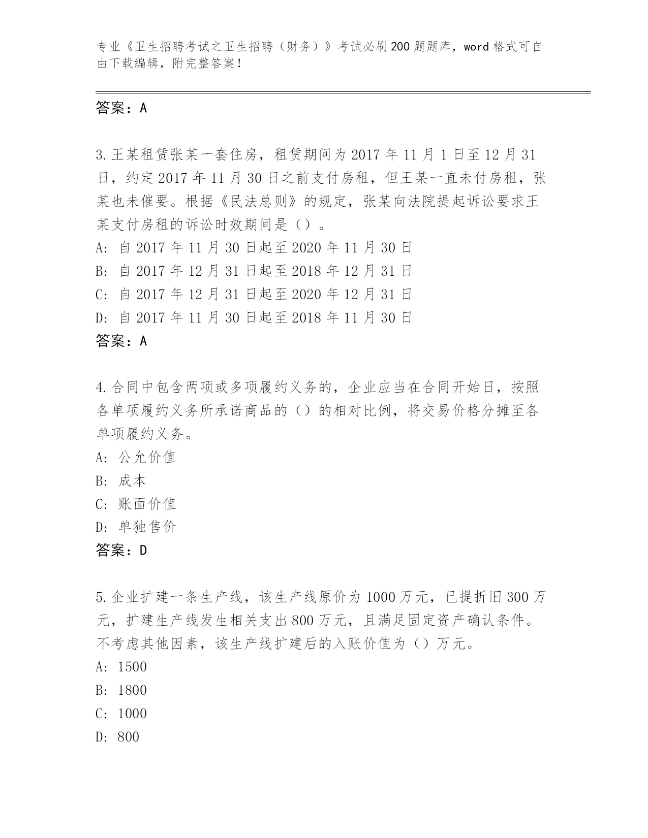 吉林省2024《卫生招聘考试之卫生招聘(财务)》考试必刷200题通关秘籍题库附答案(轻巧夺冠)