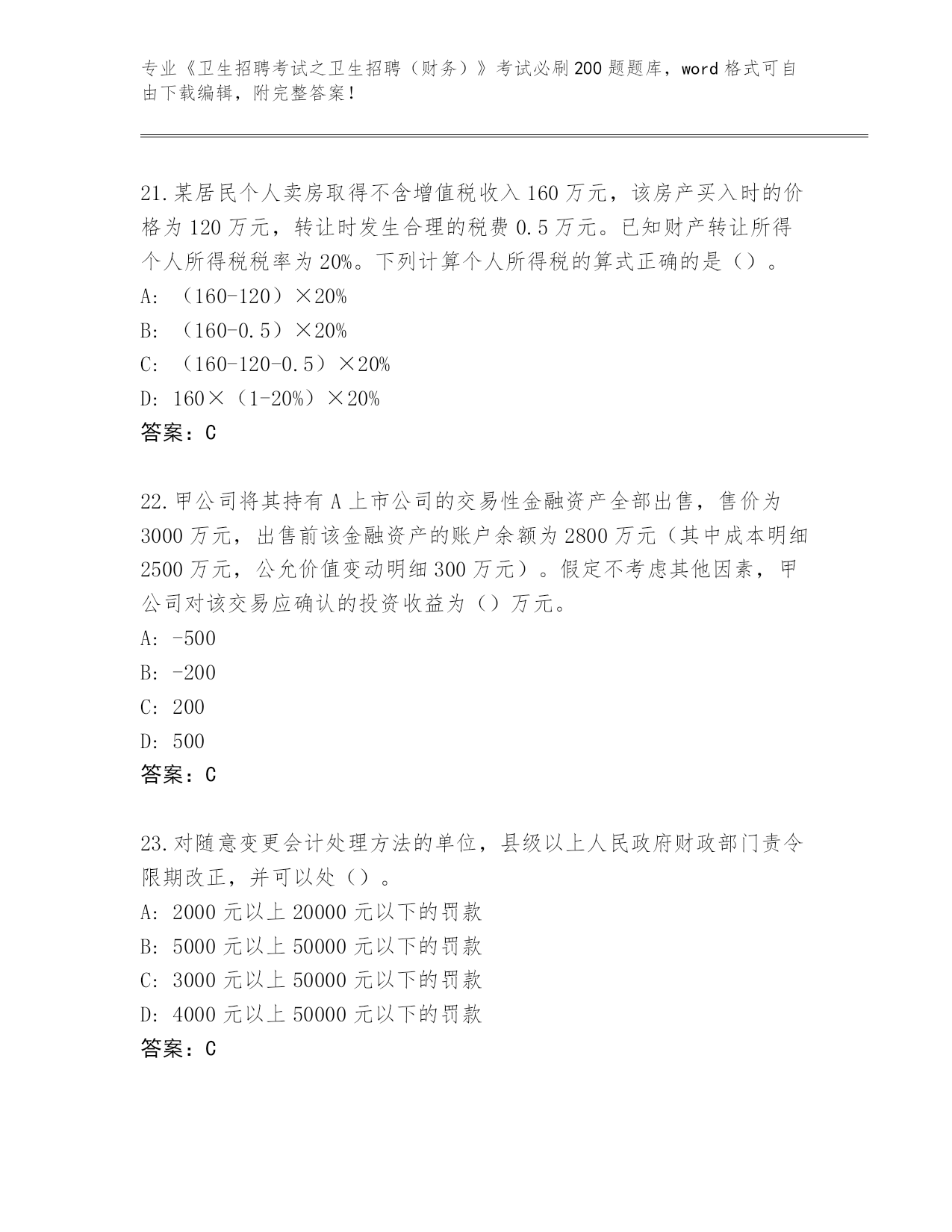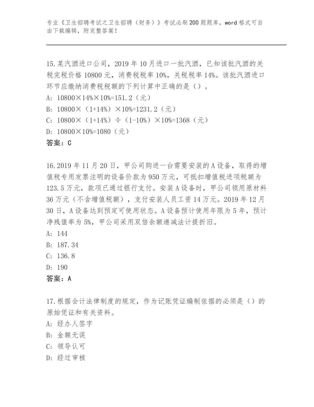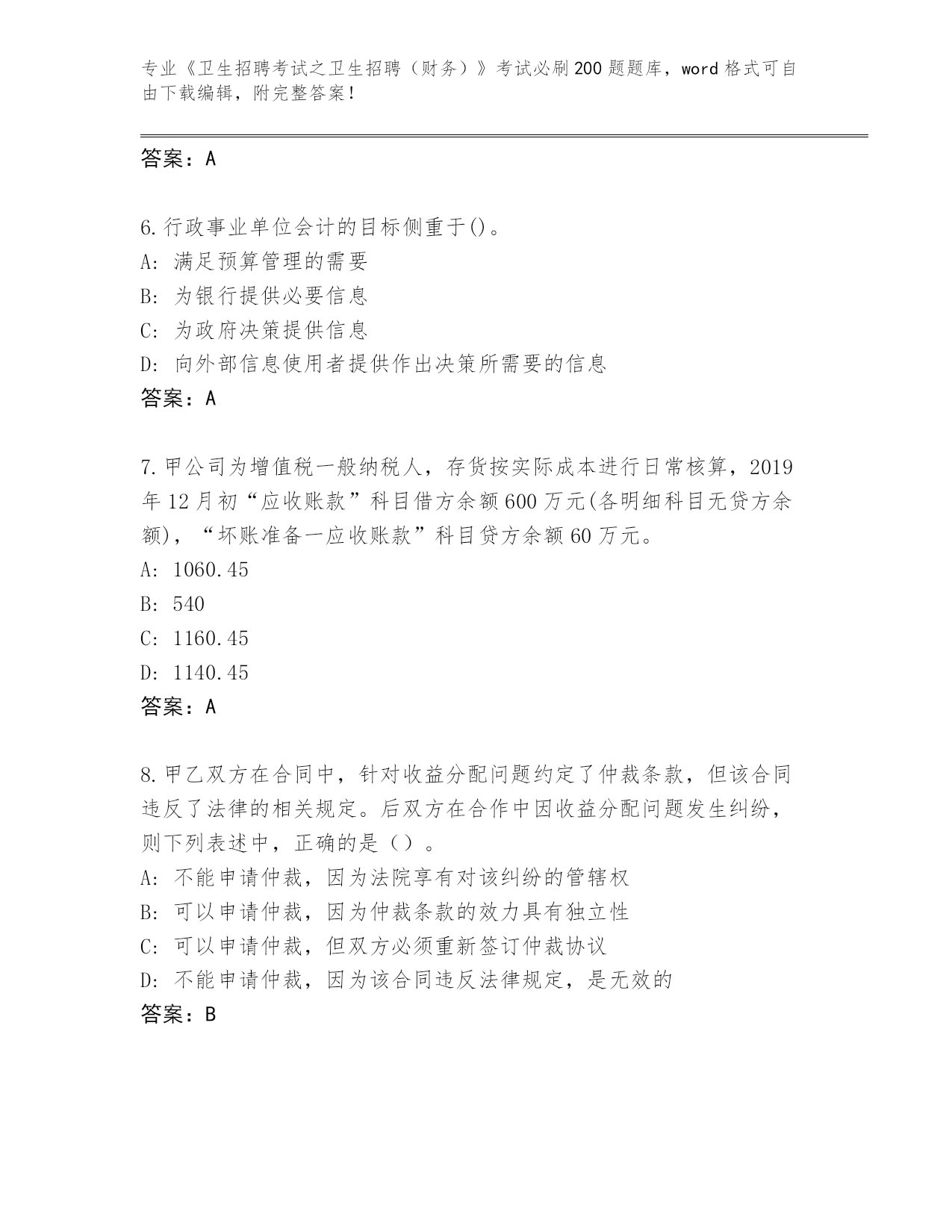 2024年安徽省《卫生招聘考试之卫生招聘(财务)》考试必刷200题通关秘籍题库【轻巧夺冠】