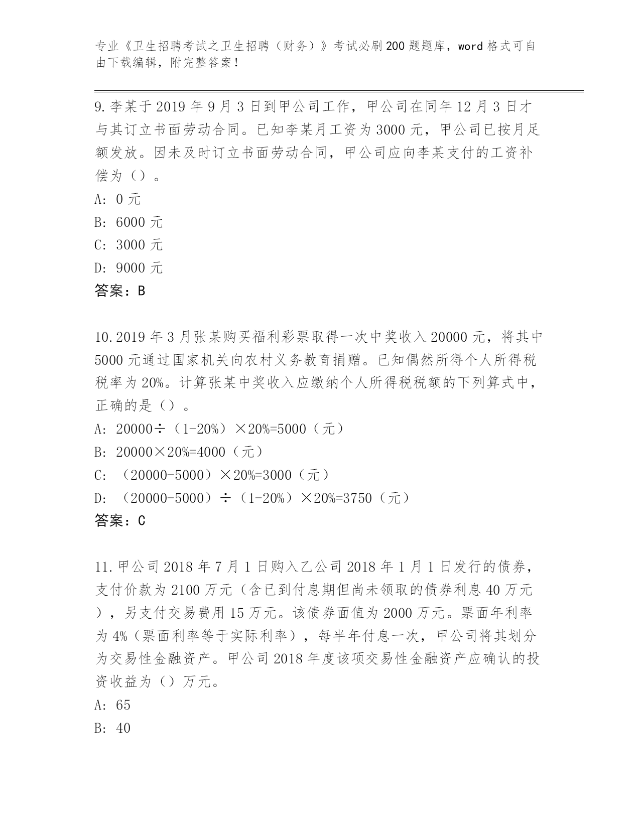 山西省2024年《卫生招聘考试之卫生招聘(财务)》考试必刷200题通关秘籍题库带答案(轻巧夺冠)