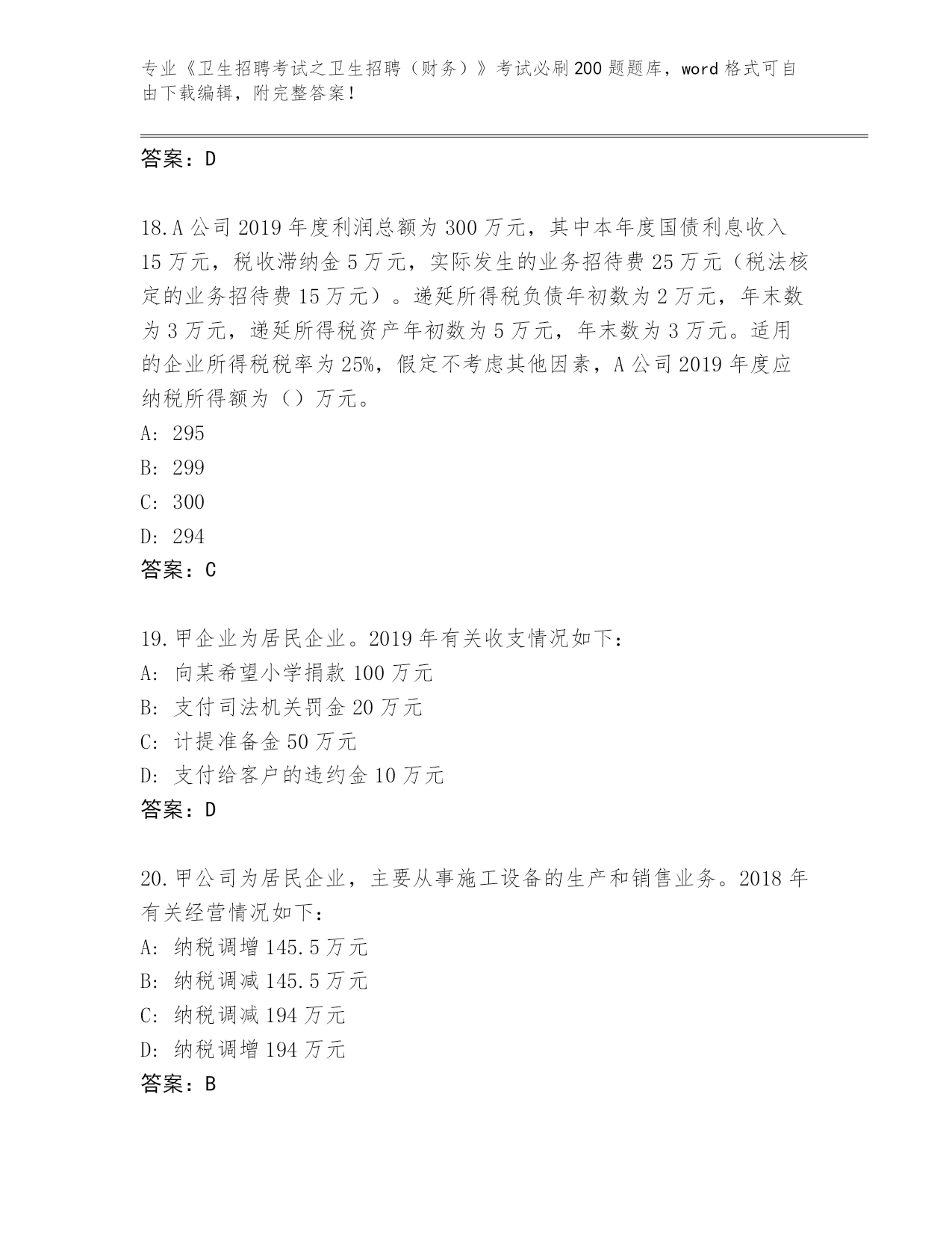 天津市武清区《卫生招聘考试之卫生招聘(财务)》考试必刷200题真题题库(必刷)
