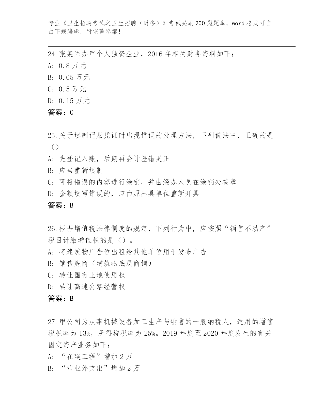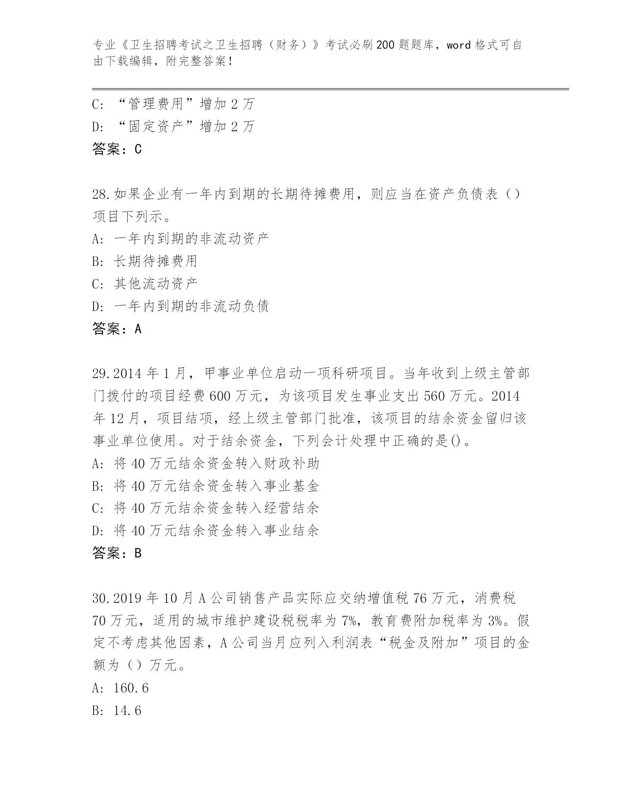 2024贵州省从江县《卫生招聘考试之卫生招聘(财务)》考试必刷200题通关秘籍题库(轻巧夺冠)