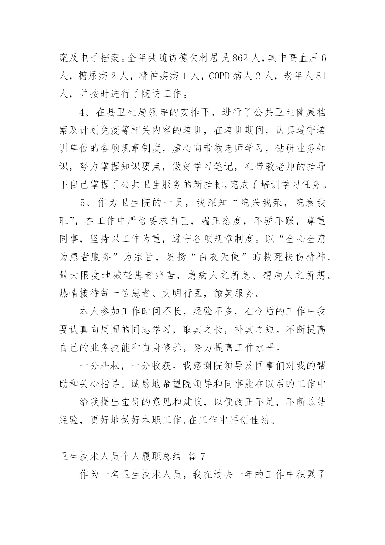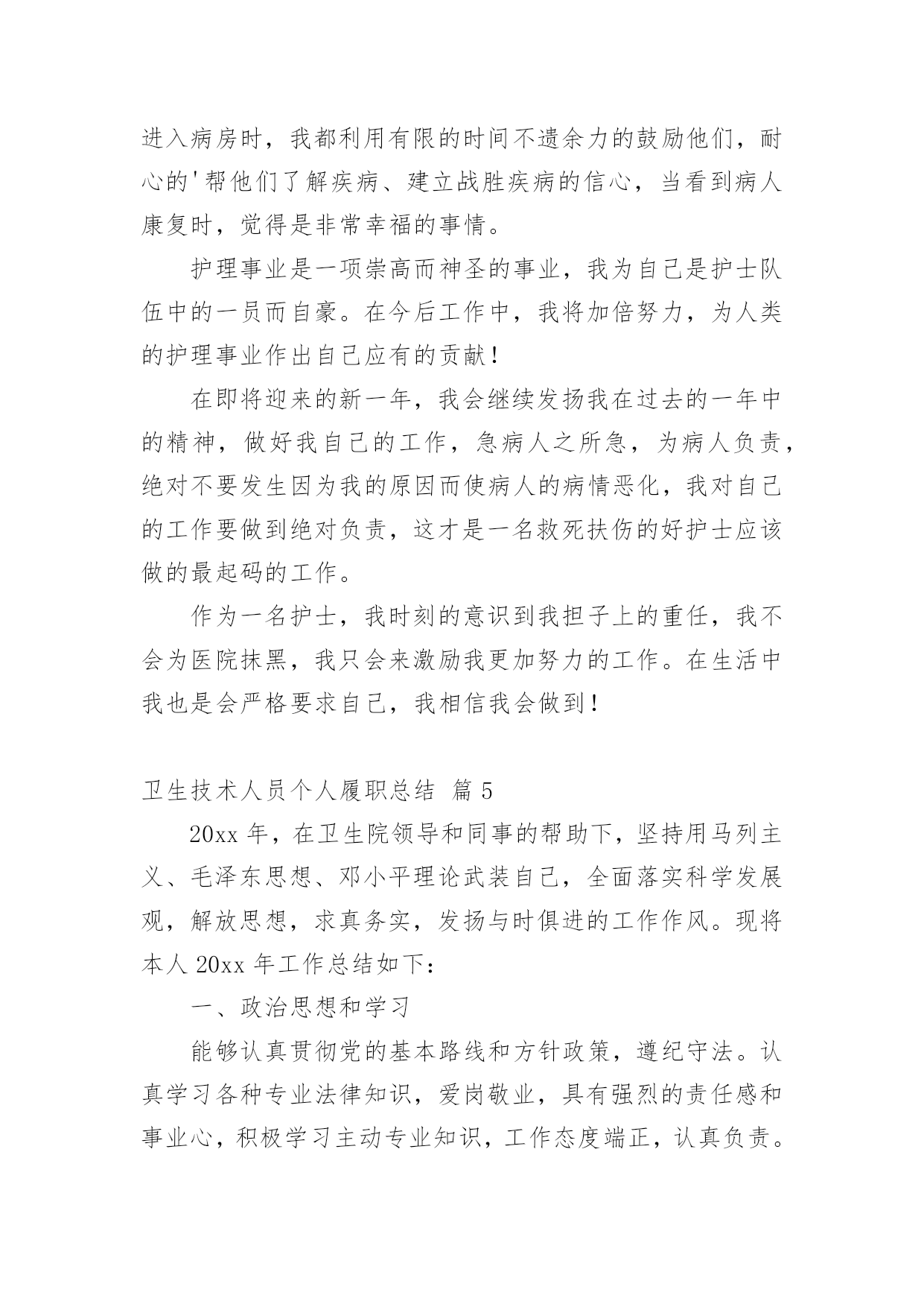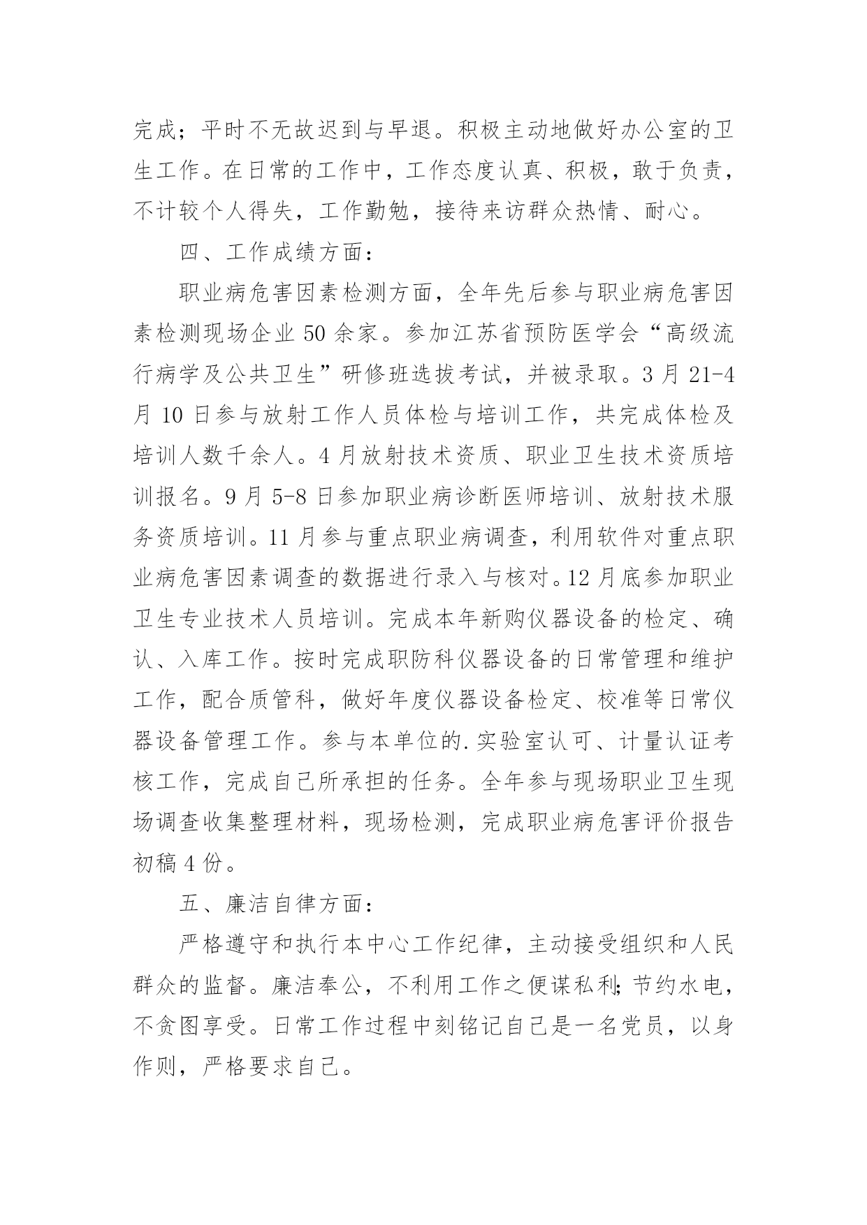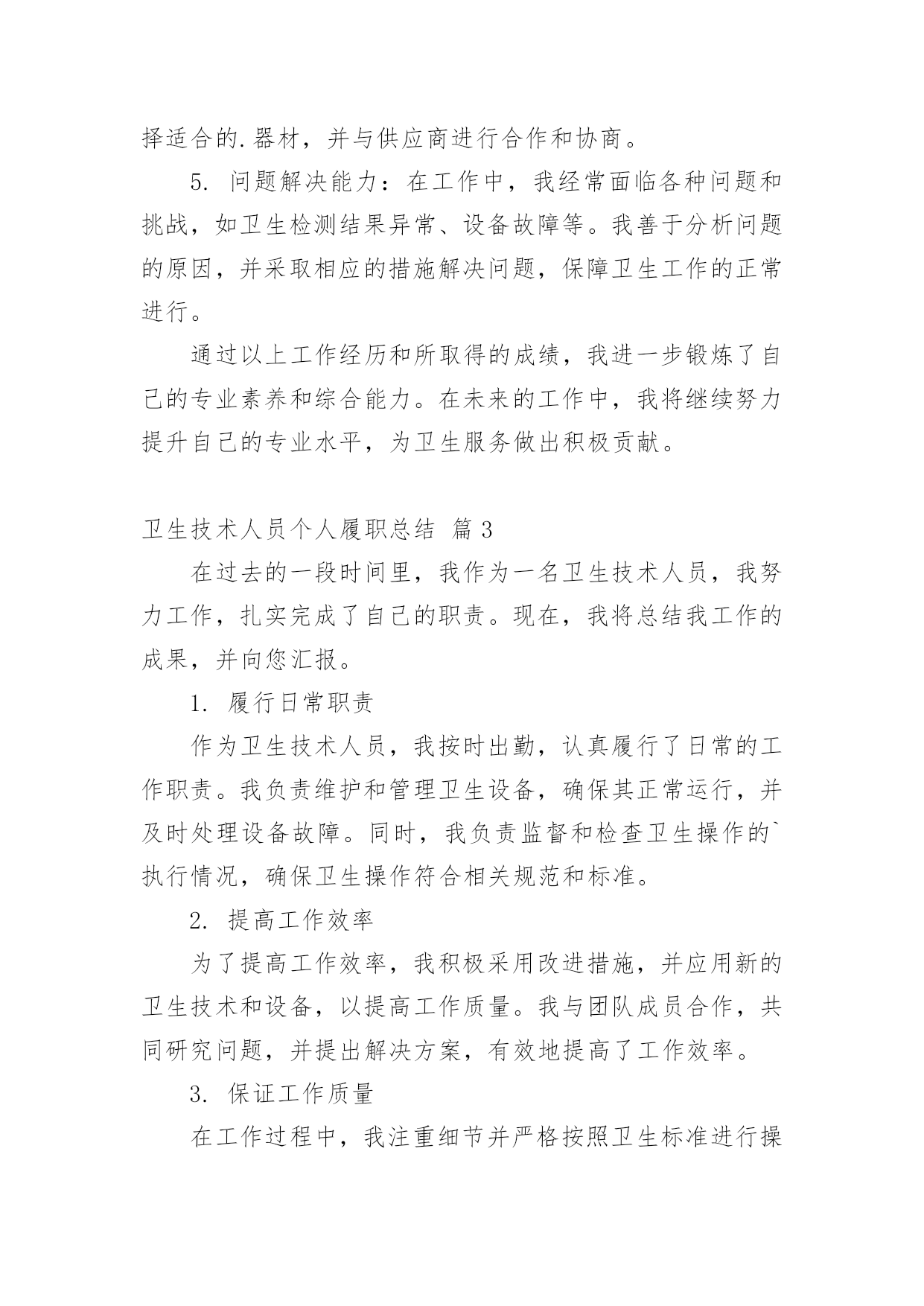 卫生技术人员个人履职总结篇1卫生技术人员个人履职总结合集10篇总结是对过去一定时期的工作、学习或思想情况进行回顾、分析,并做出客观评价的书面材料,它可以帮助我们总结以往思想,发扬成绩,让我们抽出时间写写总结吧。总结怎么写才能发挥它的作用呢?以下是小编为大家整理的卫生技术人员个人履职总结,欢迎阅读,希望大家能够喜欢。卫生技术人员个人履职总结篇120xx年我认真工作,加强理论学习,提高实践能力,较好的完成了所承担的各项工作任务。现将各方面情况简要总结如下:一、思想政治方面:思想上要求进步,政治觉悟高,努力保持共产党员的先进性和纯洁性。平时积极参加中心党组织举办的各类学习教育活动。认真参加学习,积极参加党组织的各类辅导活动。二、业务工作能力方面:积极参加职业卫生监管部门和上级疾控中心、本单位组织的各项业务培训,提高自己的专业技能以及履职能力。积极学习本科室业务相关的专业知识以及最新的法律、法规、标准等知识,努力做到结合实际应用。三、工作表现方面:责任心较强,对于自己承担的工作,努力做到保质保量完成;平时不无故迟到与早退。积极主动地做好办公室的卫生工作。在日常的工作中,工作态度认真、积极,敢于负责,不计较个人得失,工作勤勉,接待来访群众热情、耐心。四、工作成绩方面:职业病危害因素检测方面,全年先后参与职业病危害因素检测现场企业50余家。参加江苏省预防医学会“高级流行病学及公共卫生”研修班选拔考试,并被录取。3月21-4月10日参与放射工作人员体检与培训工作,共完成体检及培训人数千余人。4月放射技术资质、职业卫生技术资质培训报名。9月5-8日参加职业病诊断医师培训、放射技术服务资质培训。11月参与重点职业病调查,利用软件对重点职业病危害因素调查的数据进行录入与核对。12月底参加职业卫生专业技术人员培训。完成本年新购仪器设备的检定、确认、入库工作。按时完成职防科仪器设备的日常管理和维护工作,配合质管科,做好年度仪器设备检定、校准等日常仪器设备管理工作。参与本单位的.实验室认可、计量认证考核工作,完成自己所承担的任务。全年参与现场职业卫生现场调查收集整理材料,现场检测,完成职业病危害评价报告初稿4份。五、廉洁自律方面:严格遵守和执行本中心工作纪律,主动接受组织和人民群众的监督。廉洁奉公,不利用工作之便谋私利;节约水电,不贪图享受。日常工作过程中刻铭记自己是一名党员,以身作则,严格要求自己。回顾今年在取得了一些工作成绩的同时,我也深知与先进同志相比还有一定差距。在今后的工作中,我将进一步发扬好的方面,努力完善自己,更好地完成自己所承担的任务。卫生技术人员个人履职总结篇2我作为一名卫生技术人员,在过去的一段时间里,积极履行我的职责,致力于提供优质的卫生服务,并取得了一定的成绩和经验。以下是我个人履职总结:1.技术能力:我不断提升自己的专业知识和技能,通过参加培训课程和学习最新的卫生技术发展趋势,不断提高自己的工作能力。我熟练掌握了各种卫生检测方法和仪器的操作,并在实践中不断提高自己的技术水平。2.组织卫生活动:作为卫生技术人员,我积极参与组织卫生宣传活动,向社区居民宣传卫生知识和预防措施,提高居民的健康意识和卫生水平。我还参与了疫情防控工作,组织并参与了各类防控措施的执行,保障了社区的安全和卫生。3.协调与沟通能力:在工作中,我与居民、医护人员和其他卫生技术人员保持了良好的沟通和协调。我能够有效地与不同的人群沟通,了解他们的需求和意见,并根据实际情况做出相应的调整和改进。4.管理能力:我负责卫生设备的维护和保养,定期检查设备状况,并及时进行维修和更换,确保设备的正常运转。我也参与了卫生器材的采购工作,根据实际需求和预算,选择适合的.器材,并与供应商进行合作和协商。5.问题解决能力:在工作中,我经常面临各种问题和挑战,如卫生检测结果异常、设备故障等。我善于分析问题的原因,并采取相应的措施解决问题,保障卫生工作的正常进行。通过以上工作经历和所取得的成绩,我进一步锻炼了自己的专业素养和综合能力。在未来的工作中,我将继续努力提升自己的专业水平,为卫生服务做出积极贡献。卫生技术人员个人履职总结篇3在过去的一段时间里,我作为一名卫生技术人员,我努力工作,扎实完成了自己的职责。现在,我将总结我工作的成果,并向您汇报。1.履行日常职责作为卫生技术人员,我按时出勤,认真履行了日常的工作职责。我负责维护和管理卫生设备,确保其正常运行,并及时处理设备故障。同时,我负责监督和检查卫生操作的`执行情况,确保卫生操作符合相关规范和标准。2.提高工作效率为了提高工作效率,我积极采用改进措施,并应用新的卫生技术和设备,以提高工作质量。我与团队成员合作,共同研究问题,并提出解决方案,有效地提高了工作效率。3.保证工作质量在工作过程中,我注重细节并严格按照卫生标准进行操作。我