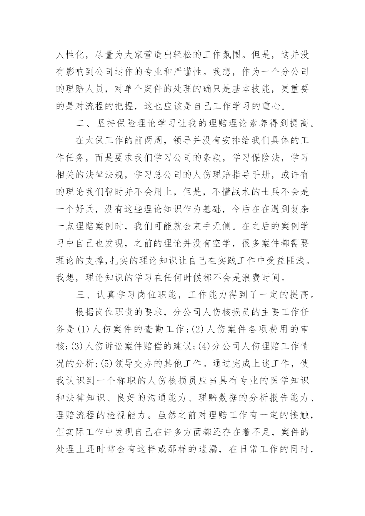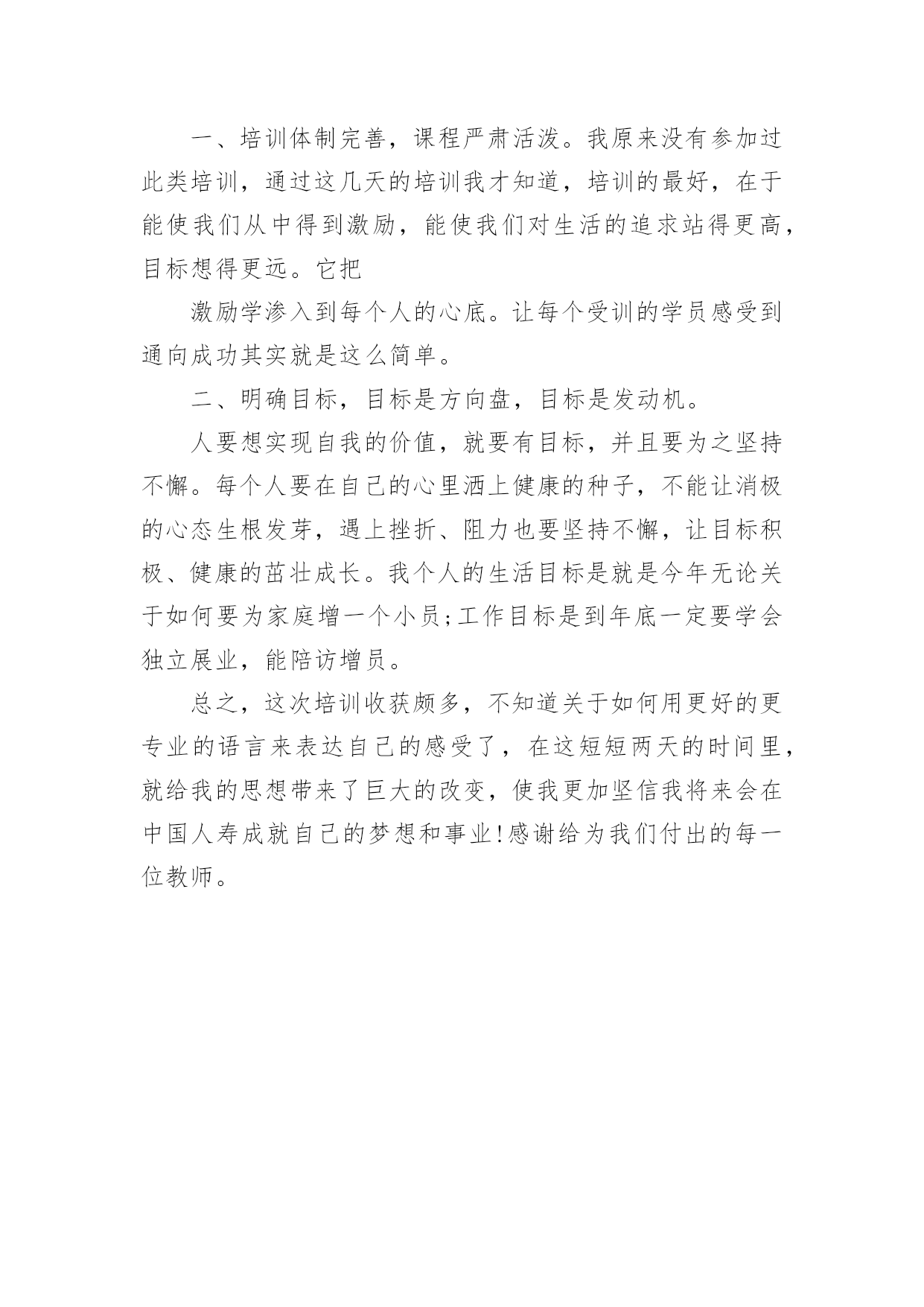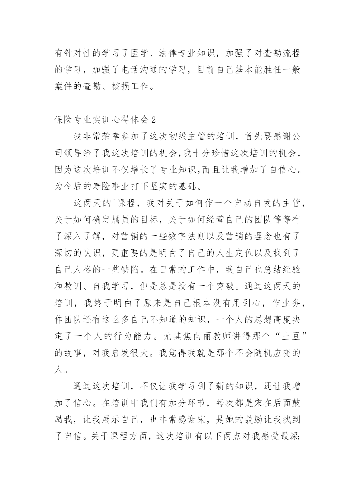 保险专业实训心得体会当我们备受启迪时,可以寻思将其写进心得体会中,这样有利于培养我们思考的习惯。那么心得体会怎么写才能感染读者呢?下面是小编精心整理的保险专业实训心得体会,欢迎阅读,希望大家能够喜欢。保险专业实训心得体会1时间一晃而过,到太保工作已经一个月了,在这段时间里领导同事都给予了我足够的宽容、支持和帮助,让我充分感受到了太保“诚信天下,稳健经营,追求卓越”的品质,也体会到了作为理赔人的专业和辛勤。在对您们肃然起敬的同时,也为我有机会成为太保的一份子而惊喜万分。在这一个月的时间里,领导对我们工作学习进度有着细致的安排,一至二周主要学习理论知识,辅以简单案例的学习,二至三周则以实例案件学习为重心,理论联系实际,加强之前的理论学习,三至四周开始实际处理一些简单案例并学习系统的录入,第四周则开始了医院查勘工作。在领导和同事们的悉心关怀和指导下,通过自身的不懈努力,各方面均取得了一定的进步,现将我的工作情况作如下汇报。一、通过学习和日常工作积累使我对太保有了较为深刻的认识。记得初到太保时,在和领导的第谈话时就注意到,太保是一家非常重视员工感受的公司,公司的规章制度都非常的人性化,尽量为大家营造出轻松的工作氛围。但是,这并没有影响到公司运作的专业和严谨性。我想,作为一个分公司的理赔人员,对单个案件的处理的确只是基本技能,更重要的是对流程的把握,这也应该是自己工作学习的重心。二、坚持保险理论学习让我的理赔理论素养得到提高。在太保工作的前两周,领导并没有安排给我们具体的工作任务,而是要求我们学习公司的条款,学习保险法,学习相关的法律法规,学习总公司的人伤理赔指导手册,或许有的理论我们暂时并不会用上,但是,不懂战术的士兵不会是一个好兵,没有这些理论知识作为基础,今后在在遇到复杂一点理赔案例时,我们可能就会束手无侧。在之后的案例学习中自己也发现,之前的理论并没有空学,很多案件都需要理论的支撑,扎实的理论知识让自己在实践工作中受益匪浅。我想,理论知识的学习在任何时候都不会是浪费时间。三、认真学习岗位职能,工作能力得到了一定的提高。根据岗位职责的要求,分公司人伤核损员的主要工作任务是(1)人伤案件的查勘工作;(2)人伤案件各项费用的审核;(3)人伤诉讼案件赔偿的建议;(4)分公司人伤理赔工作情况的分析;(5)领导交办的其他工作。通过完成上述工作,使我认识到一个称职的人伤核损员应当具有专业的医学知识和法律知识、良好的沟通能力、理赔数据的分析报告能力、理赔流程的检视能力。虽然之前对理赔工作有一定的接触,但实际工作中发现自己在许多方面都还存在着不足,案件的处理上还时常会有这样或那样的遗漏,在日常工作的同时,有针对性的学习了医学、法律专业知识,加强了对查勘流程的学习,加强了电话沟通的学习,目前自己基本能胜任一般案件的查勘、核损工作。保险专业实训心得体会2我非常荣幸参加了这次初级主管的培训,首先要感谢公司领导给了我这次培训的机会,我十分珍惜这次培训的机会,因为这次培训不仅增长了专业知识,而且让我增加了自信心。为今后的寿险事业打下坚实的基础。这两天的`课程,我对关于如何作一个自动自发的主管,关于如何确定属员的目标,关于如何经营自己的团队等等有了深入了解,对营销的一些数字法则以及营销的理念也有了深切的认识,更重要的是明白了自己的人生定位以及找到了自己人格的一些缺陷。在日常的工作中,我自己也总结经验和教训、自我学习,但是总是没有一个突破。通过这两天的培训,我终于明白了原来是自己根本没有用到心,作业务,作团队还有这么多自己不知道的知识,一个人的思想高度决定了一个人的行为能力。尤其焦向丽教师讲得那个“土豆”的故事,对我启发很大。我觉得我就是那个不会随机应变的人。通过这次培训,不仅让我学习到了新的知识,还让我增加了信心。在培训中我们有加分环节,每次都是宋在后面鼓励我,让我展示自己,也非常感谢宋,是她的鼓励让我找到了自信。关于课程方面,这次培训有以下两点对我感受最深:一、培训体制完善,课程严肃活泼。我原来没有参加过此类培训,通过这几天的培训我才知道,培训的最好,在于能使我们从中得到激励,能使我们对生活的追求站得更高,目标想得更远。它把激励学渗入到每个人的心底。让每个受训的学员感受到通向成功其实就是这么简单。二、明确目标,目标是方向盘,目标是发动机。人要想实现自我的价值,就要有目标,并且要为之坚持不懈。每个人要在自己的心里洒上健康的种子,不能让消极的心态生根发芽,遇上挫折、阻力也要坚持不懈,让目标积极、健康的茁壮成长。我个人的生活目标是就是今年无论关于如何要为家庭增一个小员;工作目标是到年底一定要学会独立展业,能陪访增员。总之,这次培训收获颇多,不知道关于如何用更好的更专业的语言来表达自己的感受了,在这短短两天的时间里,就给我的思想带来了巨大的改变,使我更加坚信我
