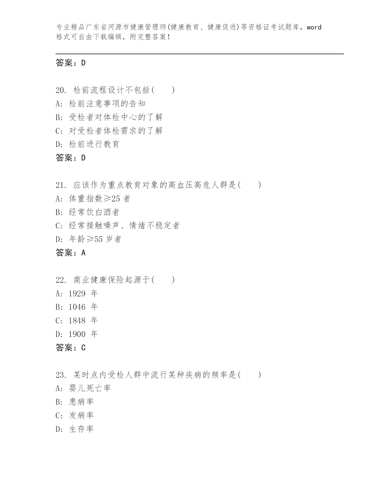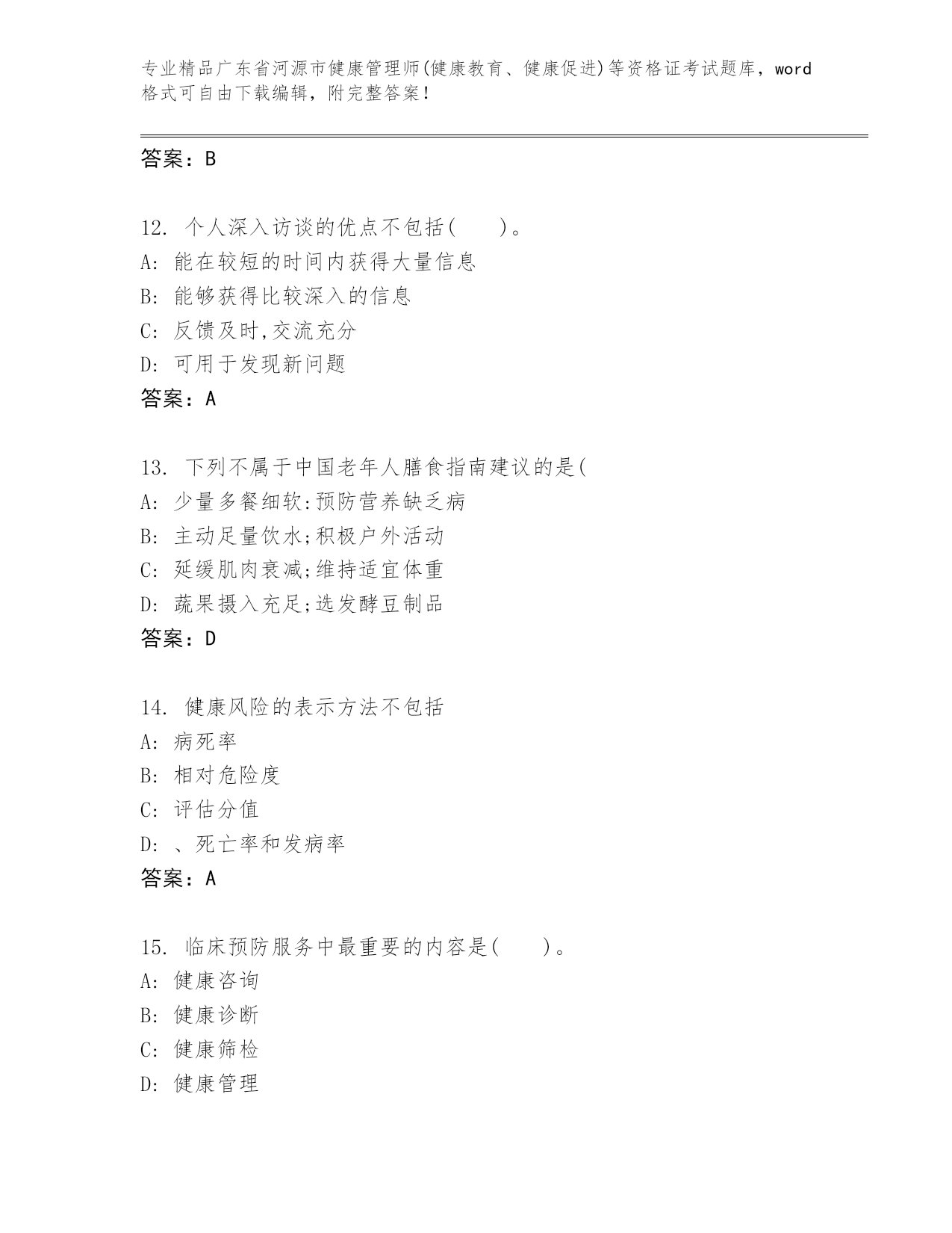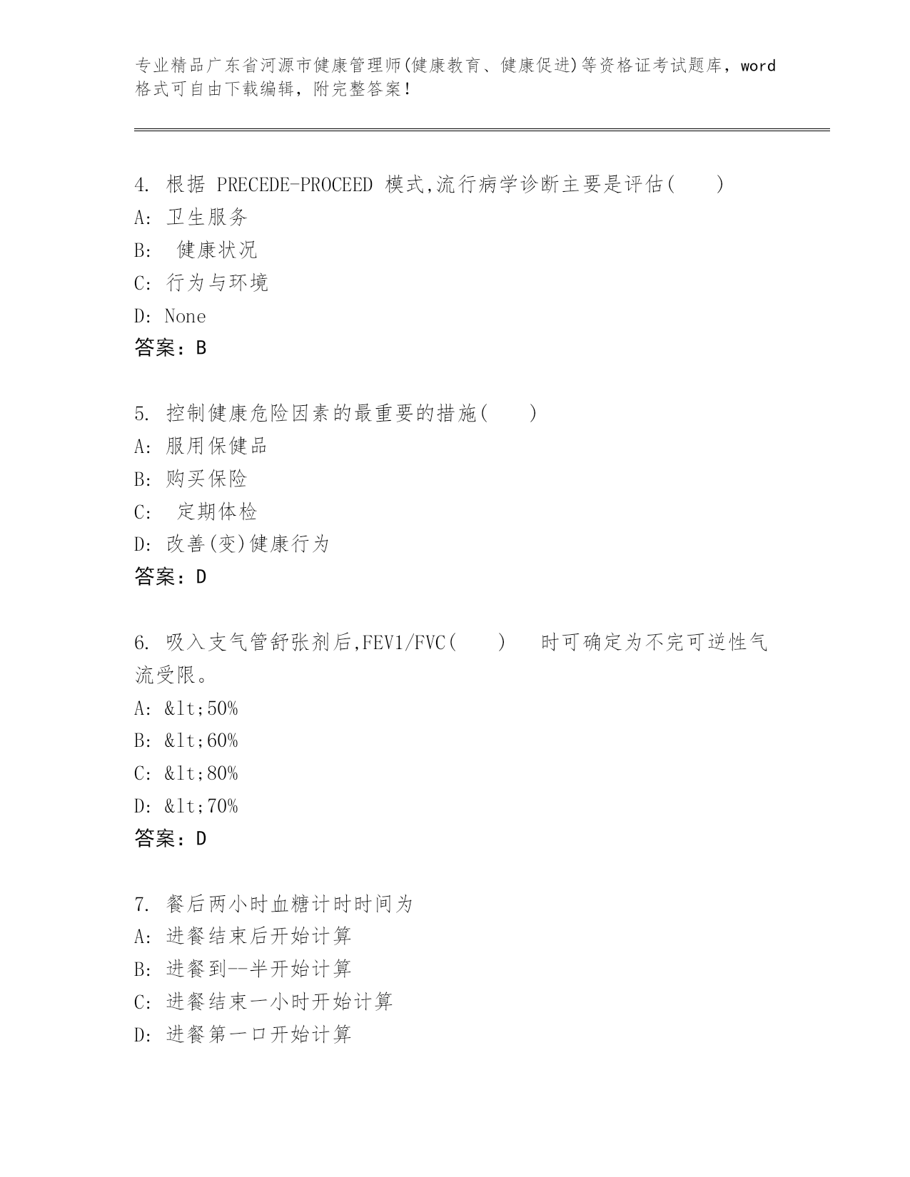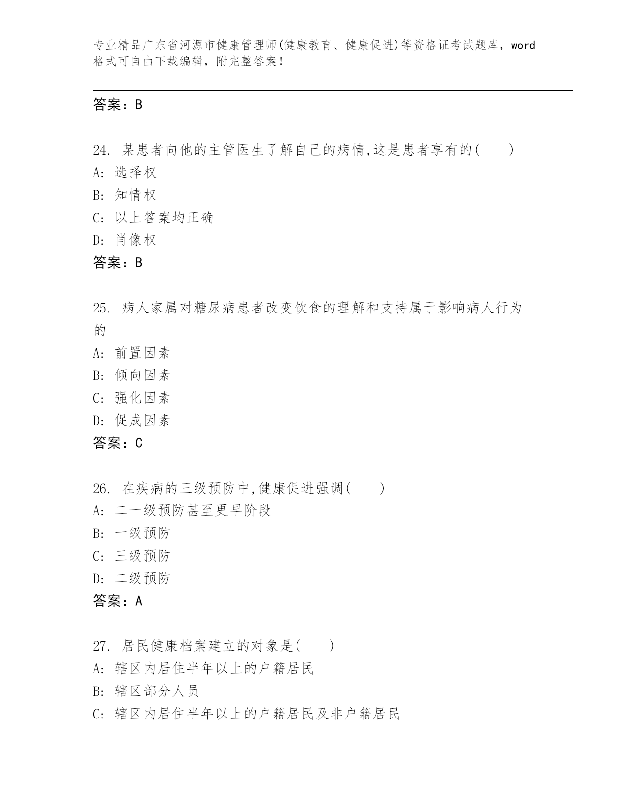 优选广东省河源市健康管理师(健康教育、健康促进)等资格证考试通用题库及答案(最新).docx