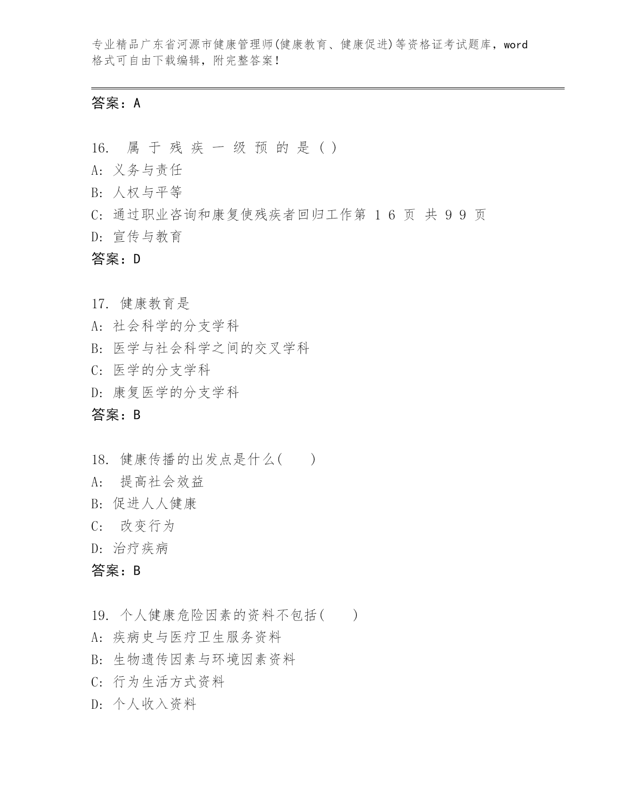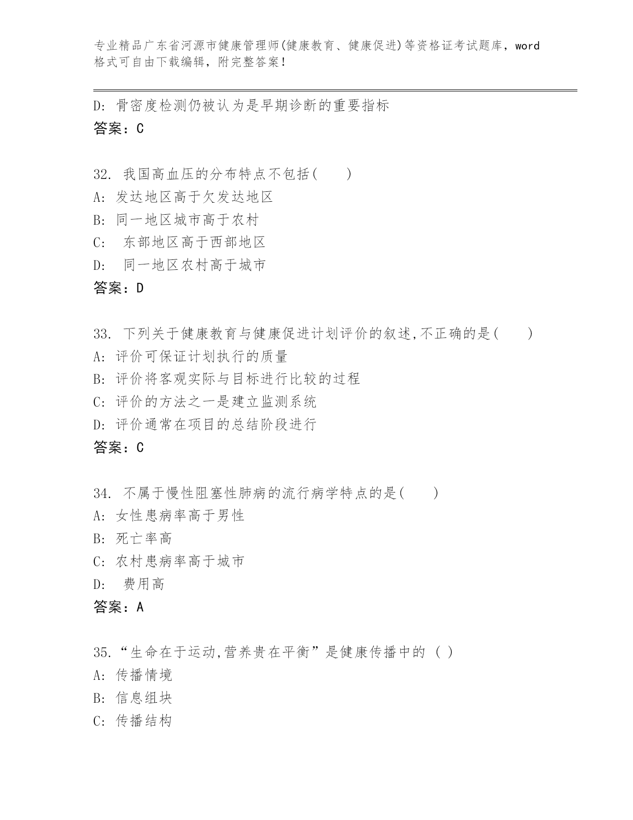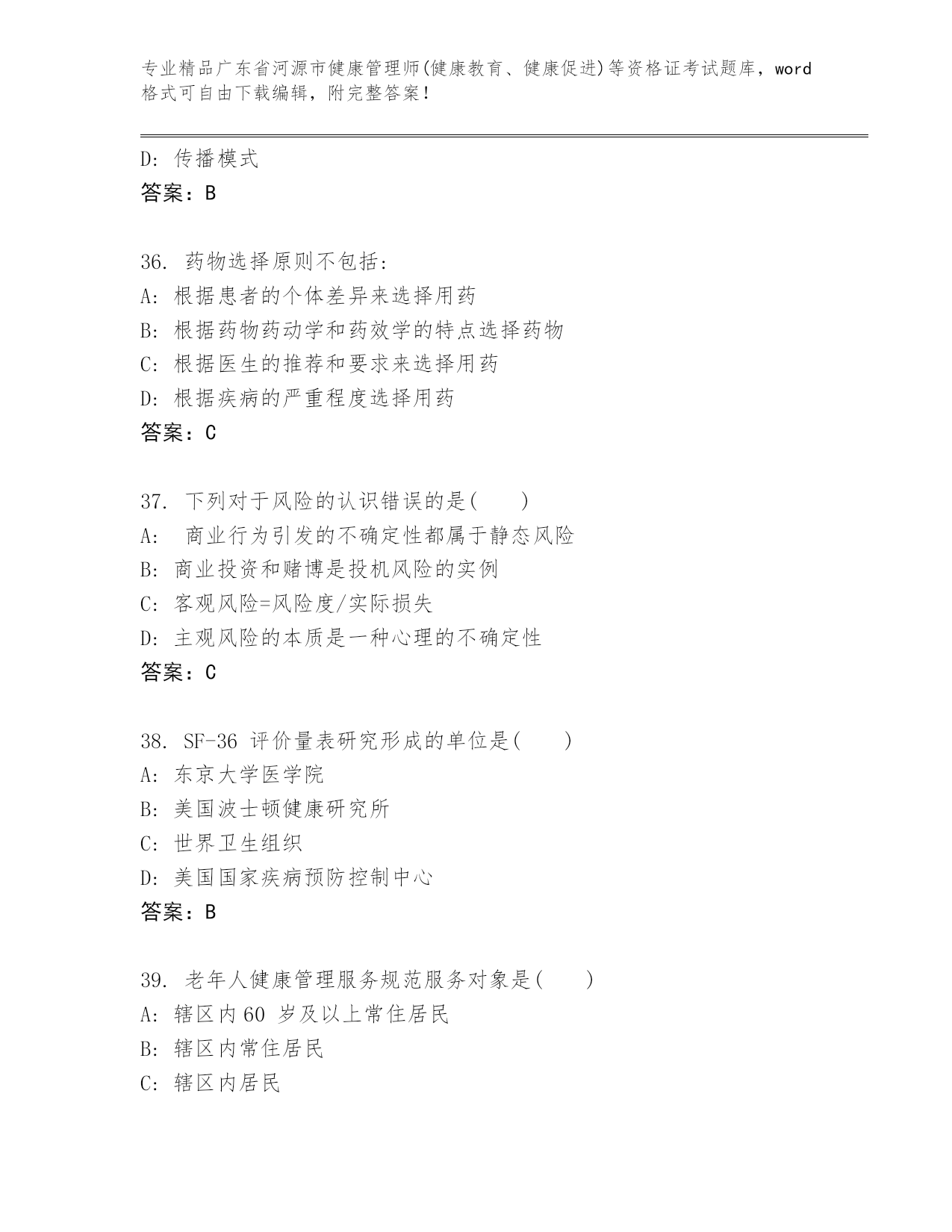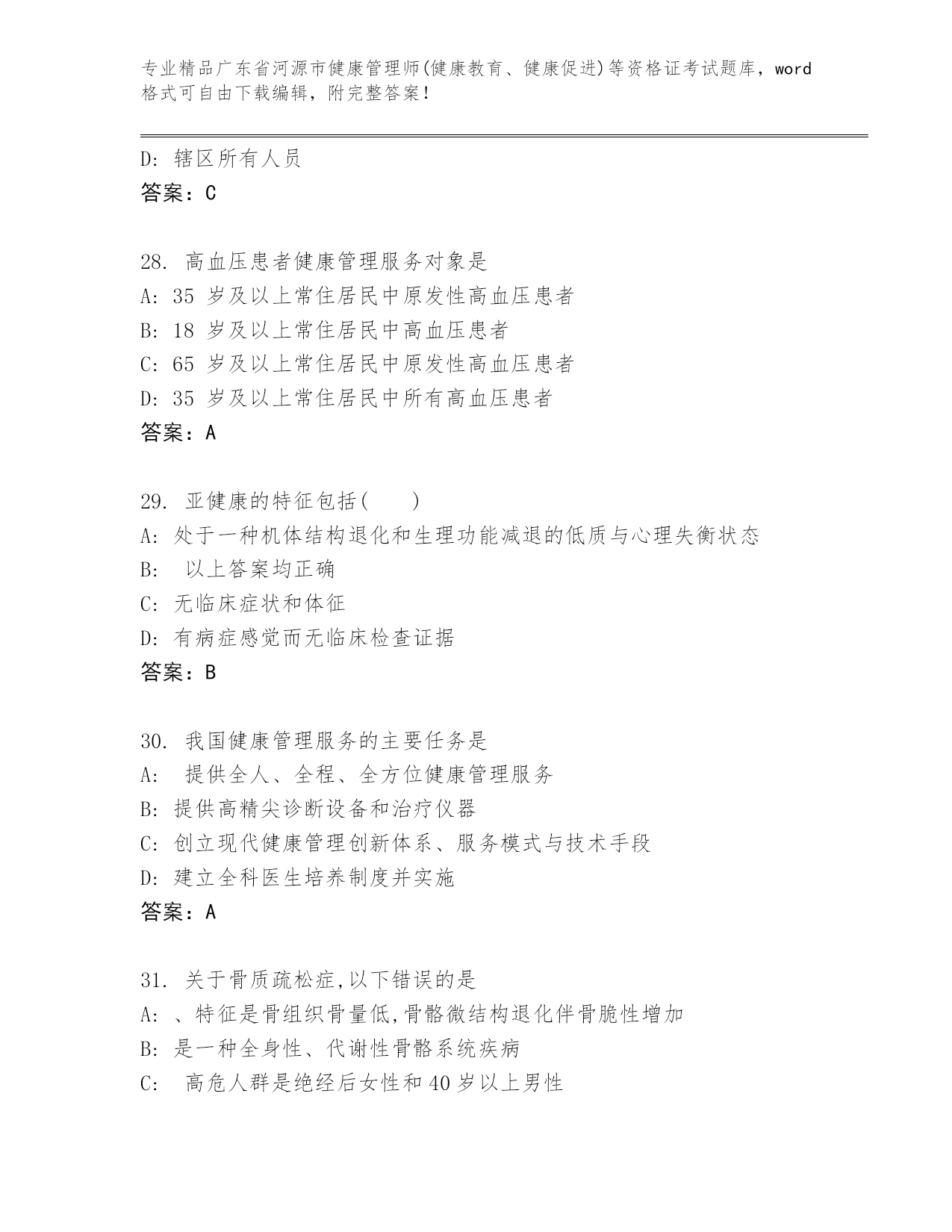 优选广东省河源市健康管理师(健康教育、健康促进)等资格证考试通用题库及答案(最新).docx