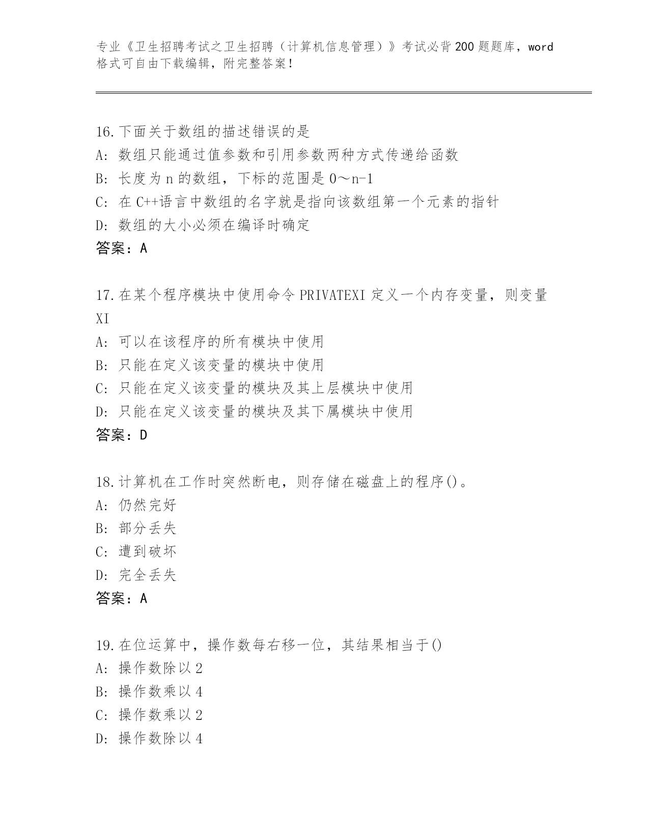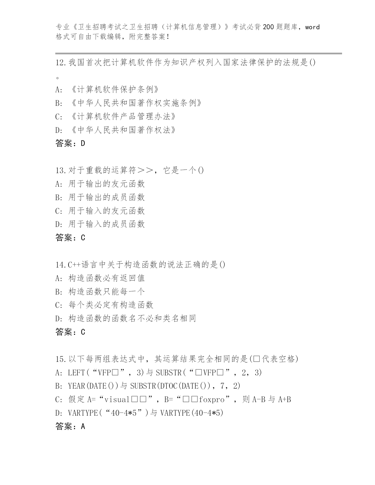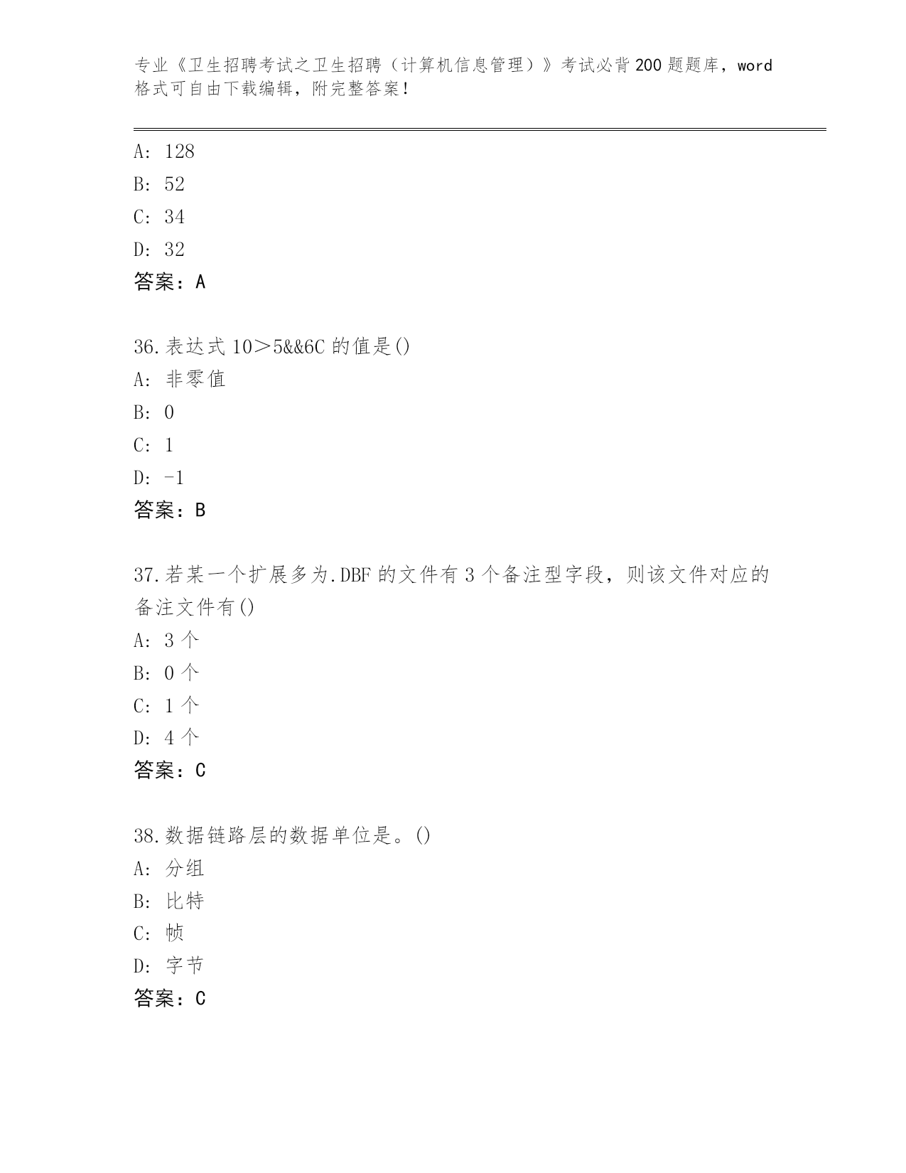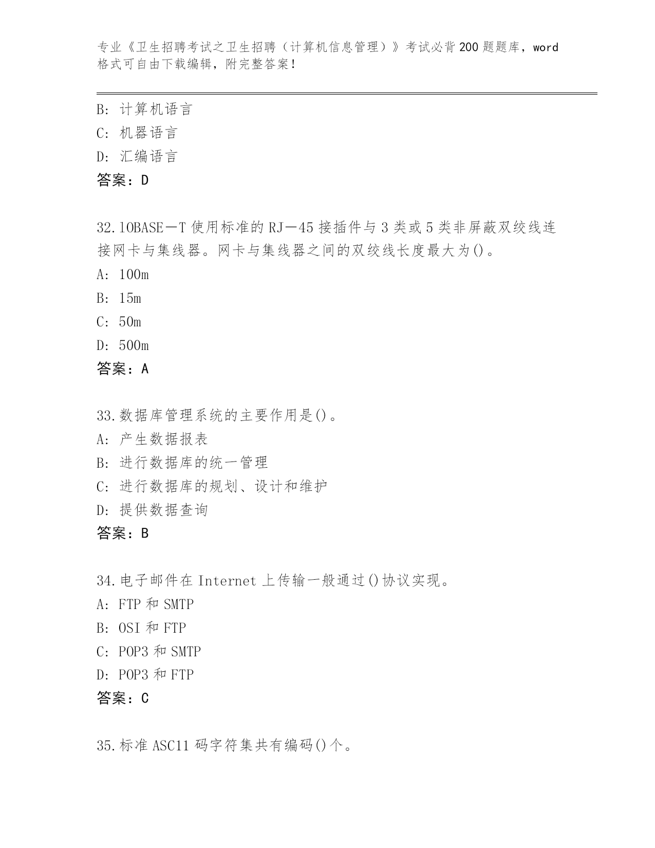 甘肃省徽县2024年《卫生招聘考试之卫生招聘(计算机信息管理)》考试必背200题真题含答案(培优B卷)