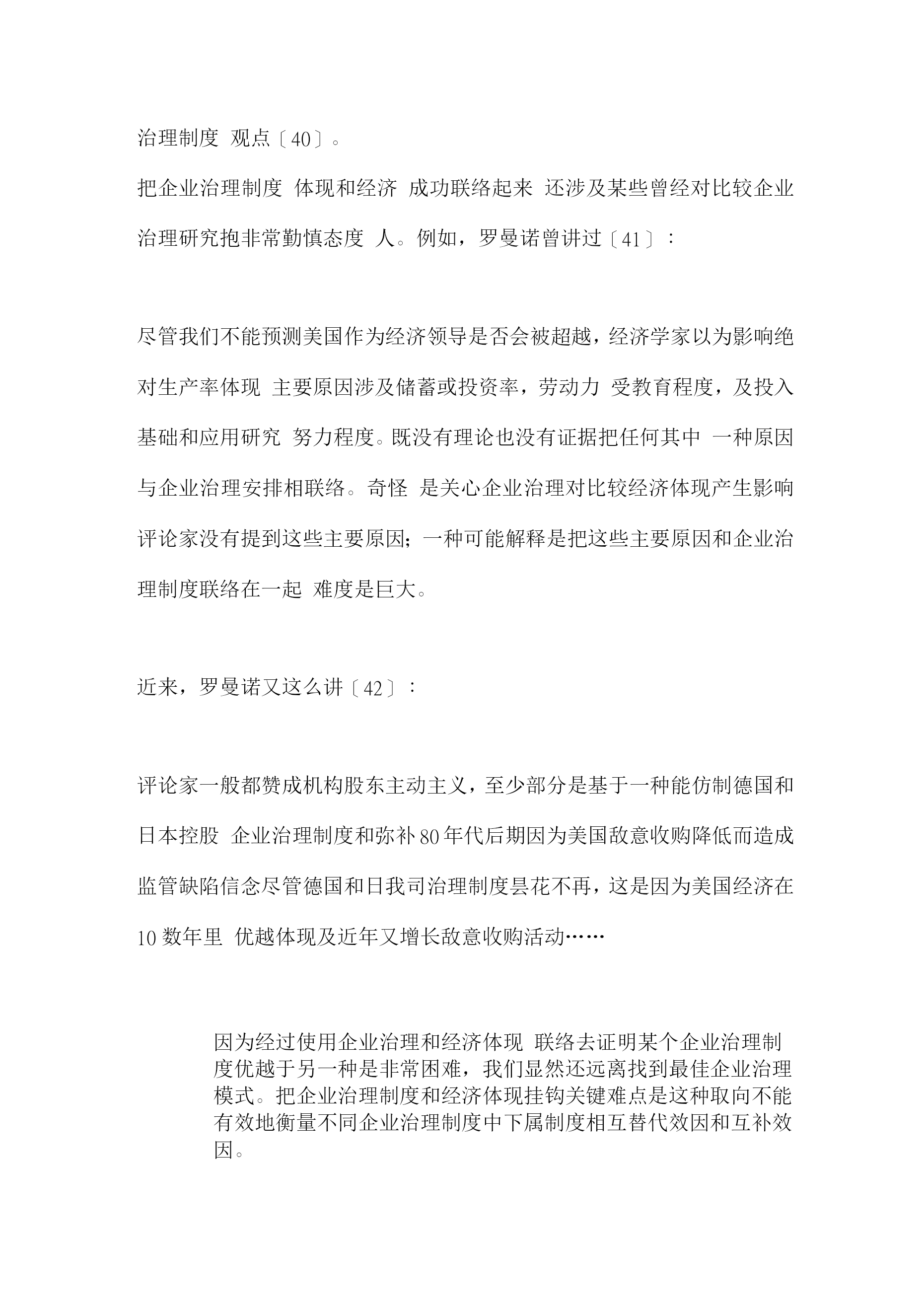 走向机构竞争模式比较企业治理制度研究(一)香港大学法律系郁光华一.引子伯尔和弥恩提出由企业控制权和剩余资产全部权相分离而产生问题在美国引起了极大关注[1]。早期对企业控制权和剩余资产全部权相分离根源解释侧重于规模经济和管理者专门知识。假如经济原因解释是惟一正确,那么经济竞争动力将使各国企业治理制度走向单一模式。但是,罗尔研究表白相同发达国家具有很不相同企业治理制度[2]。尽管世界上企业治理制度具有很大差别性,大量研究依然集中在是否有最佳企业治理制度模式上面。有学者更大胆地把一国企业治理制度和经济体现联络起来。我在第二节从功能角度论述可能世界上并无最佳单一企业治理模式。在第三节,我讨论比较企业治理制度研究是否能够或必要将企业治理制度和一国经济体现相挂钩。在第四节,我尝试在比较企业治理研究中建立一种机构竞争模式并讨论该模式对发达国家和象中国这么发展中国家指导意义。.最佳模式寻找企业建立和成长需要资本。而资本一般能够经过举债或发行股票而筹得。当然这两种筹资方式都会在资本使用者和供给者之间产生摩擦。股票融资会造成由股票融资而产生代理成本,而举债融资会造成因债务融资而产生代理成本[3]。因为经过股票融资或债务融资去从事企业活动并不相互排斥[4],大多数企业同步使用这二种融资方式。然而,这二种融资方式会导至不同成果。跟德国和法国企业相比,美国和英国企业愈加依赖于证券市场。例如,英国一百万人中有36家上市企业,美国则有30家。但是,法国和德国分别只有8家和4家[5]。类似地,德国和英国及美国股票市场市值和国民生产总值比率具有鲜明对照性。在德国,股票市场市值只占国民生产总值17%,而这一比率在英国为132%[6]。1995年美国纽约证券交易所和纳斯达克股票市场市值为国民生产总值87%[7]。不同企业融资方式会造成不同种类利益冲突问题。处理这些不同利益冲突问题需要不同企业治理制度。企业治理制度是使管理阶层为了企业最大利益而工作和确保资本供给者合理回报机制。在美国,资本供给主要来自证券市场。在这么经济里,企业在竞争条件下成长主要决定于规模经济[8],股票投资分散化[9],降低交易成本[10],和管理者专门知识[11]。德姆塞茨和莱恩以为企业股份集中程度和企业总规模成反比[12]。有二个理由阐明这一关系能够是正确。第一,当追求利润最大化企业规模增大时,取得控制股份代价会增长。这显然不利于控制积聚。第二,当控制交易边际利益不不小于股份分散投资而得到边际利益时,人们会选择后者。在一种企业融资主要来自证券市场而企业股份又非常分散体制里,假如没有相应企业治理制度,企业股份融资代价就会更高。实际上,美国产品市场,股票市场和收购市场在处理管理阶层和股东之间利益冲突问题方面起了非常主要作用。在德国,初始公开上市历来极少,整个1994年只有10起[13]。股票市场低兑现性和波动性是有名[14]。一般来说债务融资比股份融资在德国起了更大作用[15]。债务融资会产生债务企业和债权人之间利益冲突。德国企业治理机制对由债务融资而造成代理成本作出了良好反应。在没有政治和法律原因限制下,德国银行在债务融资方面历史和主要作用使得他们有必要在债务企业拥有股份[16]。在债务融资中,债务人一般只能在债务人不能按时偿债时才干干预债务人事务。因为破产经常会降低一般债权人求偿权,债权人在没有对债务人拥有足够控制情况下偏好早期退出。然而,假如债权人同步是一种主要股东时,它能阻止财富转移交易。事前,债权人股东能够阻止债务人经过采用财富转移交易决定。这么干预一般是债权人股东在监事会上按排代表来实现。监事会一般能够要求董事会递交报告。监事会也能够要求董事会在作出诸如超出一定限额贷款等主要决定前取得监事会同意。事后,债权人股东能够经过监事会去处分经理人员。因为在债务企业大量持股使得债权人股东参加管理比退出企业更主要。不然话,债权人股东会在债务投资和股份投资上都遭受损失。所以不难发觉德国银行经常参加处于金融危机中企业重组。经验调查表白非自愿性董事会人员变动不但在有严重问题企业中出现而且还在某些监事会对董事会全体或个别董事不满问题不太严重企业中出现。所以监事会在企业治理中主动参加降低了因债务融资或股份融资而产生代理成本。追求最佳企业治理模式至少始于90年代早期。波特以为因为以银行为中心融资方式使得管理人员看得更远,而股份分散以证券市场为主融资方式迫使管理人员追求近期利益,所以美国股份分散化制度劣于德国和日本以银行为中心资本市场[17]。格朗得反思特以为美国法律管制系统地使股东愿望受制于经理们免受资本市场制裁期望[18]。他说:因为拥有股份和债权而造成利益一致成果,日我司只需要付较低代价给供款人而鼓励他们承受因债权人和股东利益冲突而产生风险。在其他条件相同情况下,日本资本构造比美国愈
