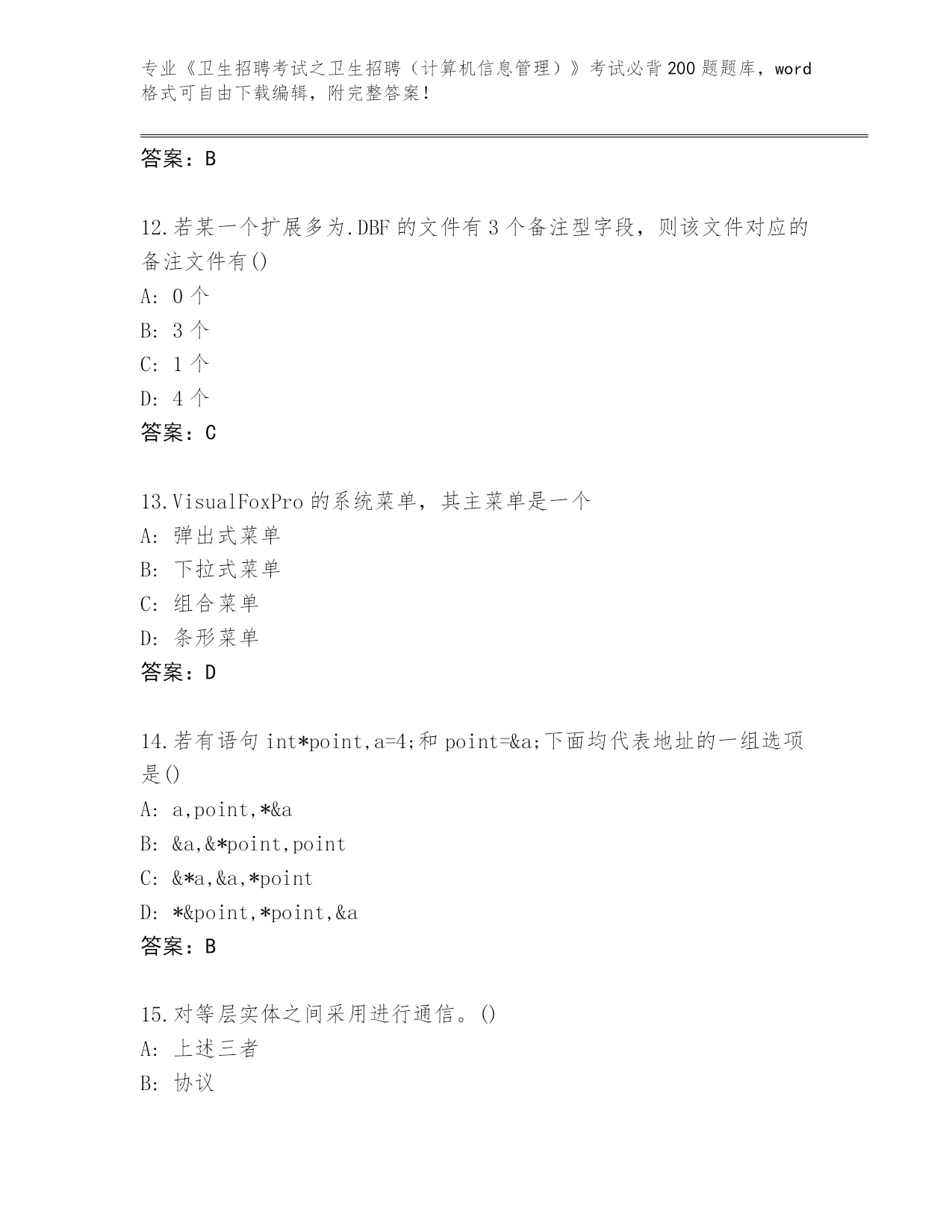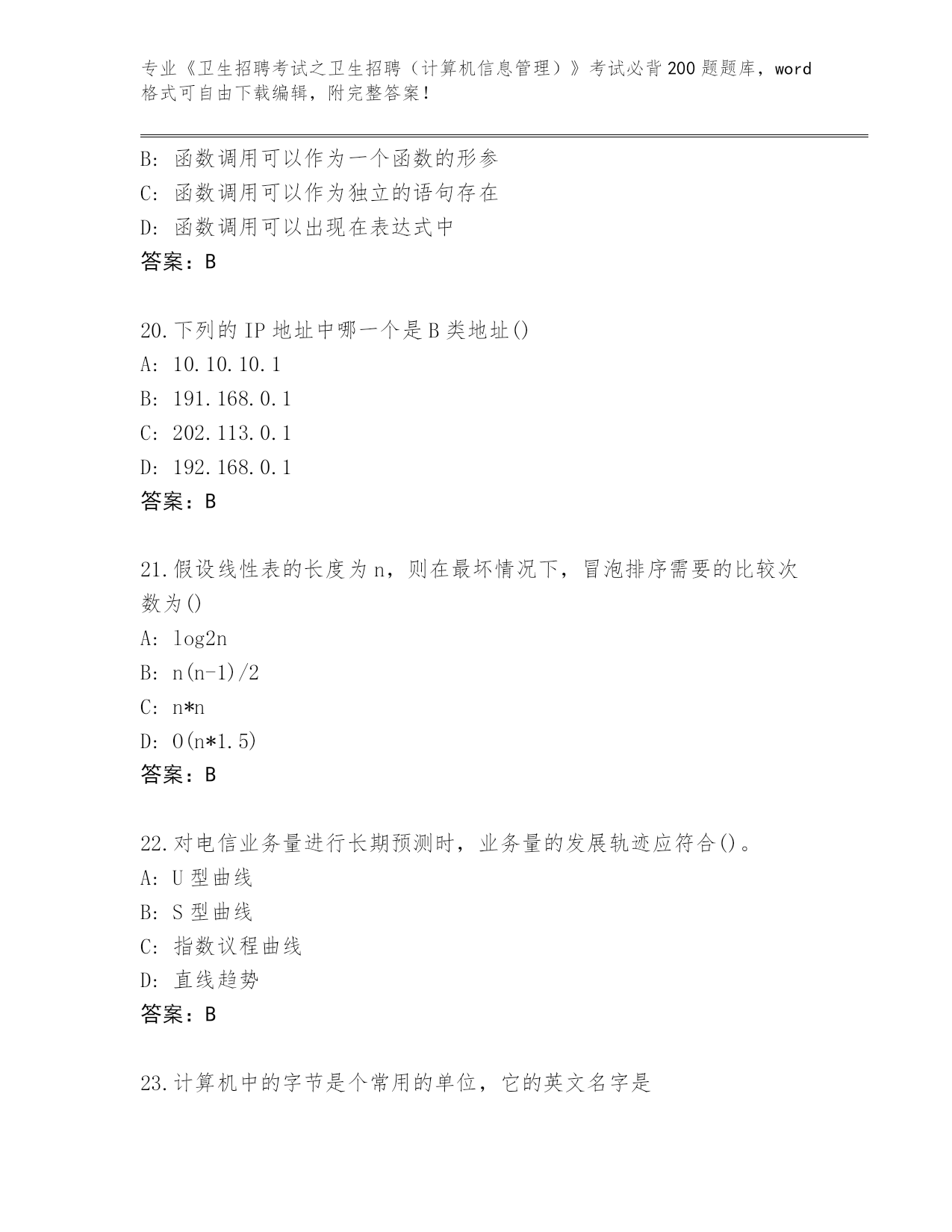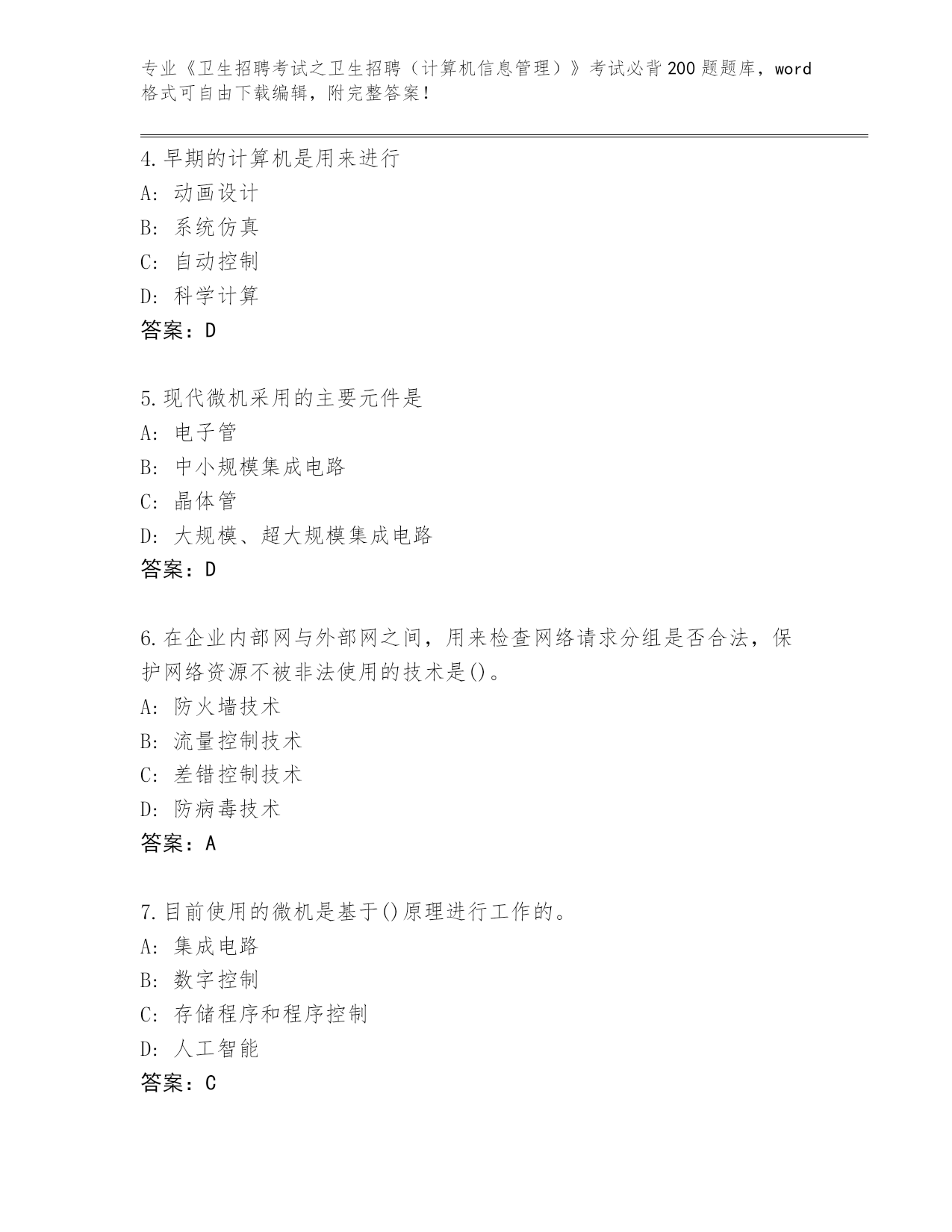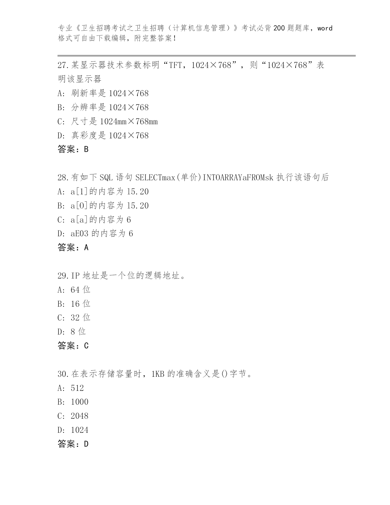 2024年河北省竞秀区《卫生招聘考试之卫生招聘(计算机信息管理)》资格考试必刷200题内部题库(全优)